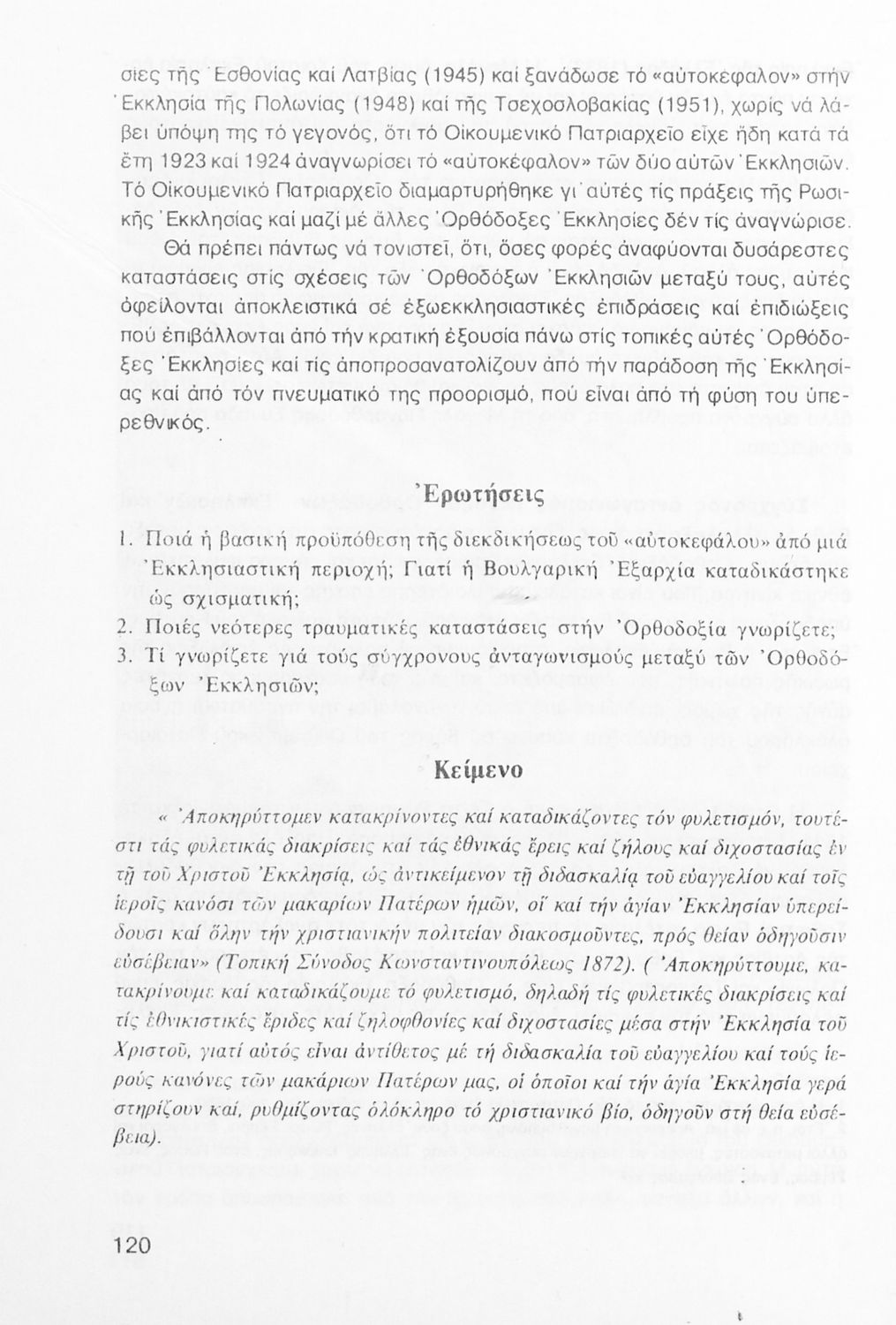 Σχολικό εγχειρίδιο Θρησκευτικών Α΄ Λυκείου που περιέχει την ιστορία της Ορθόδοξης Εκκλησίας από την ίδρυσή της μέχρι την ίδρυση του Παγκοσμίου Συμβουλίου των Εκκλησιών.
