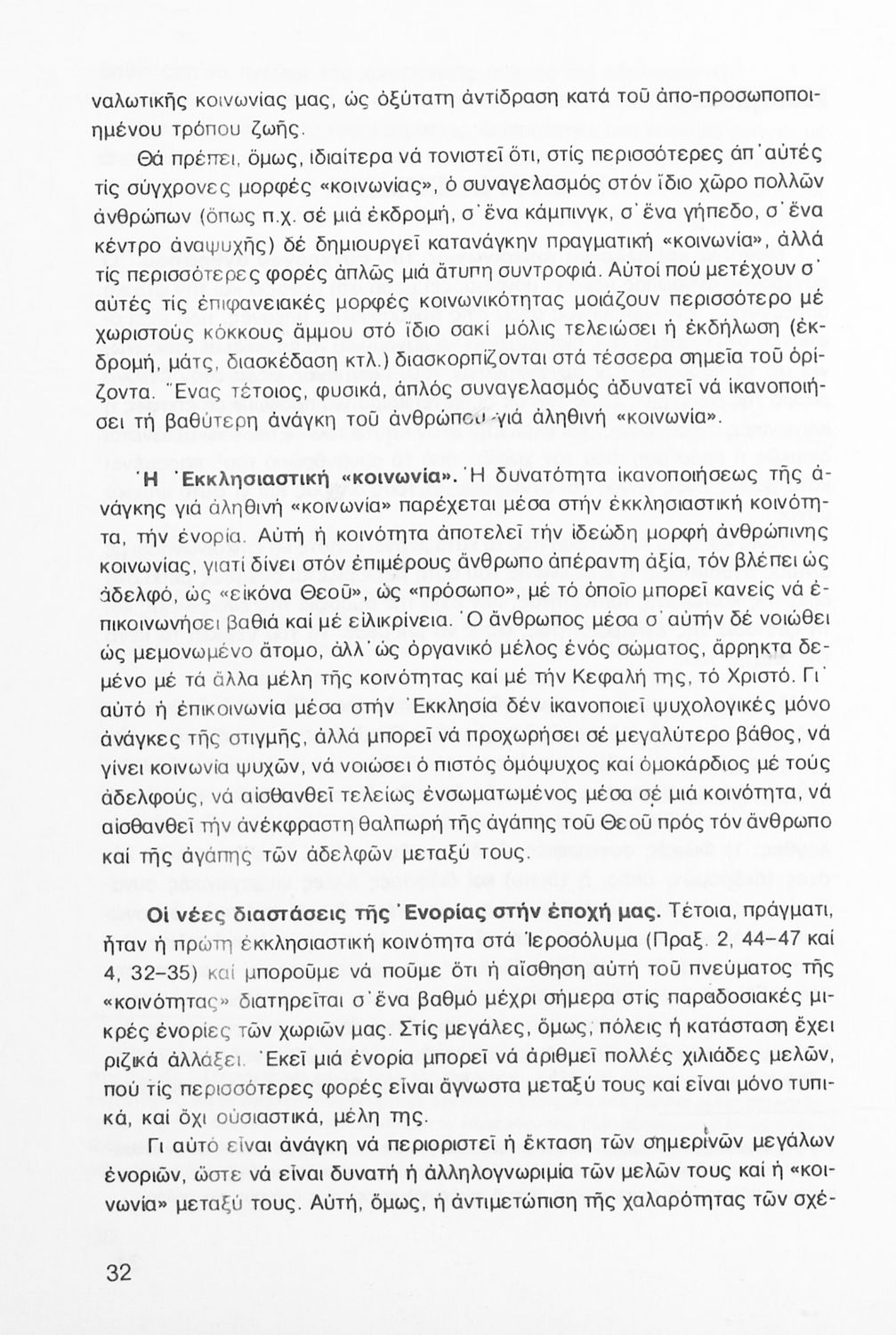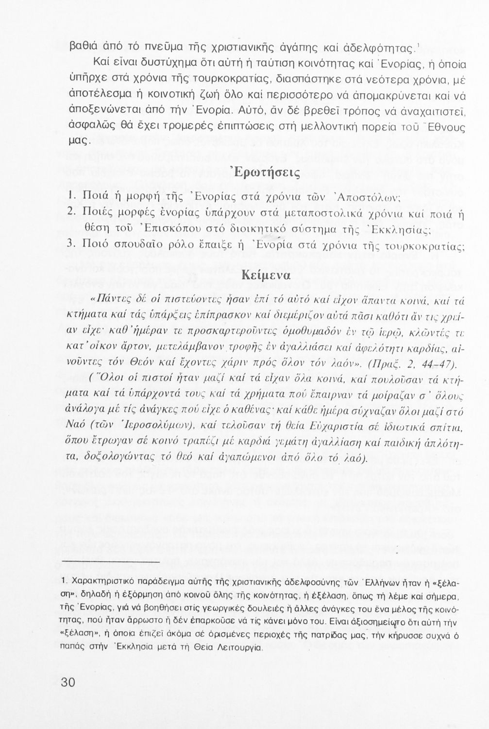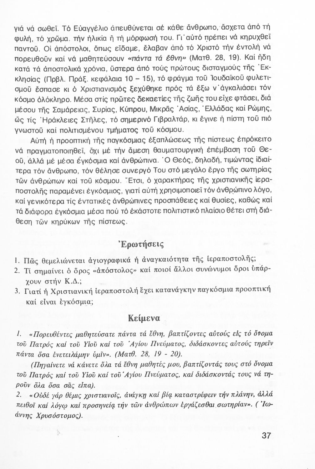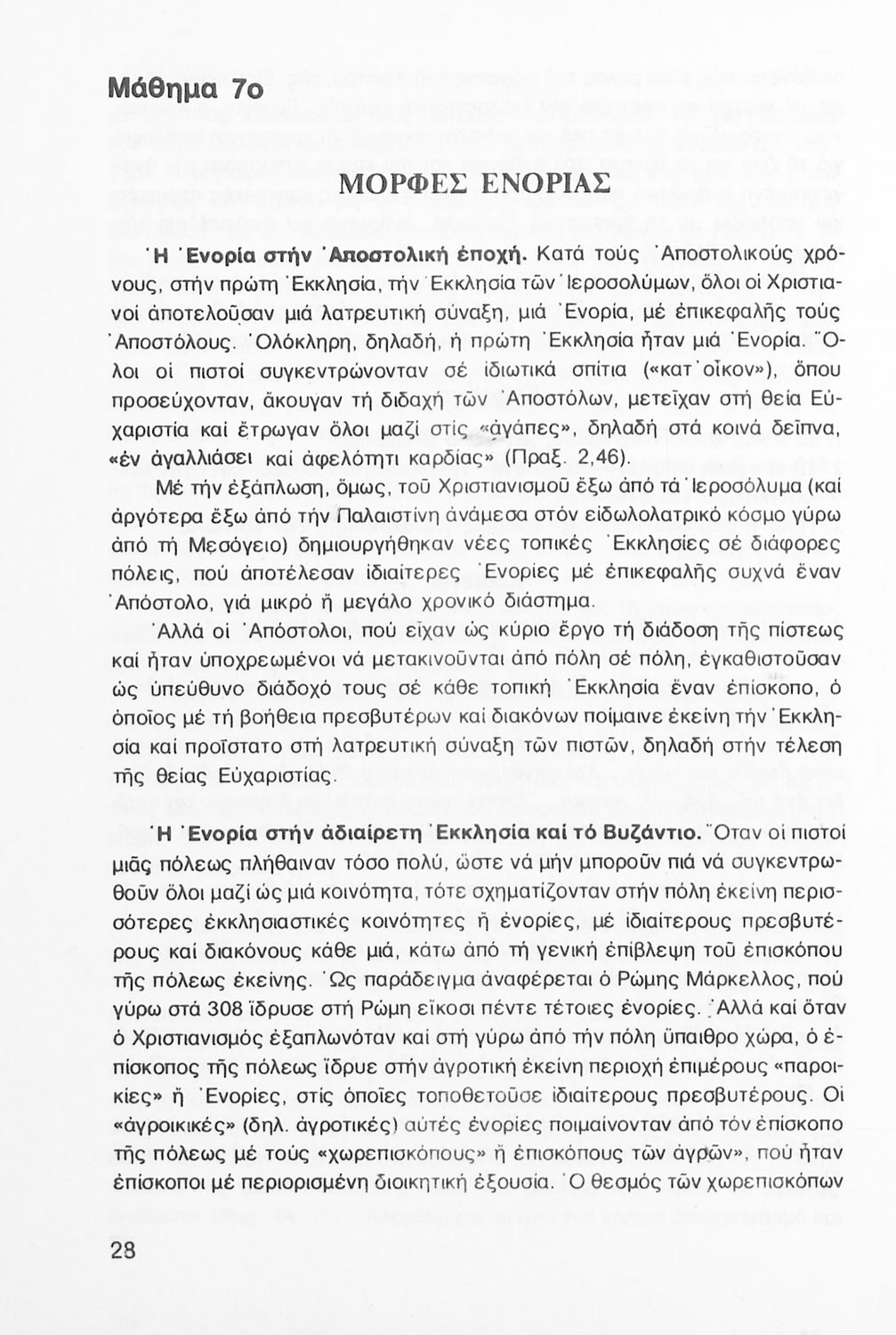 Σχολικό εγχειρίδιο Θρησκευτικών Α΄ Λυκείου που πραγματεύεται εκκλησιολογικά ζητήματα όπως η δομή και η οργάνωση της εκκλησίας και η σχέση της με άλλα δόγματα και αιρέσεις Περιέχει και στοιχεία για την κοινωνική δράση της Εκκλησίας και για τις μορφές της χριστιανικής τέχνης και αναλύει φαινόμενα όπως ο ασκητισμός και ο μοναχισμός.