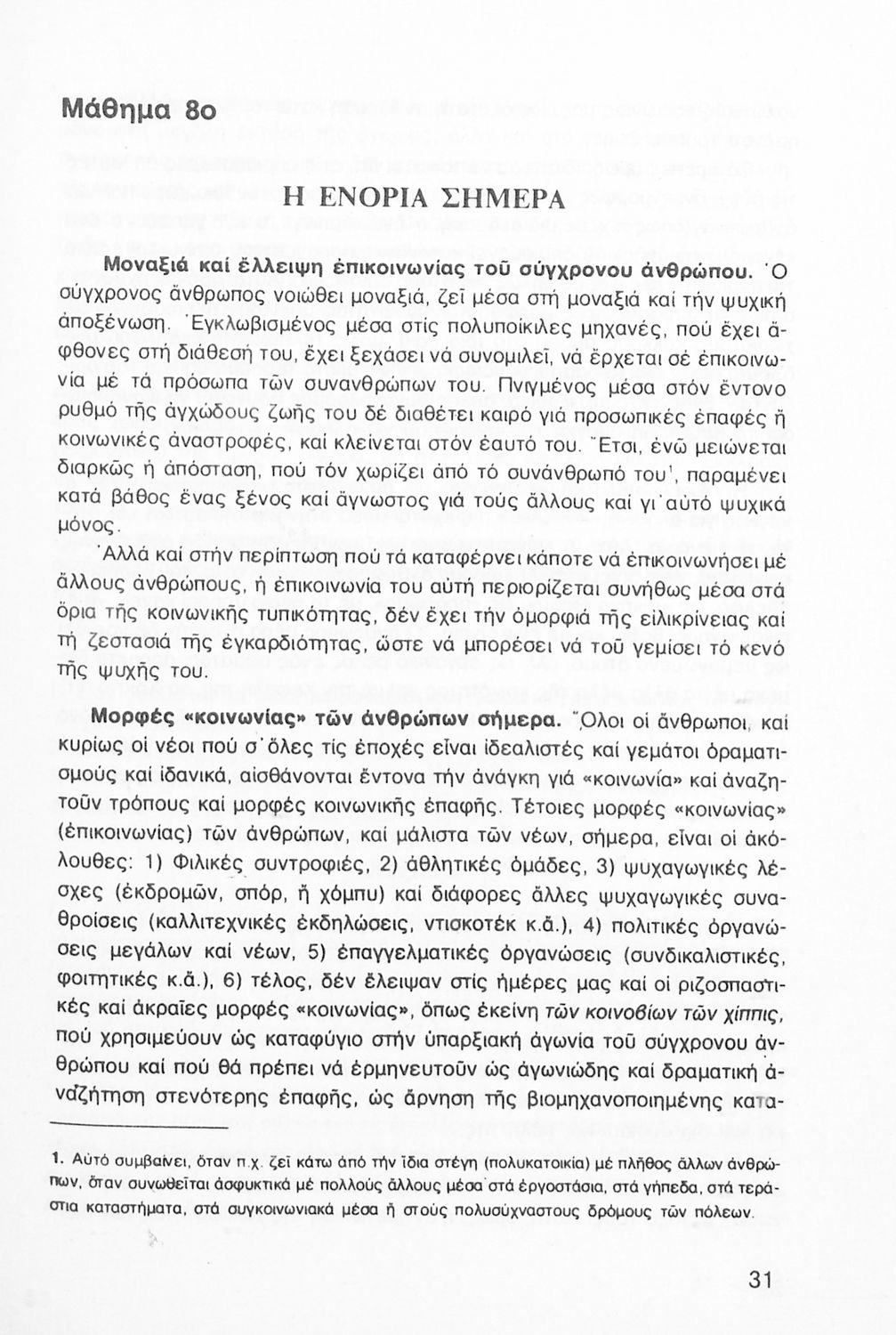 Βαθμίδα εκπαίδευσης: Δευτεροβάθμια Τάξη: Α' Λυκείου Μάθημα: Θρησκευτικά Γλώσσα: Δημοτική Παρουσίαση περιεχομένου: Σχολικό εγχειρίδιο Θρησκευτικών Α΄ Λυκείου που πραγματεύεται εκκλησιολογικά ζητήματα όπως η δομή και η οργάνωση της εκκλησίας και η σχέση της με άλλα δόγματα και αιρέσεις Περιέχει και στοιχεία για την κοινωνική δράση της Εκκλησίας και για τις μορφές της χριστιανικής τέχνης και αναλύει φαινόμενα όπως ο ασκητισμός και ο μοναχισμός. |