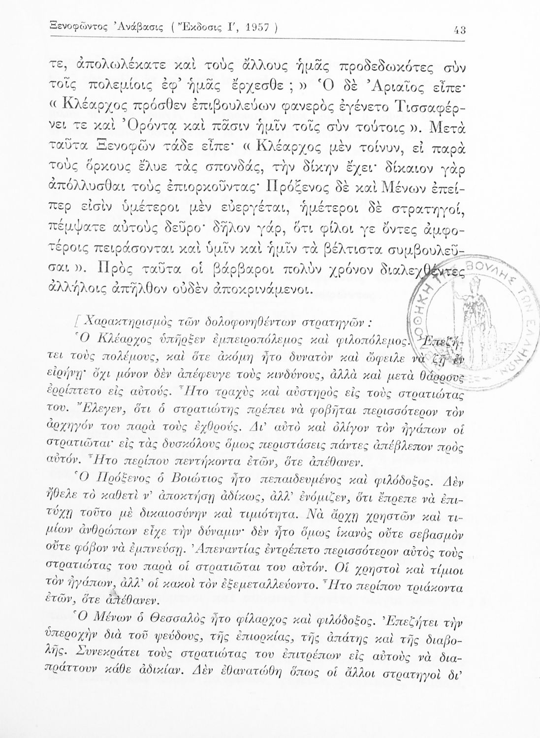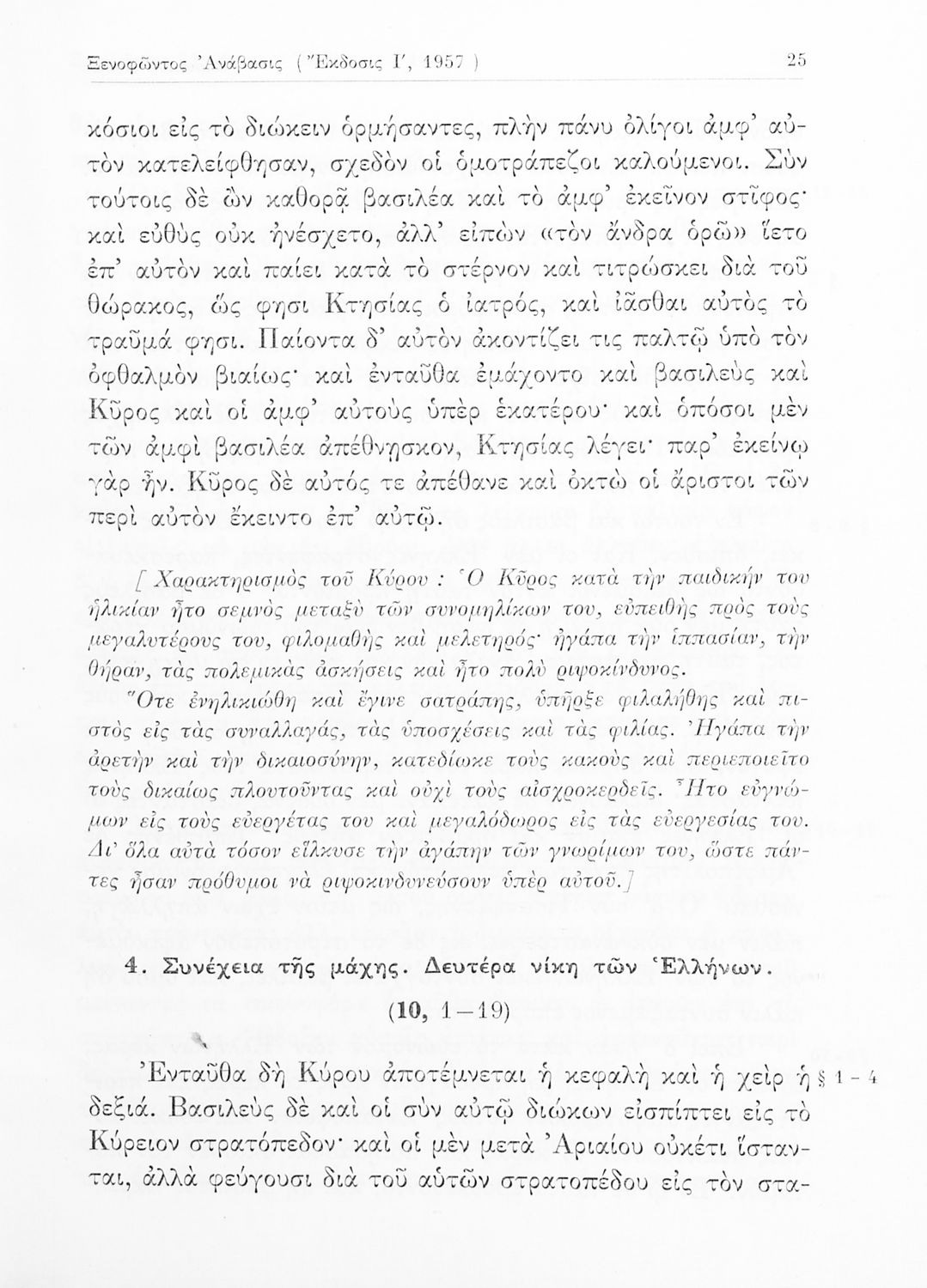 Σχολικό εγχειρίδιο Αρχαίων Ελληνικών για τις τάξεις του Γυμνασίου. Το βιβλίο αναφέρεται στην ιστορική συγγραφή του Ξενοφώντα για την εκστρατεία του Κύρου κατά του Αρταξέρξη και την κάθοδο των Μυρίων. Στο δεύτερο μέρος το βιβλίο περιέχει τα “Ελληνικά” του Ξενοφώντα που αφορούν την ιστορία των τελευταίων επτά ετών του Πελοποννησιακού πολέμου και τα συμβάντα από το τέλος του Πελοποννησιακού πολέμου μέχρι τη μάχη της Μαντινείας.
