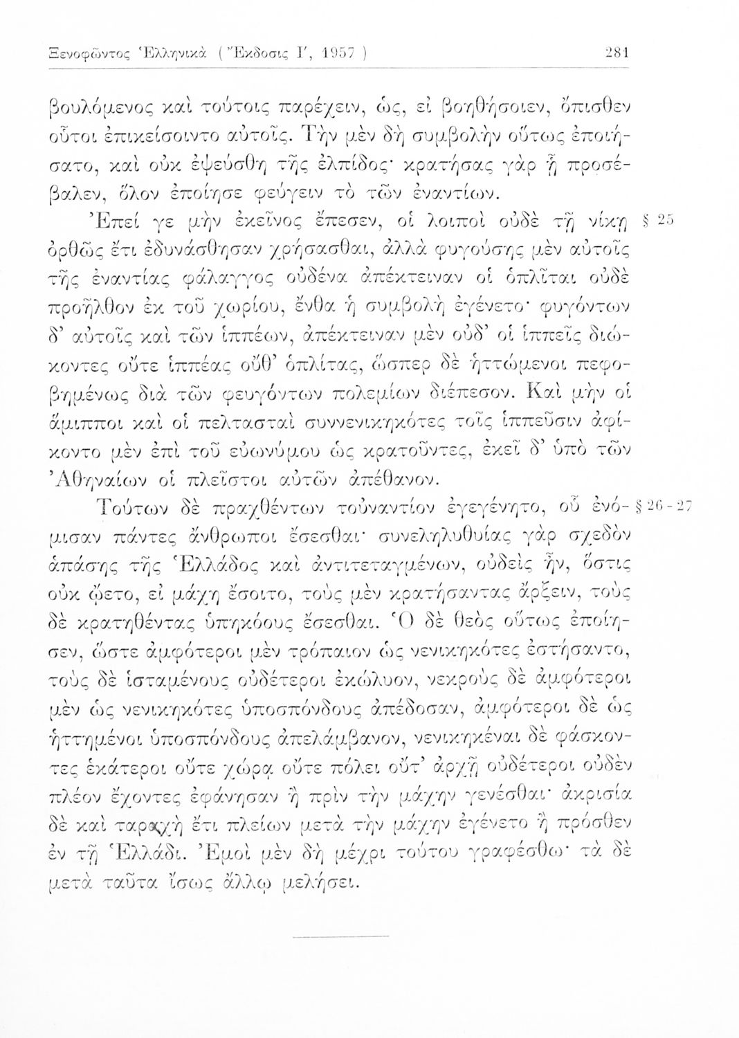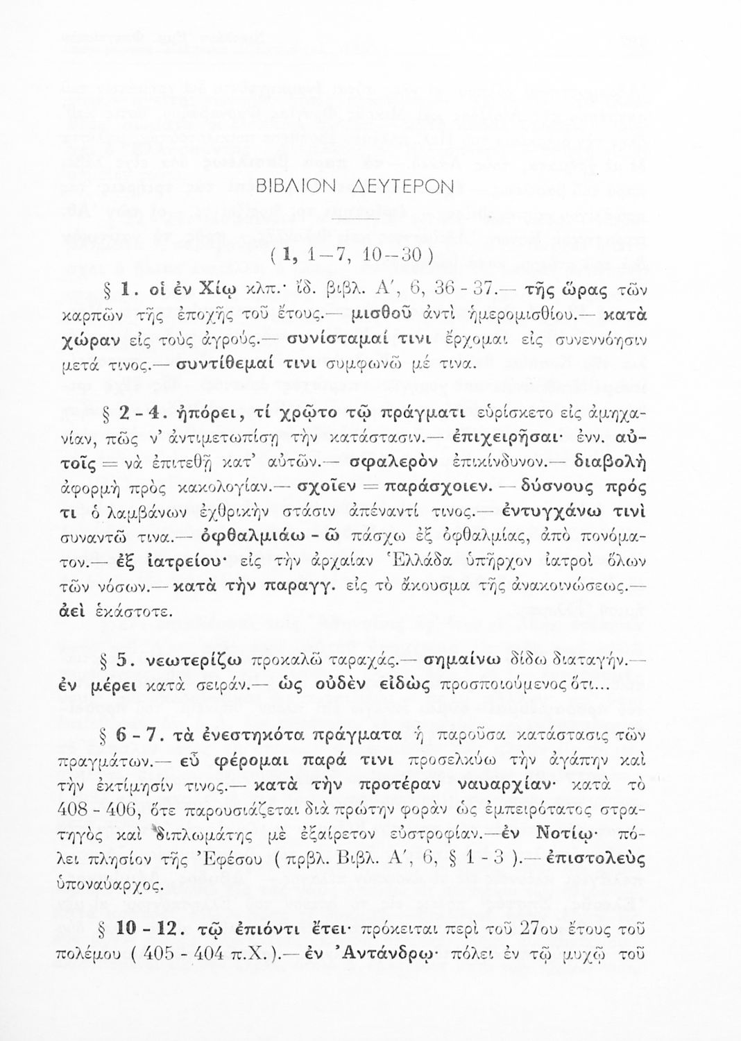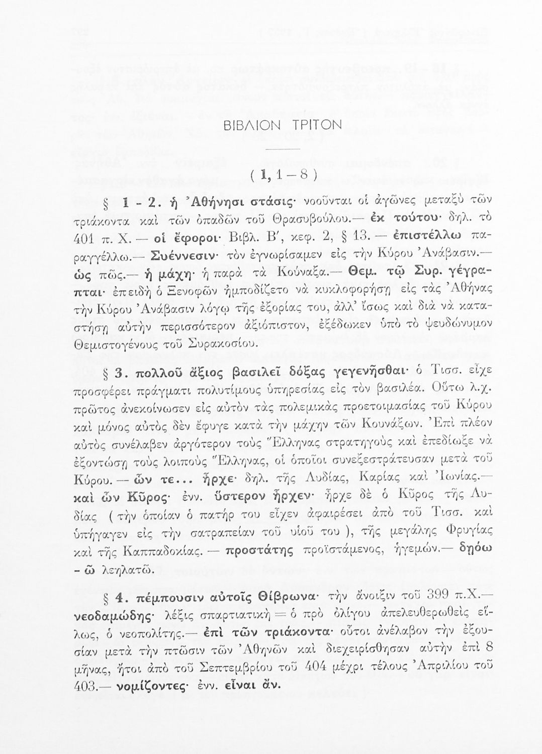 Σχολικό εγχειρίδιο Αρχαίων Ελληνικών για τις τάξεις του Γυμνασίου. Το βιβλίο αναφέρεται στην ιστορική συγγραφή του Ξενοφώντα για την εκστρατεία του Κύρου κατά του Αρταξέρξη και την κάθοδο των Μυρίων. Στο δεύτερο μέρος το βιβλίο περιέχει τα “Ελληνικά” του Ξενοφώντα που αφορούν την ιστορία των τελευταίων επτά ετών του Πελοποννησιακού πολέμου και τα συμβάντα από το τέλος του Πελοποννησιακού πολέμου μέχρι τη μάχη της Μαντινείας.