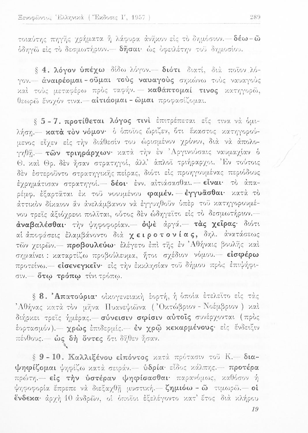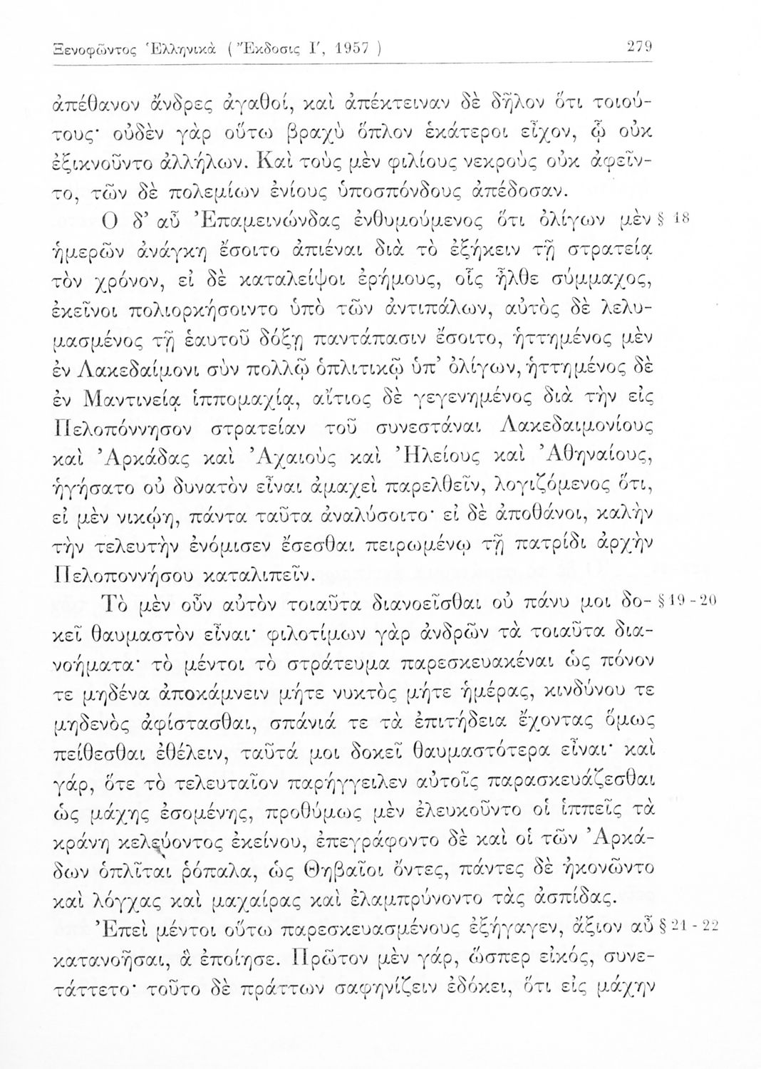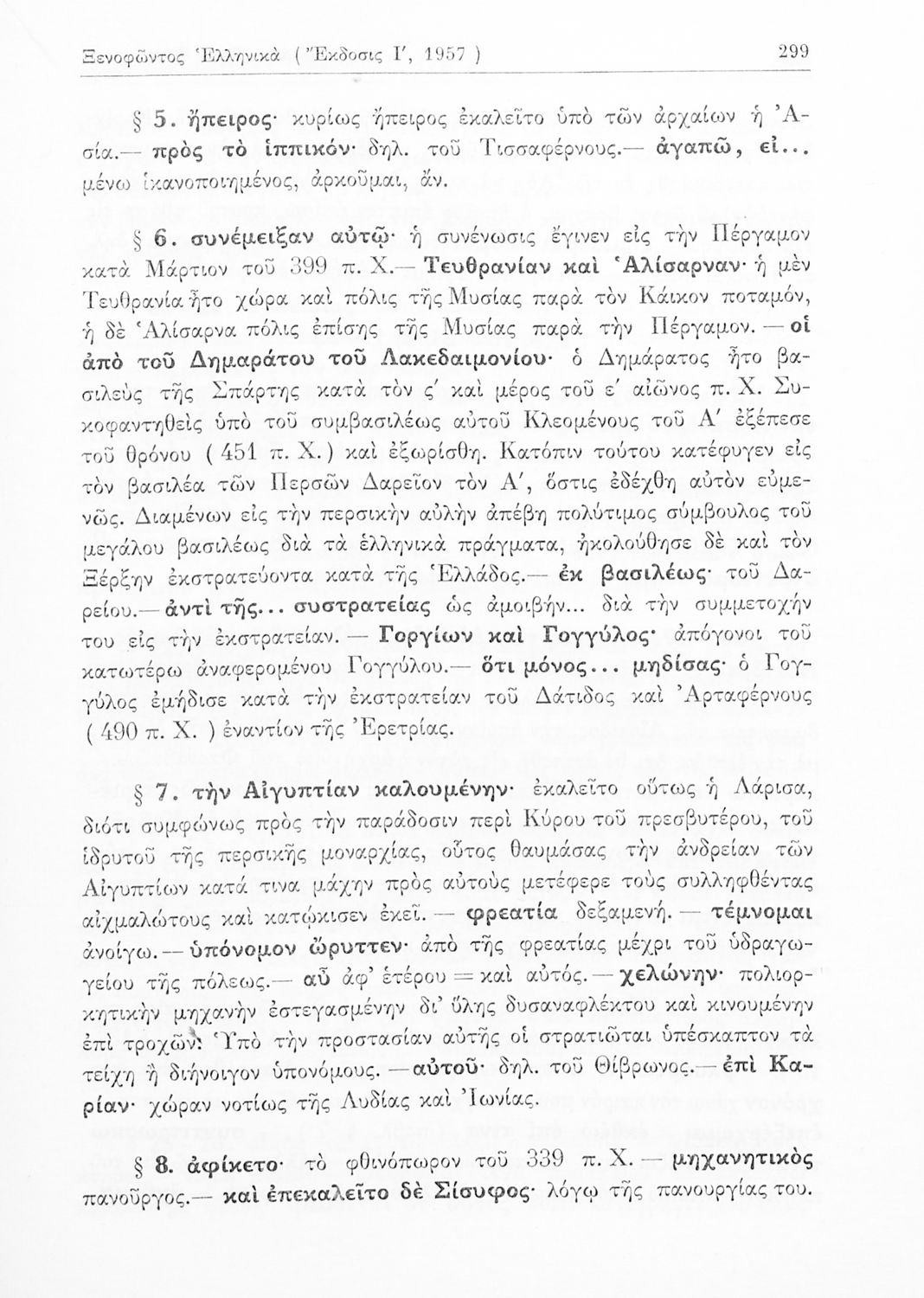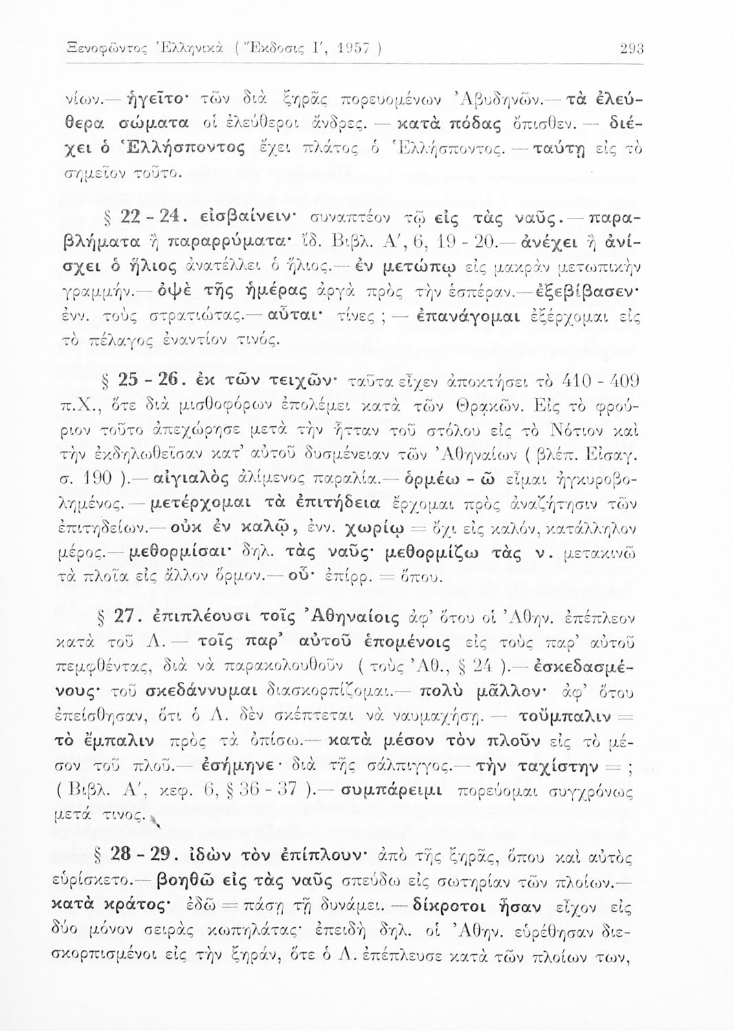 Σχολικό εγχειρίδιο Αρχαίων Ελληνικών για τις τάξεις του Γυμνασίου. Το βιβλίο αναφέρεται στην ιστορική συγγραφή του Ξενοφώντα για την εκστρατεία του Κύρου κατά του Αρταξέρξη και την κάθοδο των Μυρίων. Στο δεύτερο μέρος το βιβλίο περιέχει τα “Ελληνικά” του Ξενοφώντα που αφορούν την ιστορία των τελευταίων επτά ετών του Πελοποννησιακού πολέμου και τα συμβάντα από το τέλος του Πελοποννησιακού πολέμου μέχρι τη μάχη της Μαντινείας.