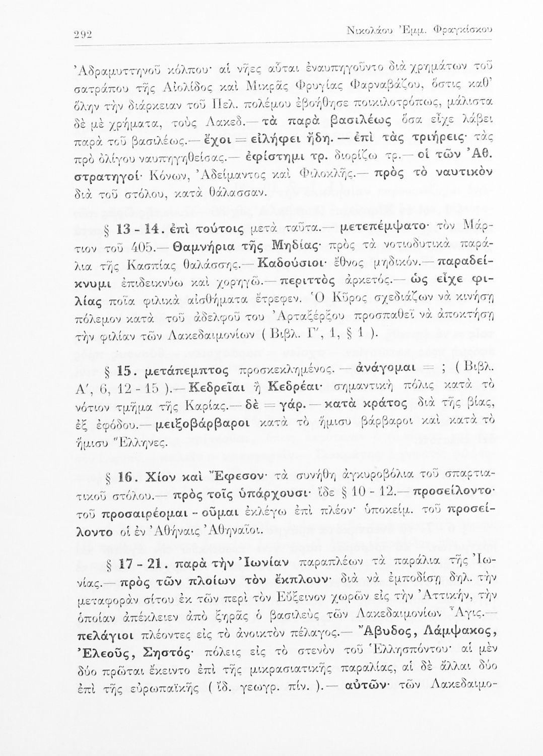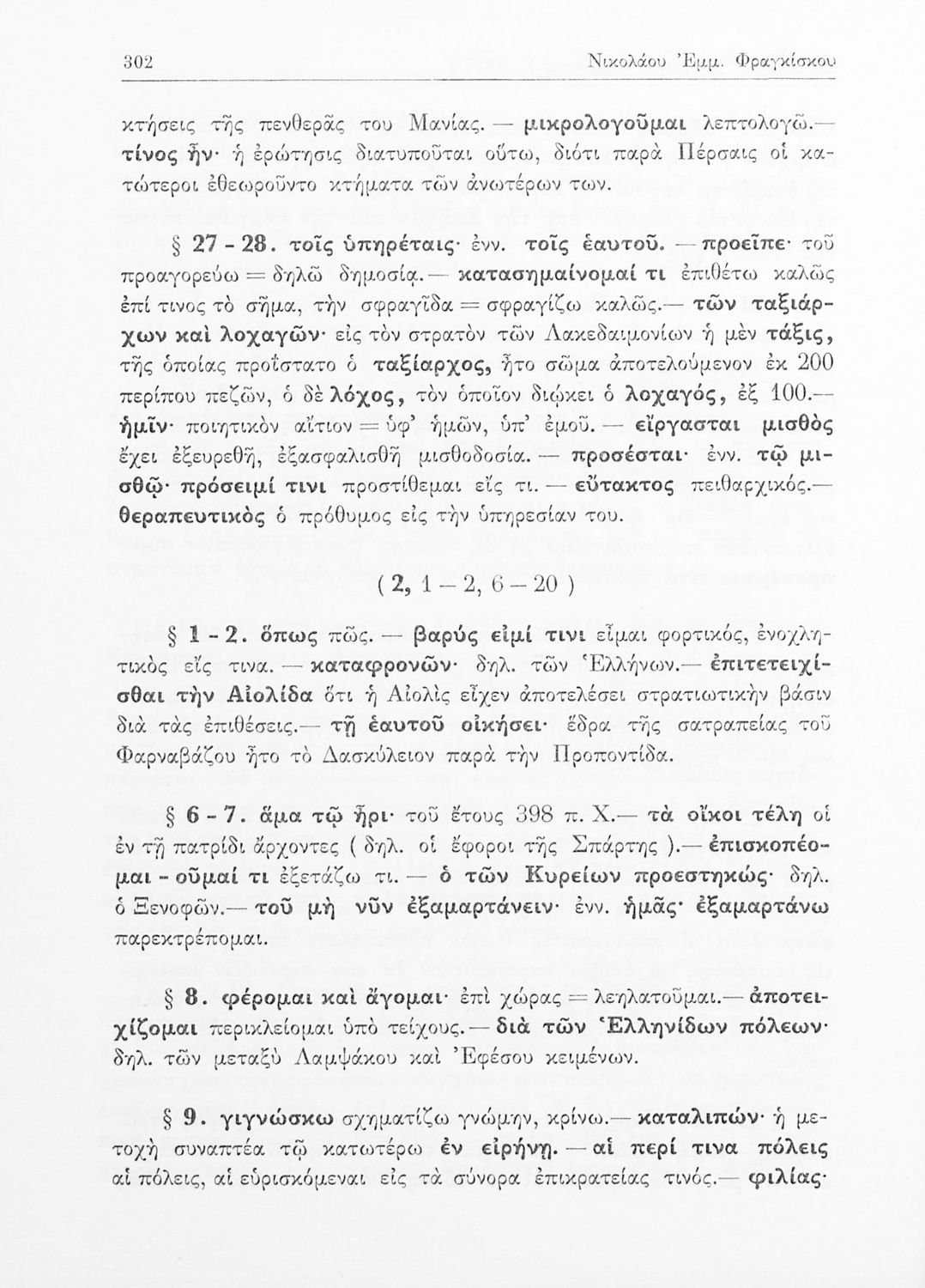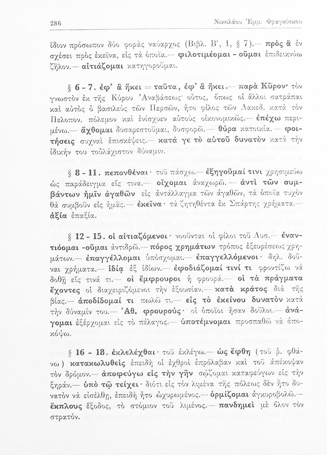 Ξενοφών, Κυριάκος Κοσμάς, Νικόλαος Φραγκίσκος (σχόλια)