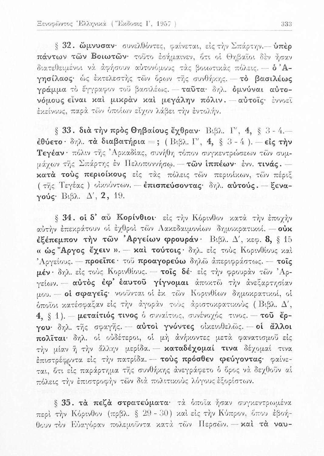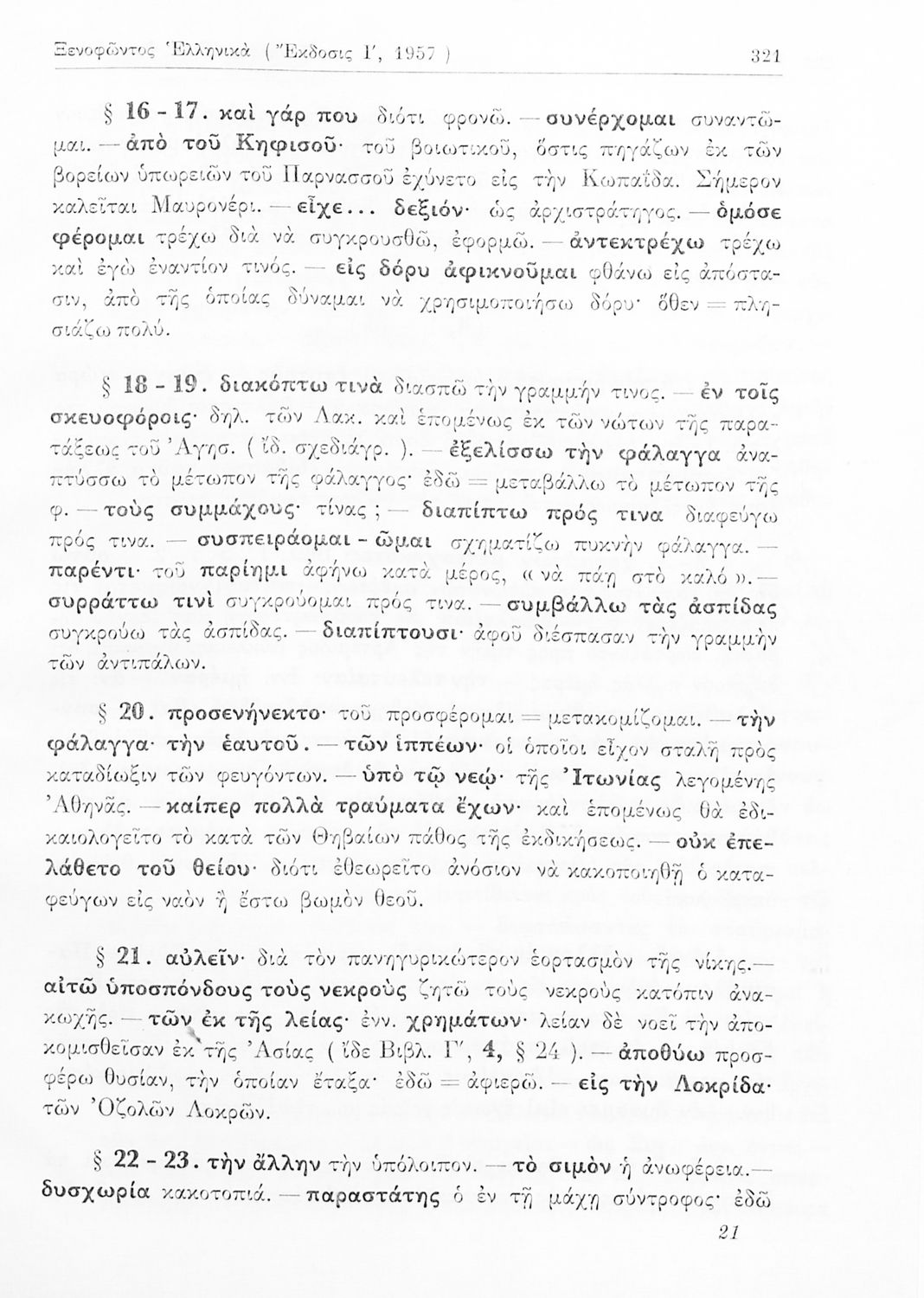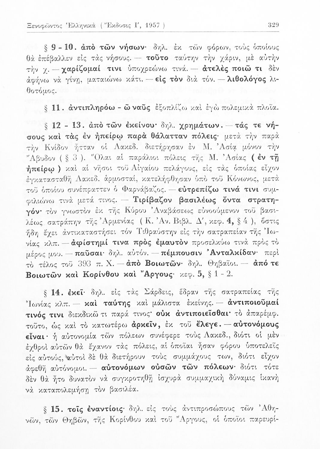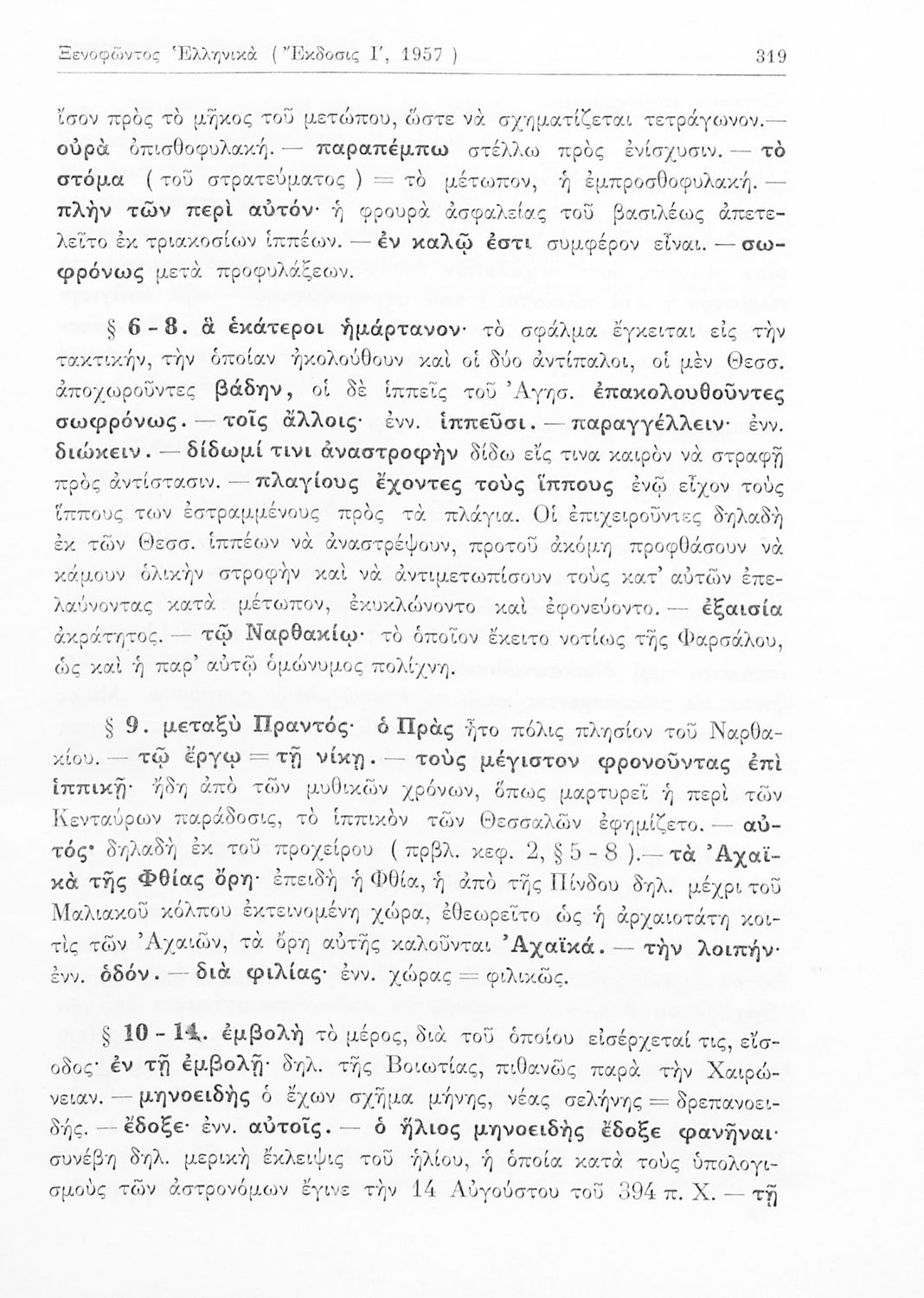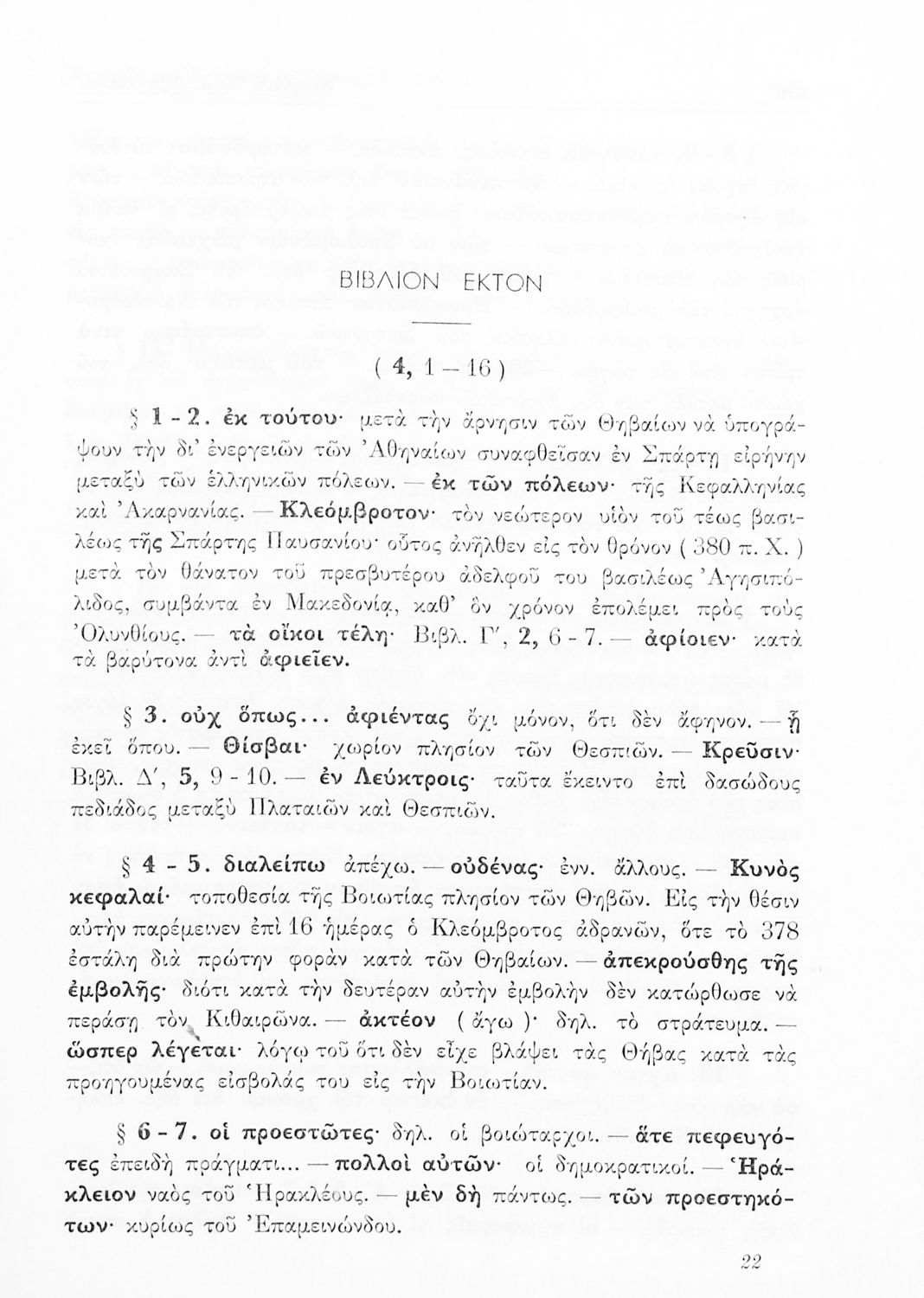 Σχολικό εγχειρίδιο Αρχαίων Ελληνικών για τις τάξεις του Γυμνασίου. Το βιβλίο αναφέρεται στην ιστορική συγγραφή του Ξενοφώντα για την εκστρατεία του Κύρου κατά του Αρταξέρξη και την κάθοδο των Μυρίων. Στο δεύτερο μέρος το βιβλίο περιέχει τα “Ελληνικά” του Ξενοφώντα που αφορούν την ιστορία των τελευταίων επτά ετών του Πελοποννησιακού πολέμου και τα συμβάντα από το τέλος του Πελοποννησιακού πολέμου μέχρι τη μάχη της Μαντινείας.