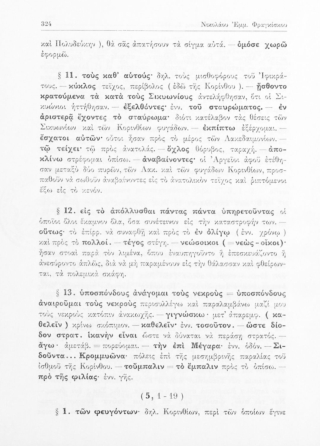 Ξενοφών, Κυριάκος Κοσμάς, Νικόλαος Φραγκίσκος (σχόλια)