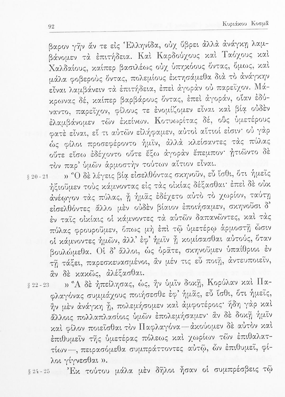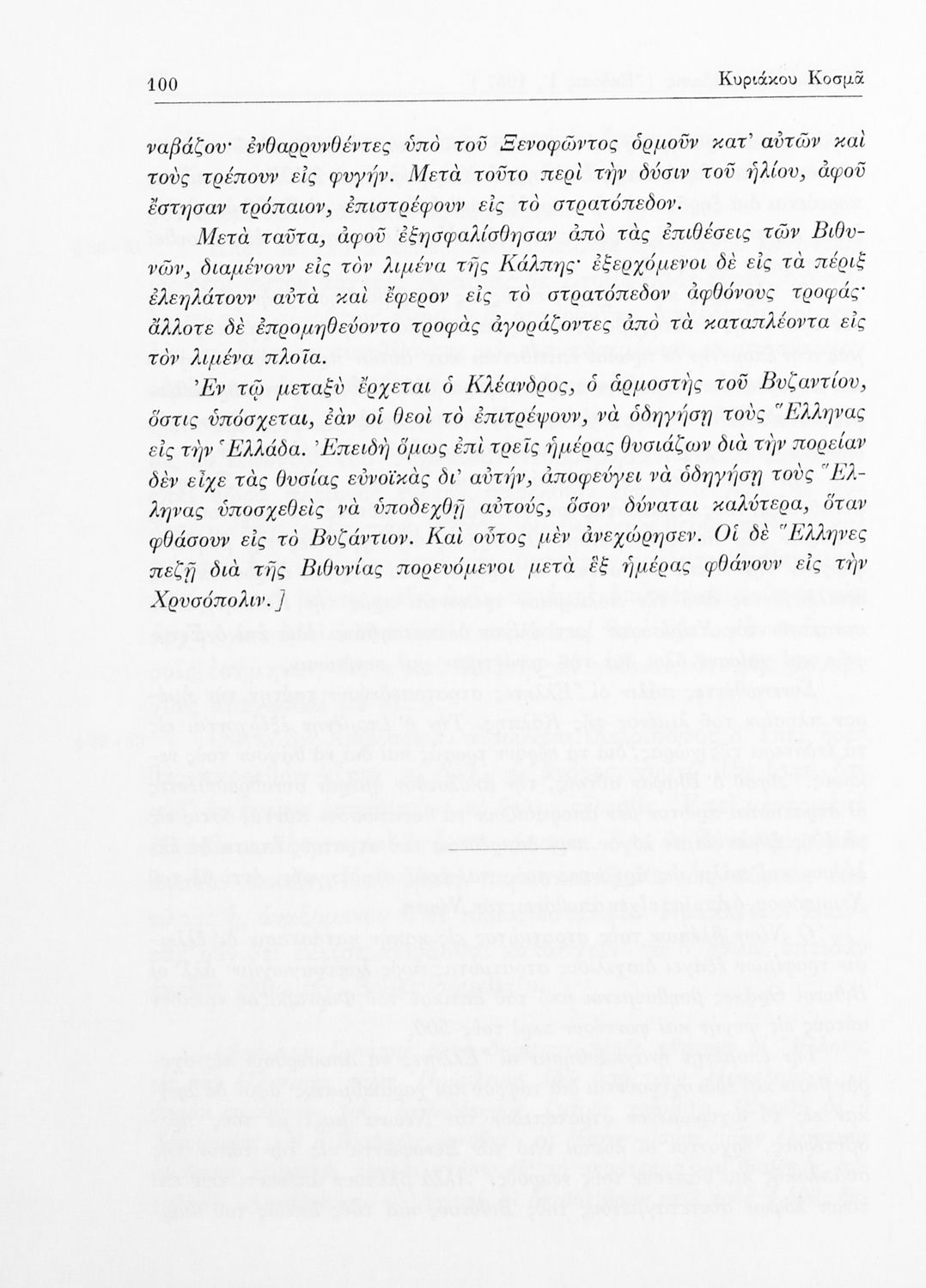 Ξενοφών, Κυριάκος Κοσμάς, Νικόλαος Φραγκίσκος (σχόλια)