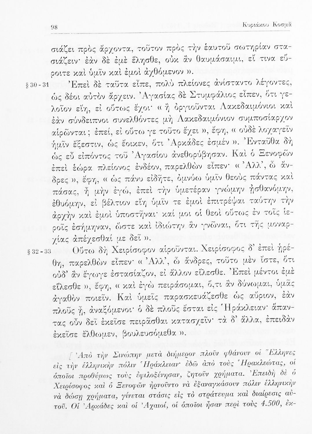 Ξενοφών, Κυριάκος Κοσμάς (σχόλια)