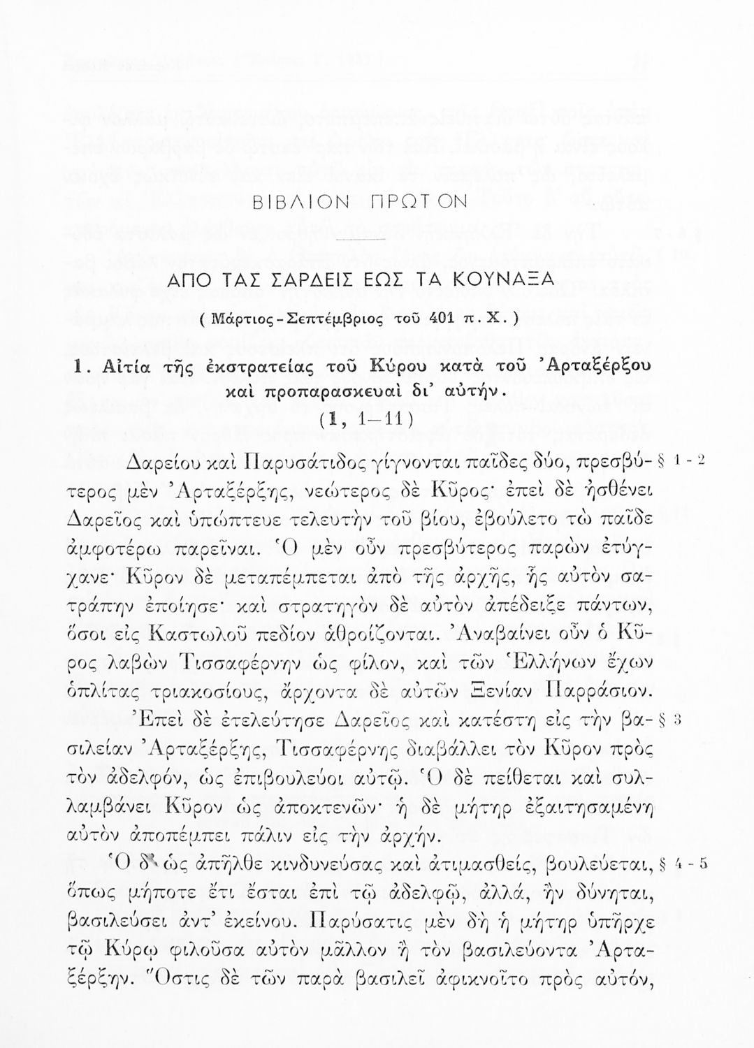 Σχολικό εγχειρίδιο Αρχαίων Ελληνικών Α΄ Γυμνασίου που περιλαμβάνει το έργο του Ξενοφώντα Κύρου Ανάβασις, μετάφραση, ερμηνευτικές και πραγματολογικές παρατηρήσεις.