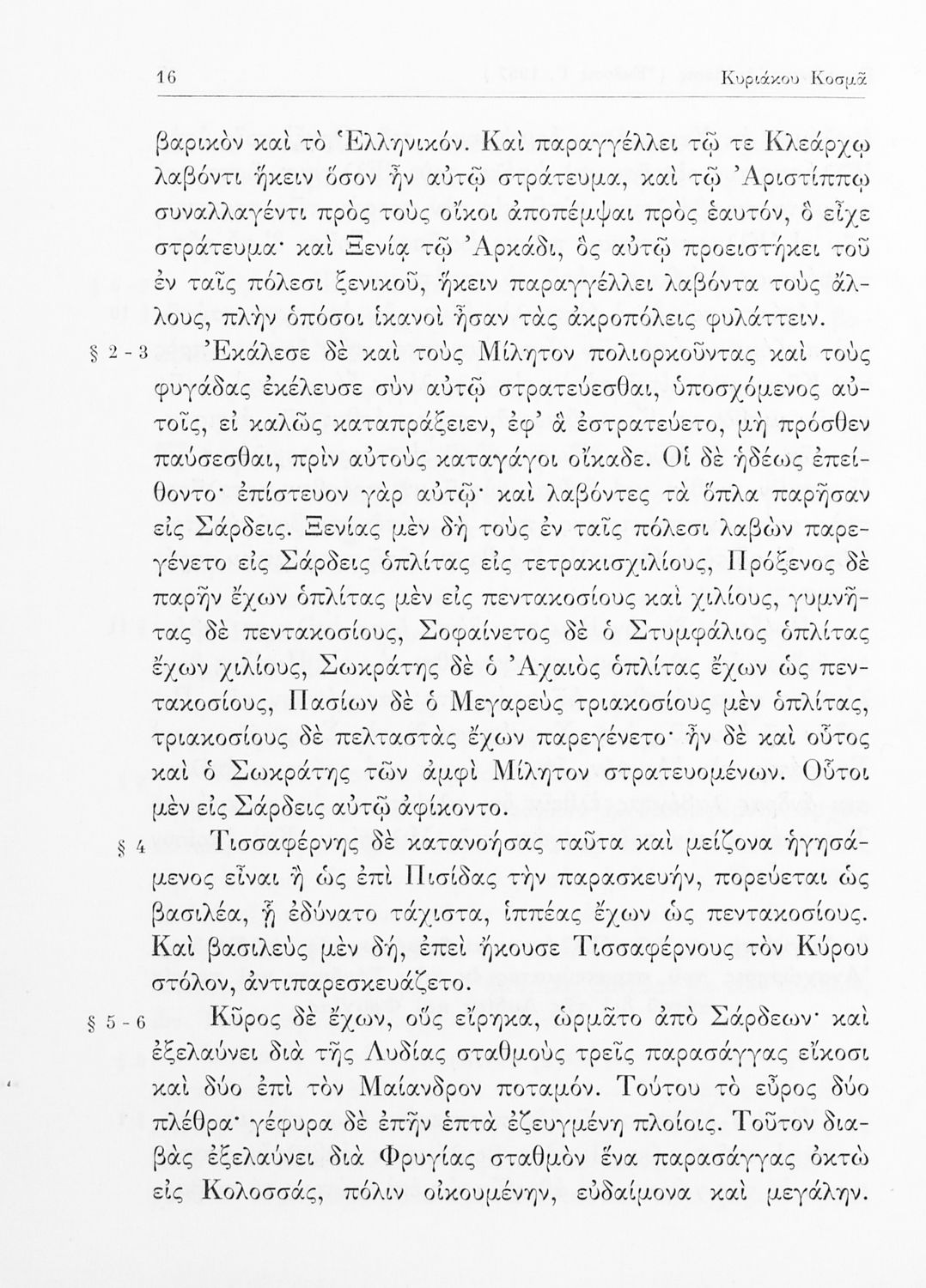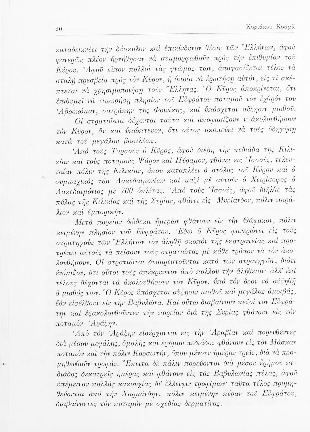 Ξενοφών, Κυριάκος Κοσμάς (σχόλια)