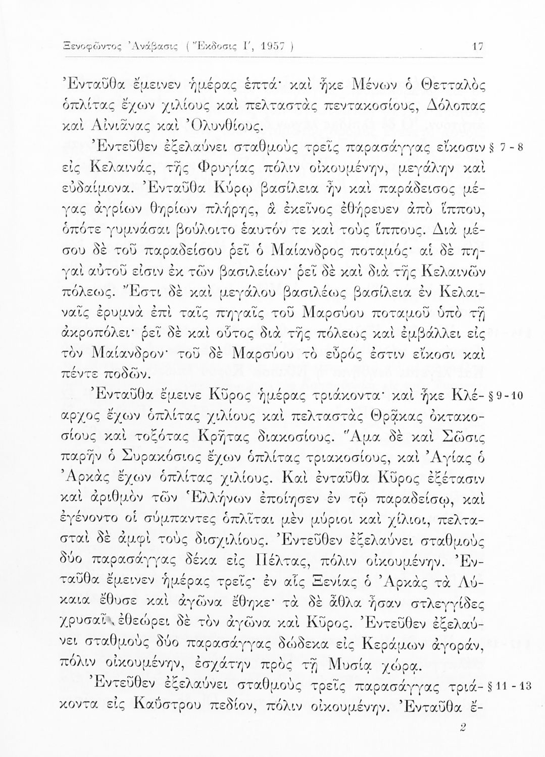 Σχολικό εγχειρίδιο Αρχαίων Ελληνικών Β΄ Γυμνασίου που περιέχει αποσπάσματα από το έργο Κύρου Ανάβασις του Ξενοφώντα, λεξιλογικές παρατηρήσεις, ερμηνευτικά, πραγματολογικά σχόλια και γραμματικές παρατηρήσεις.