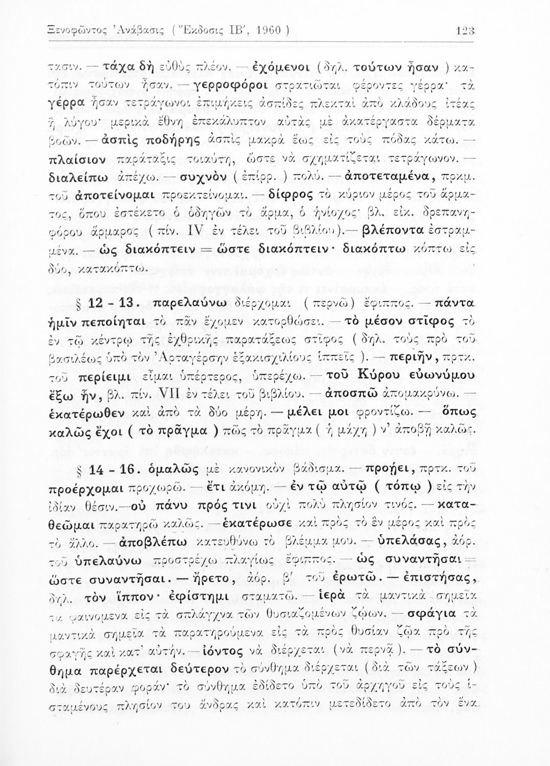 Σχολικό εγχειρίδιο Αρχαίων Ελληνικών Δ΄ Γυμνασίου που περιλαμβάνει αποσπάσματα από το έργο του Ξενοφώντα Ελληνικά, γραμματικές και συντακτικές παρατηρήσεις και ερμηνευτικά και πραγματολογικά σχόλια.