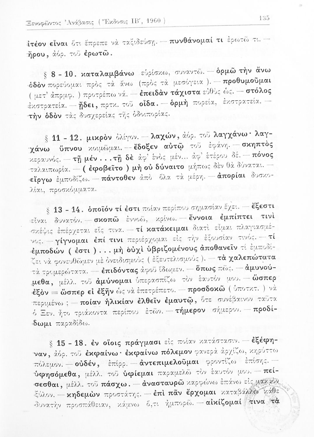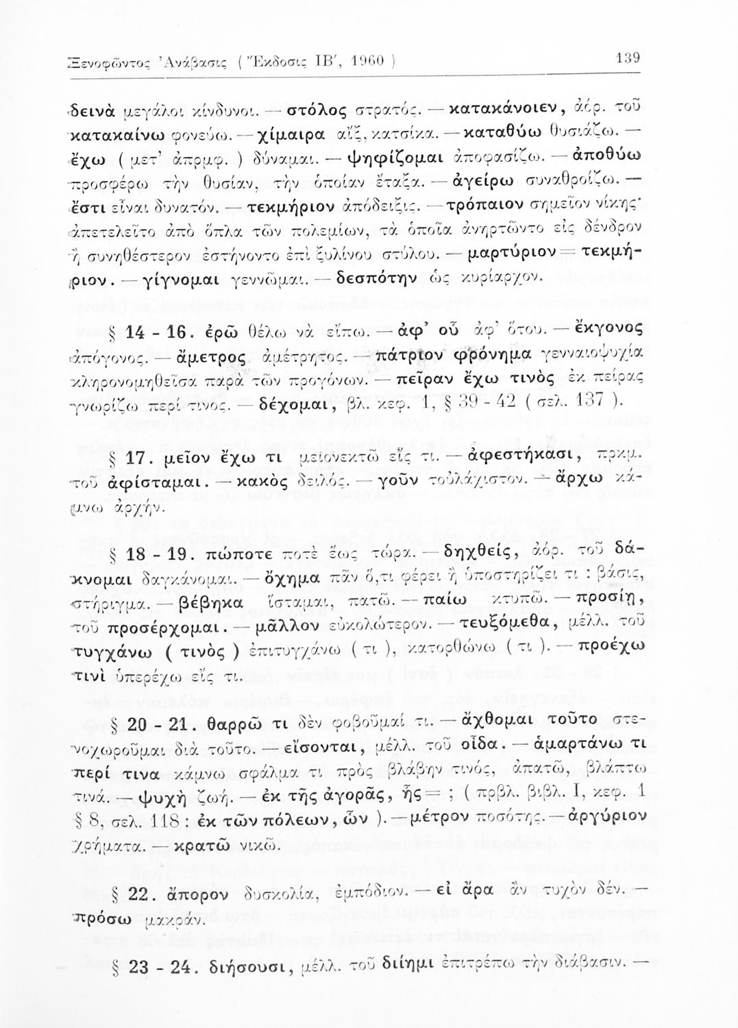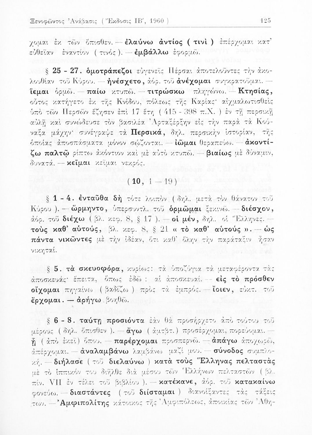 Σχολικό Εγχειρίδιο Αρχαίων Ελληνικών της Β' Γυμνασίου. Το βιβλίο αναφέρεται στο σύγγραμμα του Ξενοφώντα για την εκστρατεία του Κύρου κατά του Αρταξέρξη και κυρίως την κάθοδο ( επιστροφή) των Μυρίων. Στο δεύτερο μέρος το βιβλίο περιέχει τα “Ελληνικά” του Ξενοφώντα που αφορούν την ιστορία των τελευταίων επτά ετών του Πελοποννησιακού πολέμου και τα συμβάντα από το τέλος του Πελοποννησιακού πολέμου μέχρι τη μάχη της Μαντινείας.
