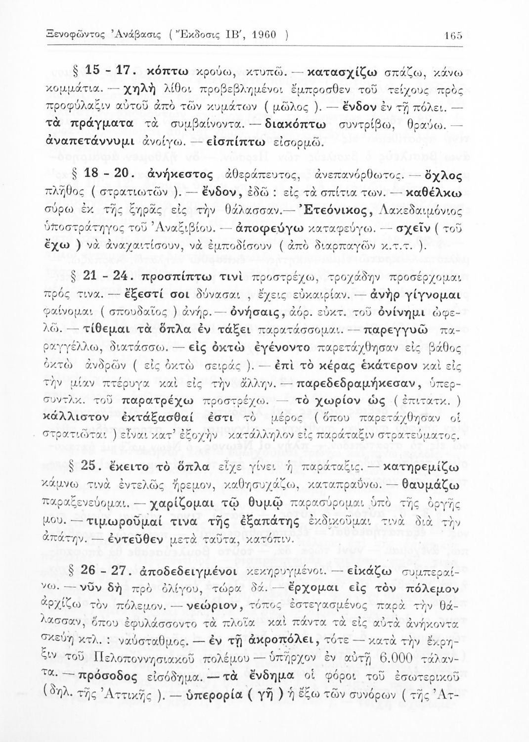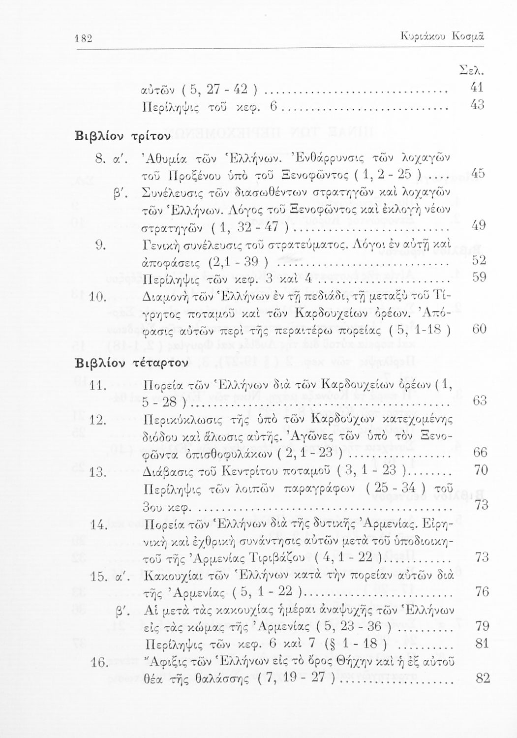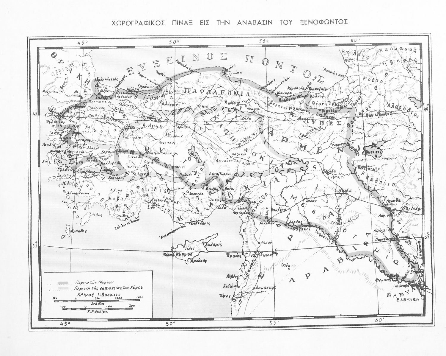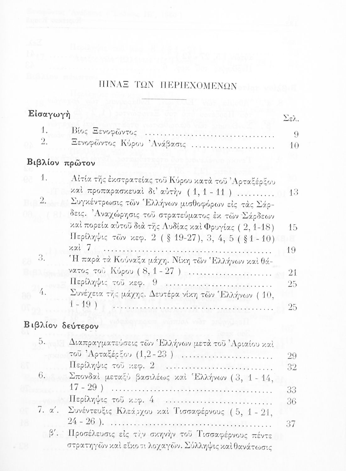 Σχολικό Εγχειρίδιο Αρχαίων Ελληνικών της Β' Γυμνασίου. Το βιβλίο αναφέρεται στο σύγγραμμα του Ξενοφώντα για την εκστρατεία του Κύρου κατά του Αρταξέρξη και κυρίως την κάθοδο ( επιστροφή) των Μυρίων. Στο δεύτερο μέρος το βιβλίο περιέχει τα “Ελληνικά” του Ξενοφώντα που αφορούν την ιστορία των τελευταίων επτά ετών του Πελοποννησιακού πολέμου και τα συμβάντα από το τέλος του Πελοποννησιακού πολέμου μέχρι τη μάχη της Μαντινείας.