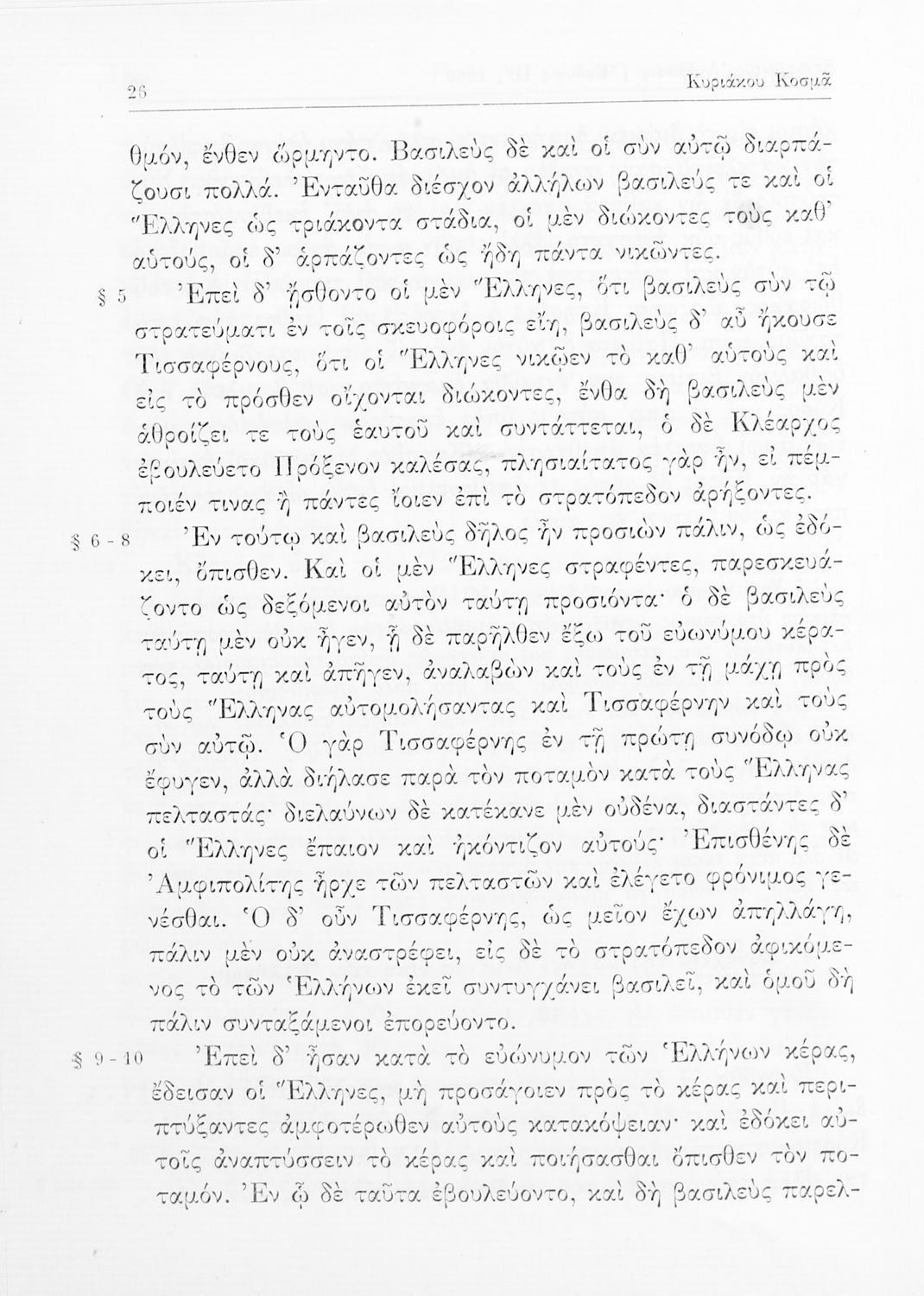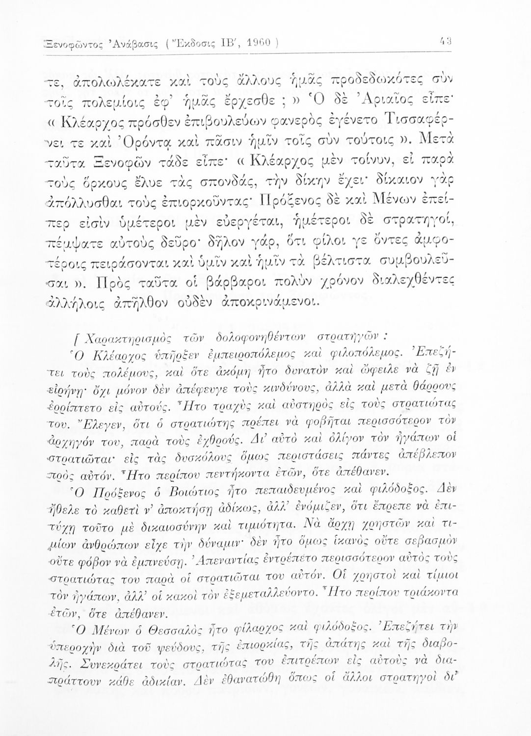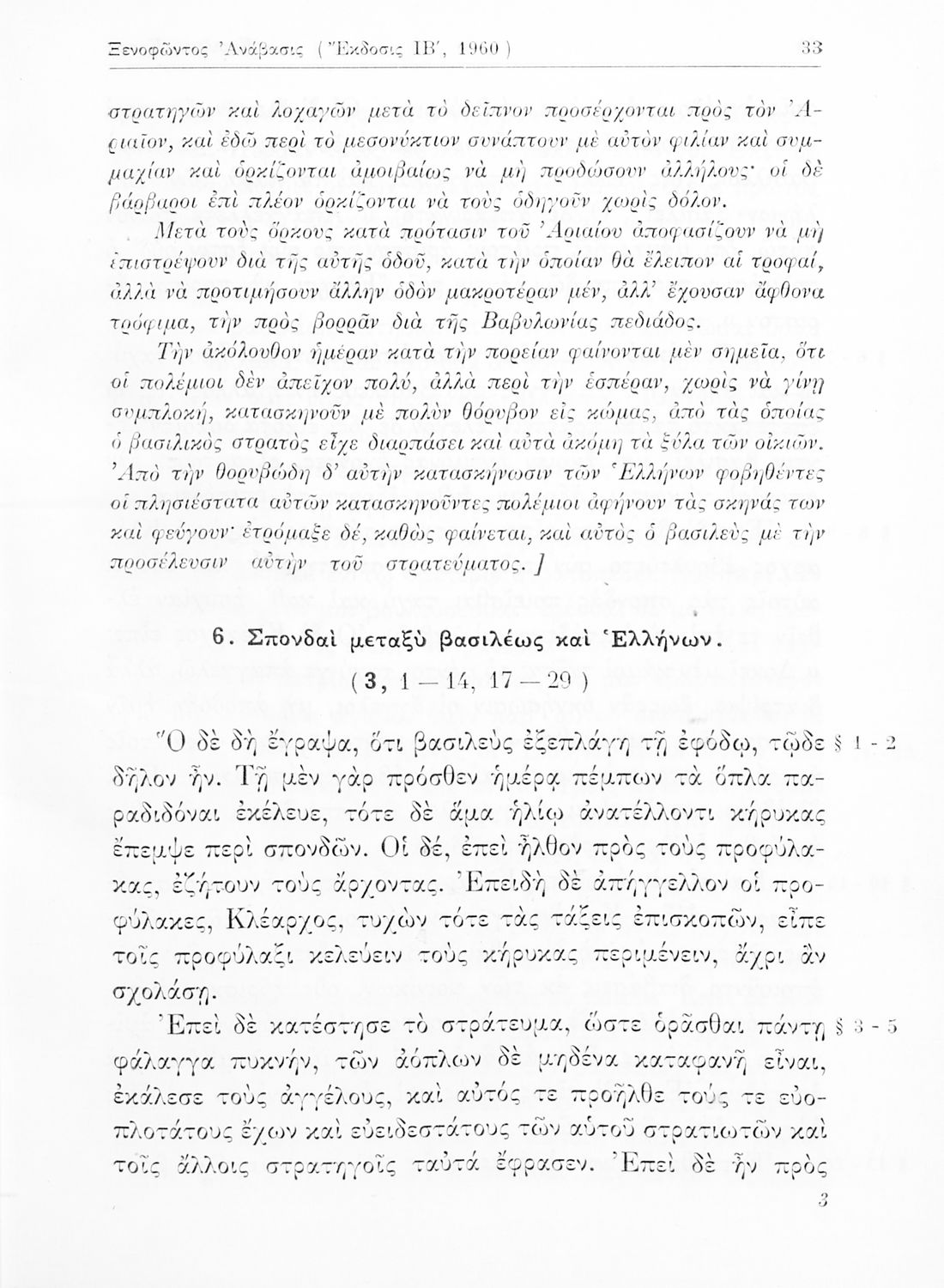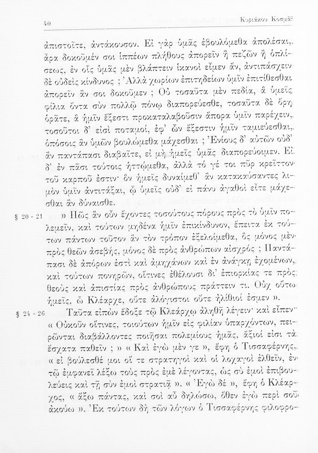 Σχολικό Εγχειρίδιο Αρχαίων Ελληνικών της Β' Γυμνασίου. Το βιβλίο αναφέρεται στο σύγγραμμα του Ξενοφώντα για την εκστρατεία του Κύρου κατά του Αρταξέρξη και κυρίως την κάθοδο ( επιστροφή) των Μυρίων. Στο δεύτερο μέρος το βιβλίο περιέχει τα “Ελληνικά” του Ξενοφώντα που αφορούν την ιστορία των τελευταίων επτά ετών του Πελοποννησιακού πολέμου και τα συμβάντα από το τέλος του Πελοποννησιακού πολέμου μέχρι τη μάχη της Μαντινείας.