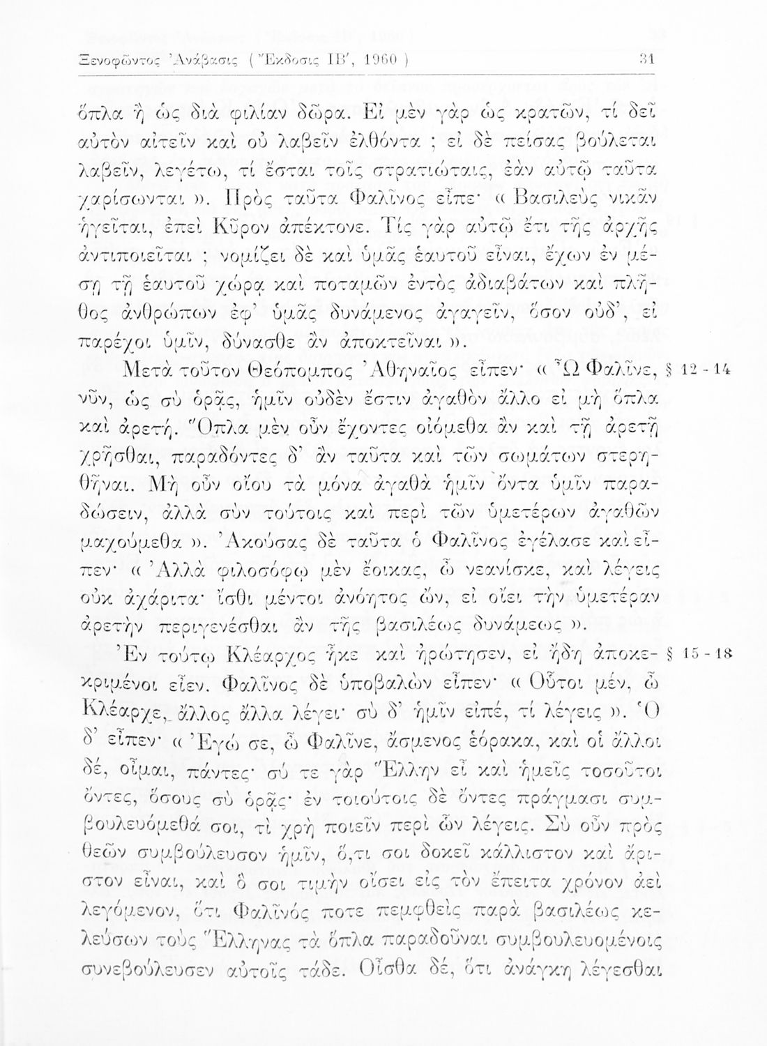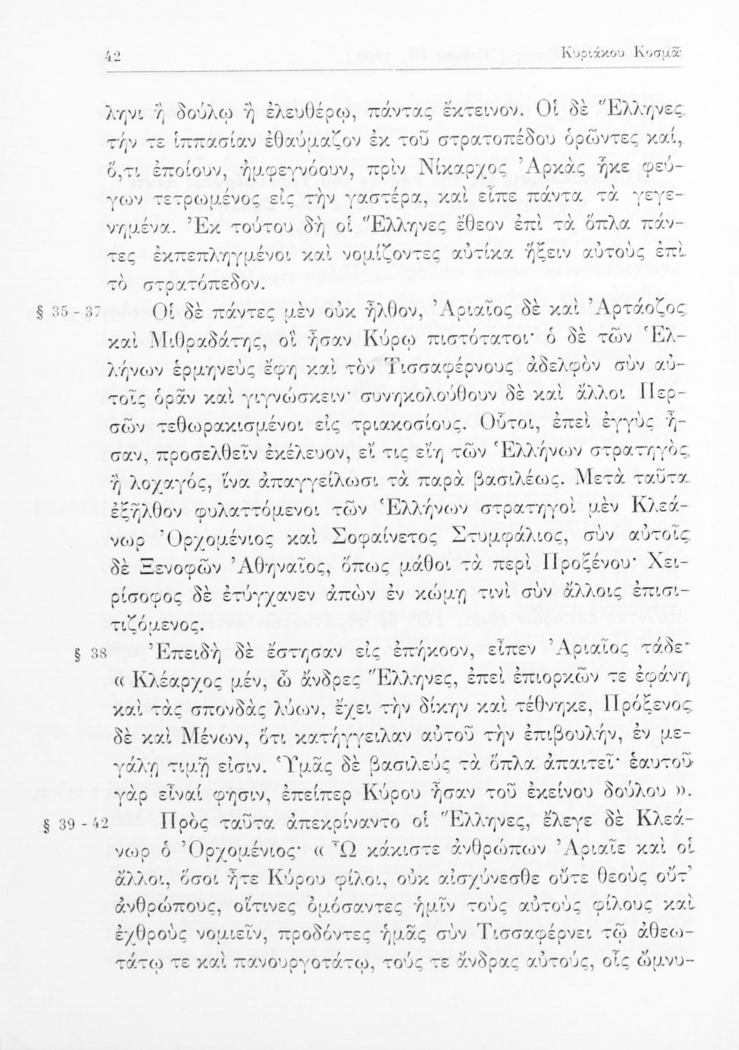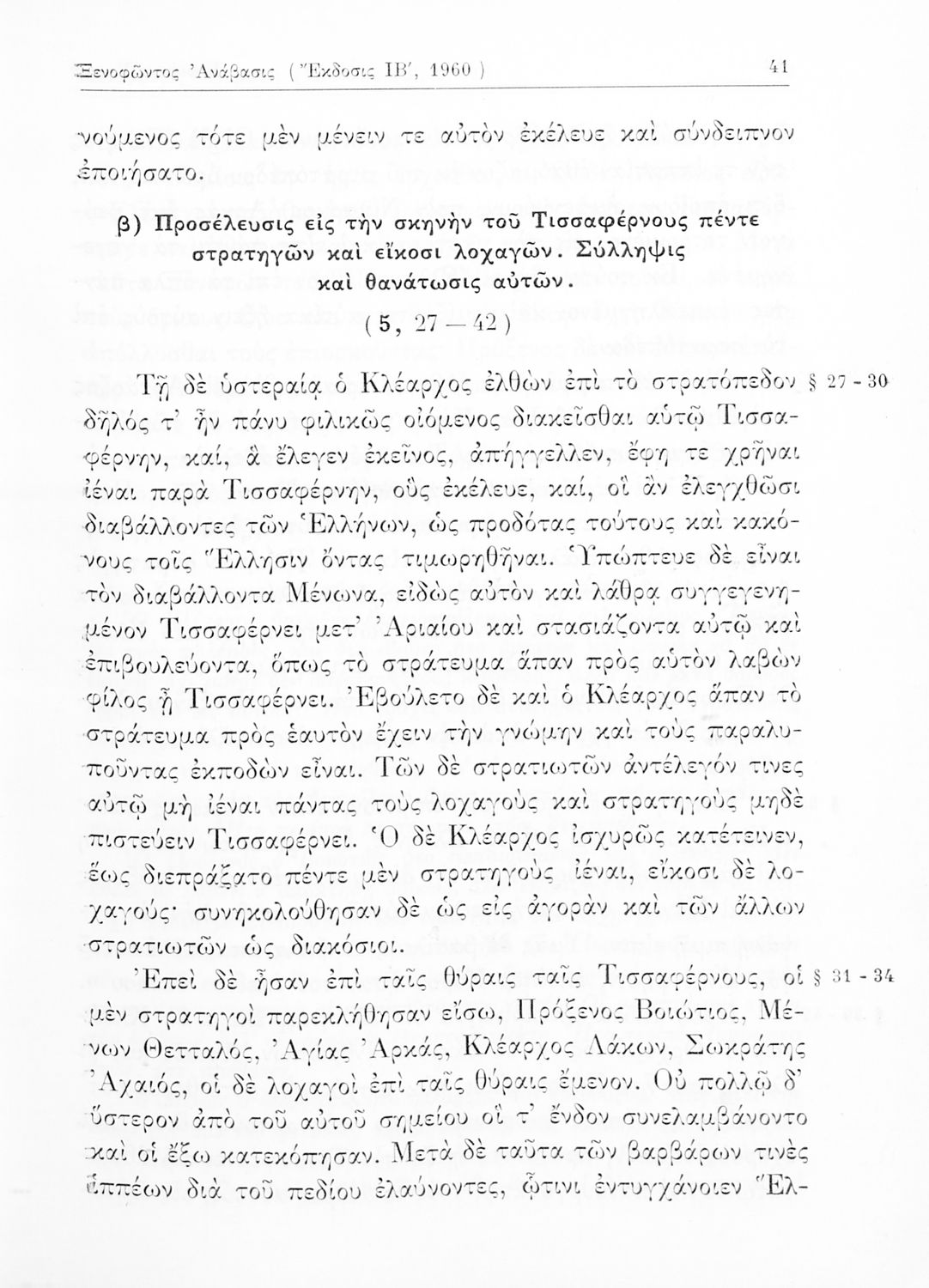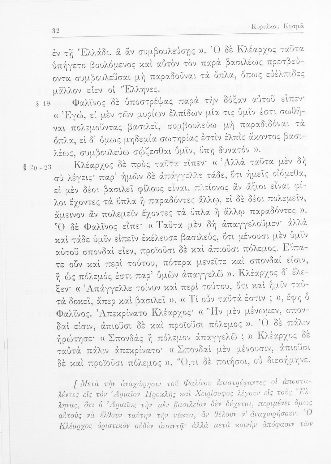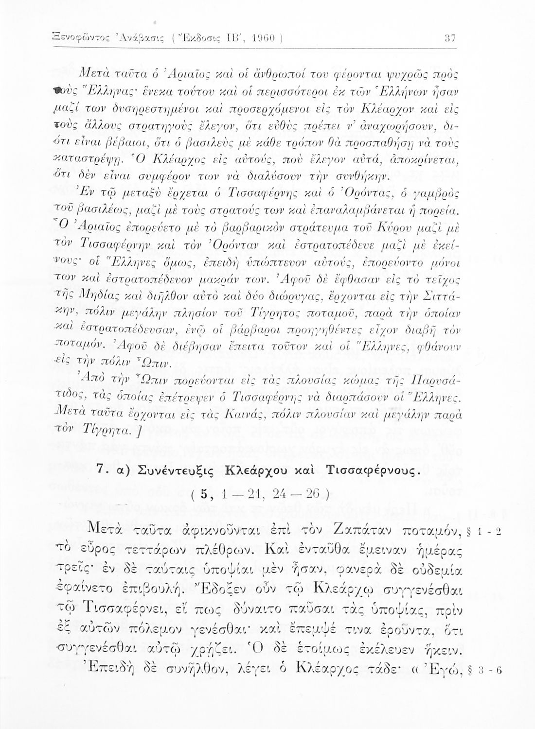 Σχολικό Εγχειρίδιο Αρχαίων Ελληνικών της Β' Γυμνασίου. Το βιβλίο αναφέρεται στο σύγγραμμα του Ξενοφώντα για την εκστρατεία του Κύρου κατά του Αρταξέρξη και κυρίως την κάθοδο ( επιστροφή) των Μυρίων. Στο δεύτερο μέρος το βιβλίο περιέχει τα “Ελληνικά” του Ξενοφώντα που αφορούν την ιστορία των τελευταίων επτά ετών του Πελοποννησιακού πολέμου και τα συμβάντα από το τέλος του Πελοποννησιακού πολέμου μέχρι τη μάχη της Μαντινείας.