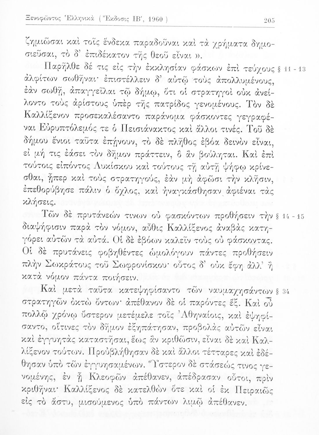 Βαθμίδα εκπαίδευσης: Δευτεροβάθμια Τάξη: Β' Γυμνασίου Μάθημα: Αρχαία Ελληνικά Γλώσσα: Καθαρεύουσα Παρουσίαση περιεχομένου: Σχολικό Εγχειρίδιο Αρχαίων Ελληνικών της Β' Γυμνασίου. Το βιβλίο αναφέρεται στο σύγγραμμα του Ξενοφώντα για την εκστρατεία του Κύρου κατά του Αρταξέρξη και κυρίως την κάθοδο ( επιστροφή) των Μυρίων. Στο δεύτερο μέρος το βιβλίο περιέχει τα “Ελληνικά” του Ξενοφώντα που αφορούν την ιστορία των τελευταίων επτά ετών του Πελοποννησιακού πολέμου και τα συμβάντα από το τέλος του Πελοποννησιακού πολέμου μέχρι τη μάχη της Μαντινείας. |