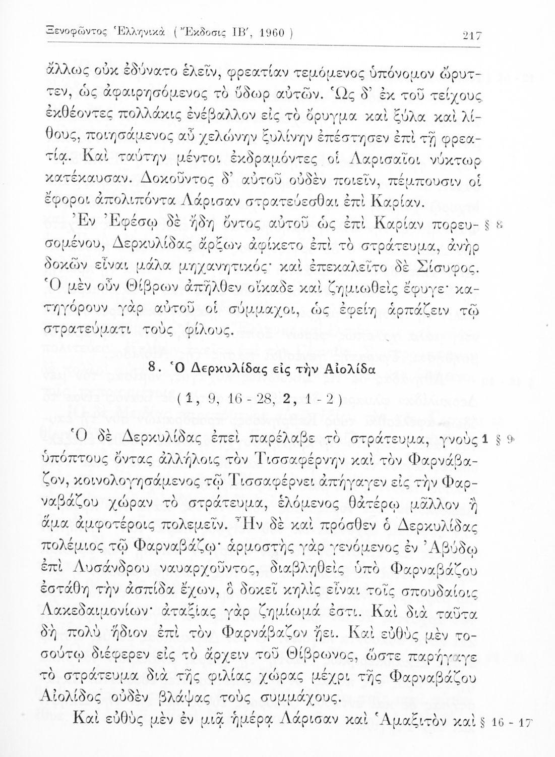 Σχολικό Εγχειρίδιο Αρχαίων Ελληνικών της Β' Γυμνασίου. Το βιβλίο αναφέρεται στο σύγγραμμα του Ξενοφώντα για την εκστρατεία του Κύρου κατά του Αρταξέρξη και κυρίως την κάθοδο ( επιστροφή) των Μυρίων. Στο δεύτερο μέρος το βιβλίο περιέχει τα “Ελληνικά” του Ξενοφώντα που αφορούν την ιστορία των τελευταίων επτά ετών του Πελοποννησιακού πολέμου και τα συμβάντα από το τέλος του Πελοποννησιακού πολέμου μέχρι τη μάχη της Μαντινείας.