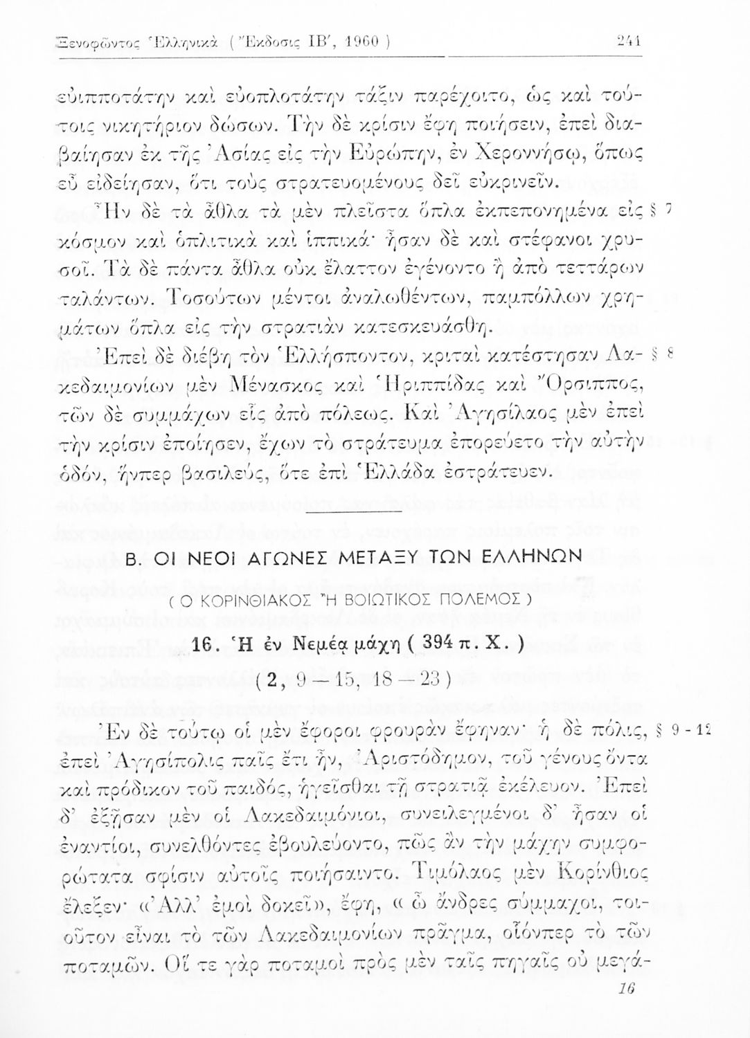 Σχολικό εγχειρίδιο Αρχαίων Ελληνικών Β΄ Γυμνασίου που περιλαμβάνει εισαγωγή στα Ελληνικά του Ξενοφώντα, το 3ο και το 4ο βιβλίο από τα Ελληνικά, ερμηνευτικές σημειώσεις και χωρογραφικό πίνακα της περιοχής.