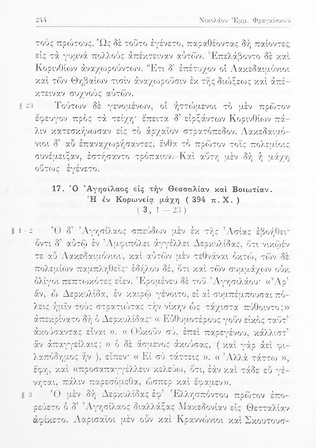 Ξενοφών, Νικόλαος Εμμ. Φραγκίσκος (σχόλια)