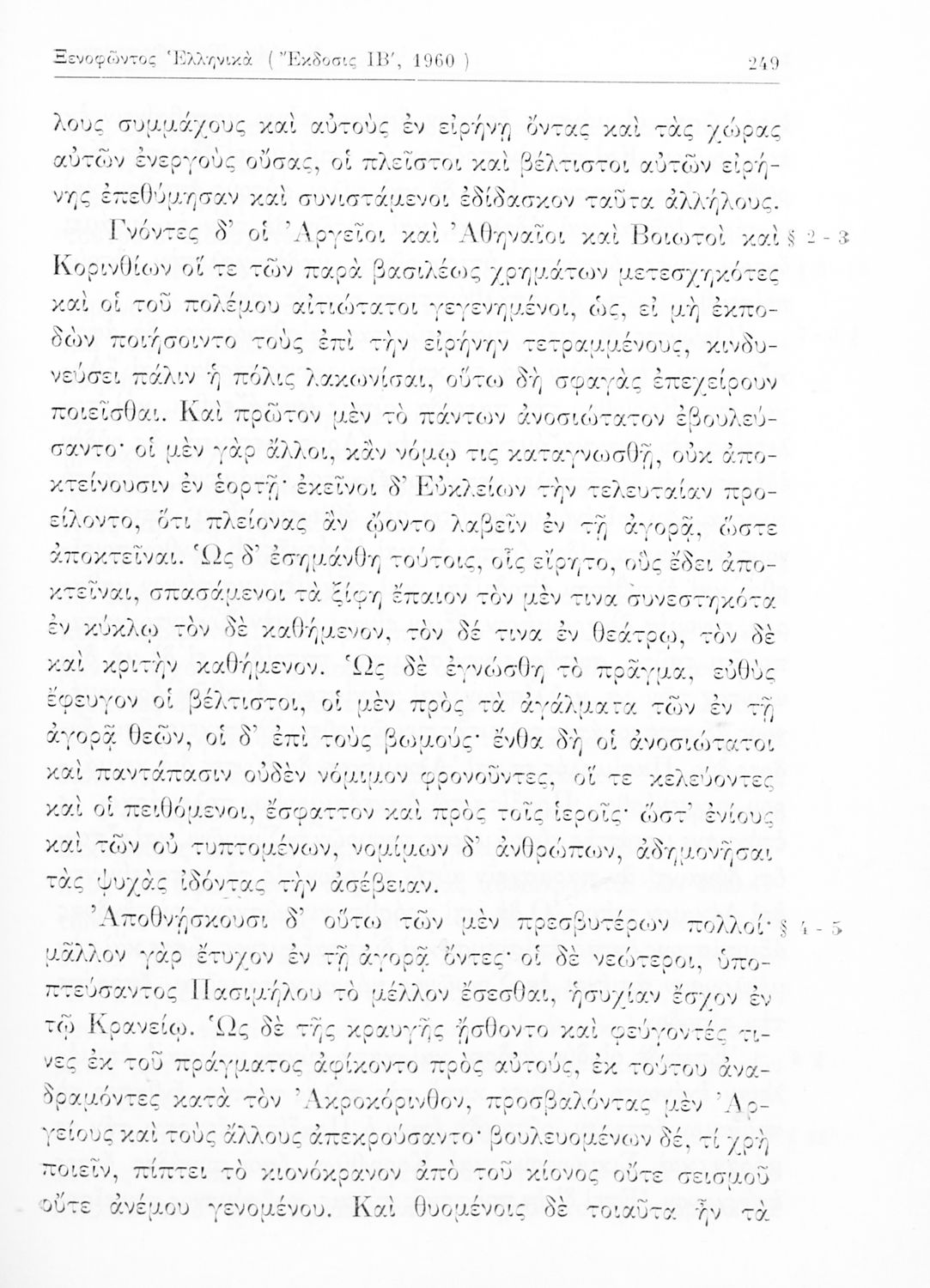 Σχολικό εγχειρίδιο Αρχαίων Ελληνικών Δ΄ Γυμνασίου που περιλαμβάνει αποσπάσματα από το έργο του Ξενοφώντα Ελληνικά, γραμματικές και συντακτικές παρατηρήσεις και ερμηνευτικά και πραγματολογικά σχόλια.