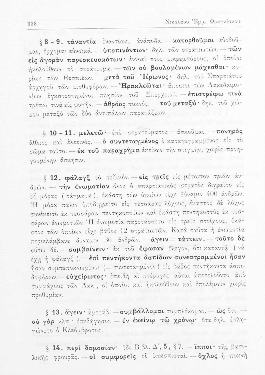 Ξενοφών, Νικόλαος Εμμ. Φραγκίσκος (σχόλια)