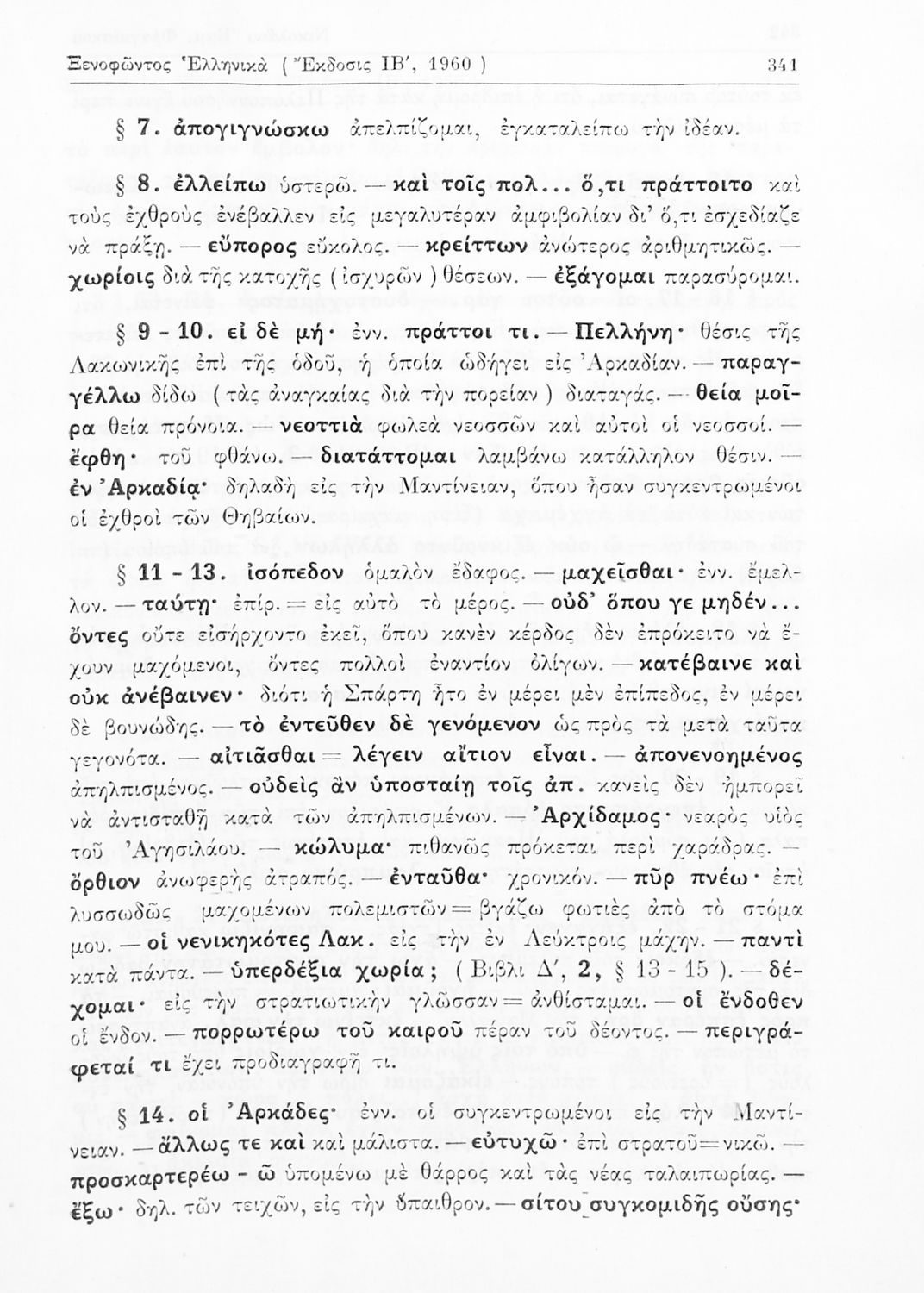 Σχολικό εγχειρίδιο Αρχαίων Ελληνικών Δ΄ Γυμνασίου που περιλαμβάνει αποσπάσματα από το έργο του Ξενοφώντα Ελληνικά, γραμματικές και συντακτικές παρατηρήσεις και ερμηνευτικά και πραγματολογικά σχόλια.