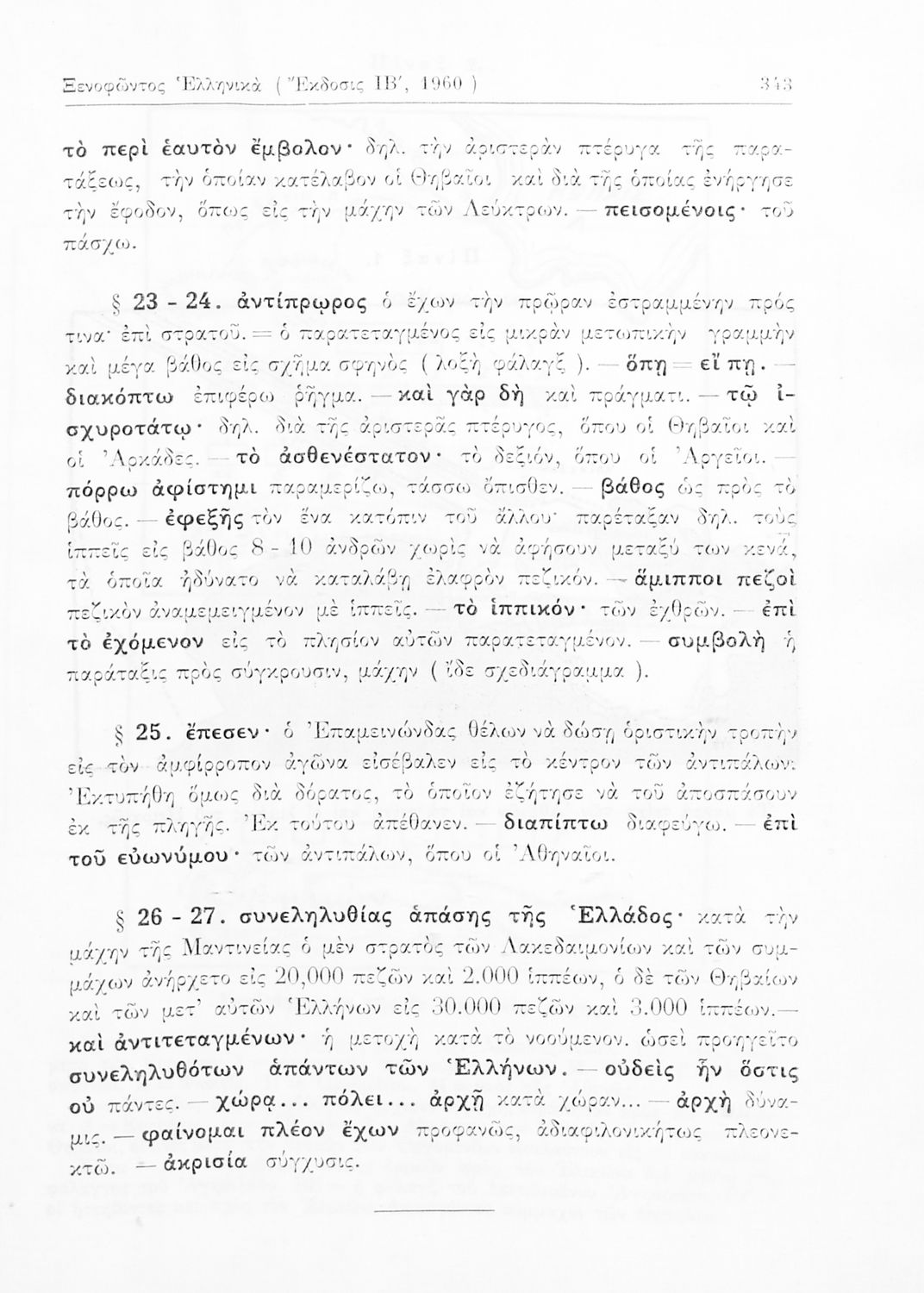 Σχολικό εγχειρίδιο Αρχαίων Ελληνικών Β΄ Γυμνασίου που περιλαμβάνει εισαγωγή στα Ελληνικά του Ξενοφώντα, το 3ο και το 4ο βιβλίο από τα Ελληνικά, ερμηνευτικές σημειώσεις και χωρογραφικό πίνακα της περιοχής.