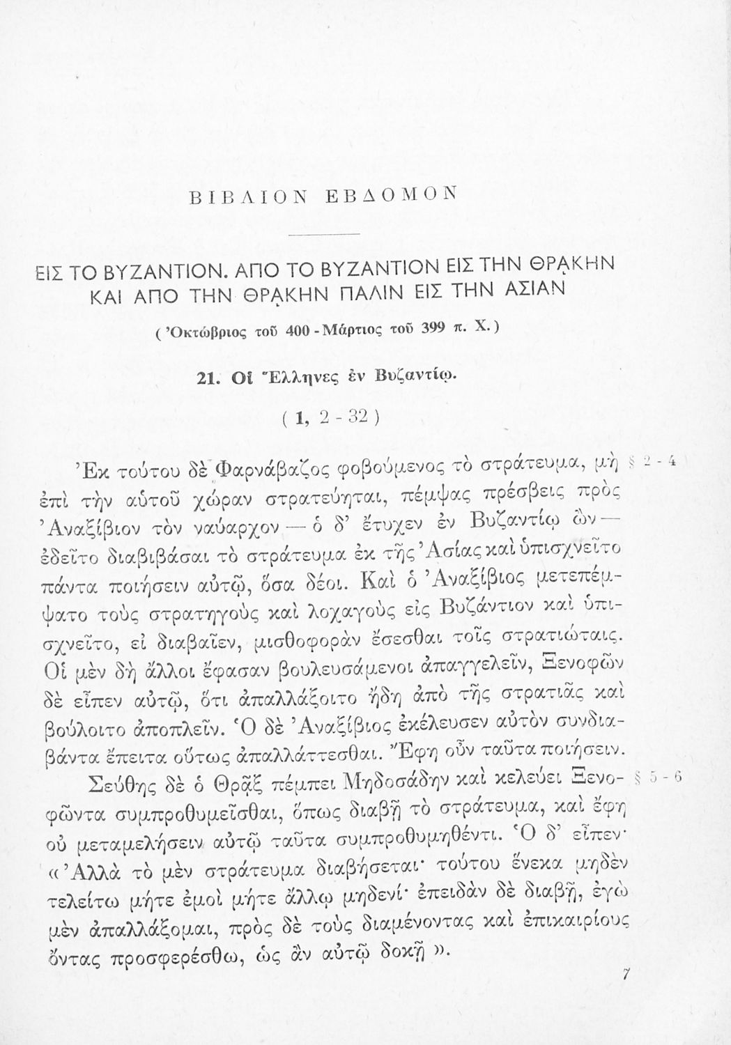 Ξενοφώντος Κύρου Ανάβασις (Εκλογαί), δια την Β΄ τάξιν των εξατάξιων Γυμνασίων