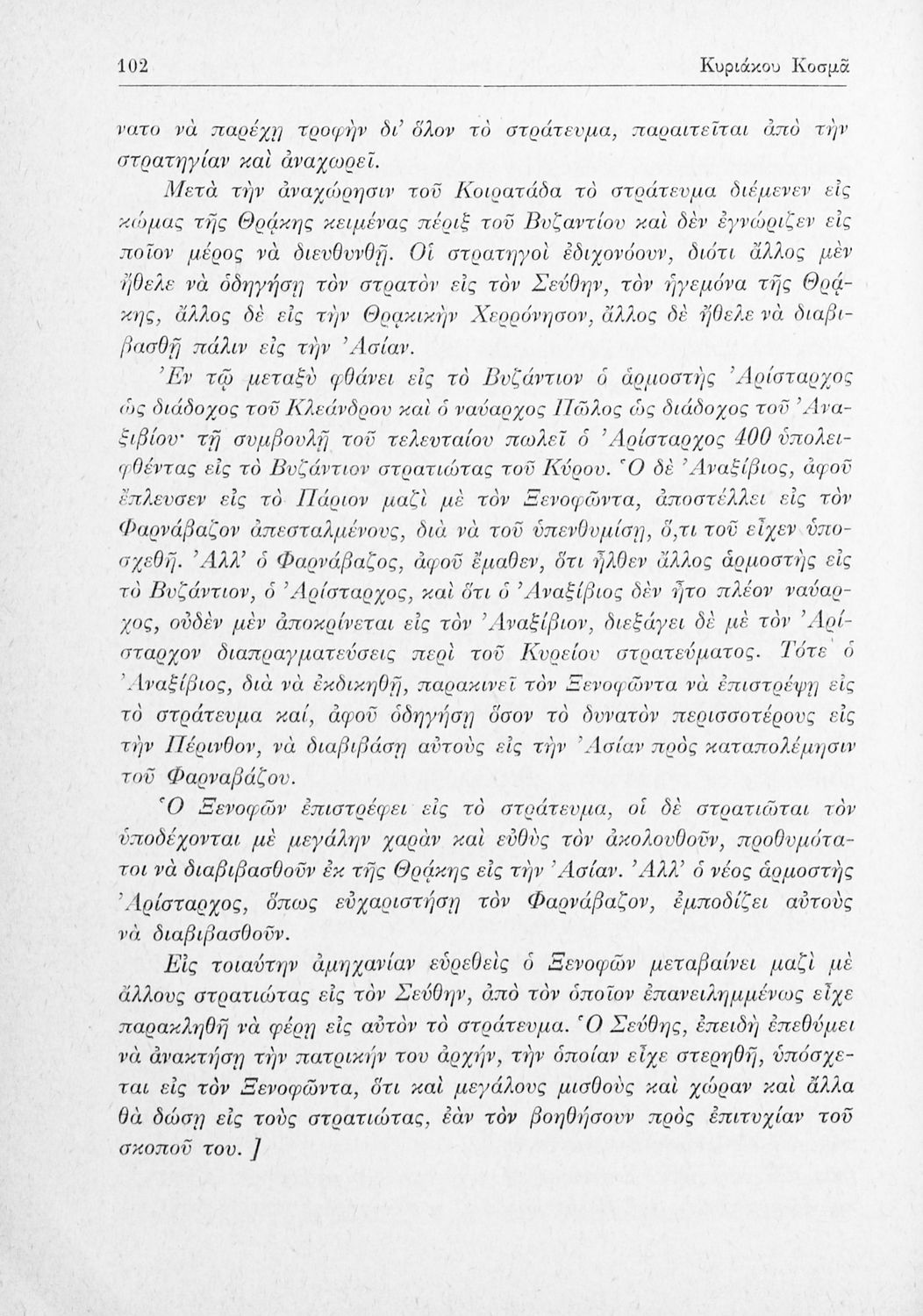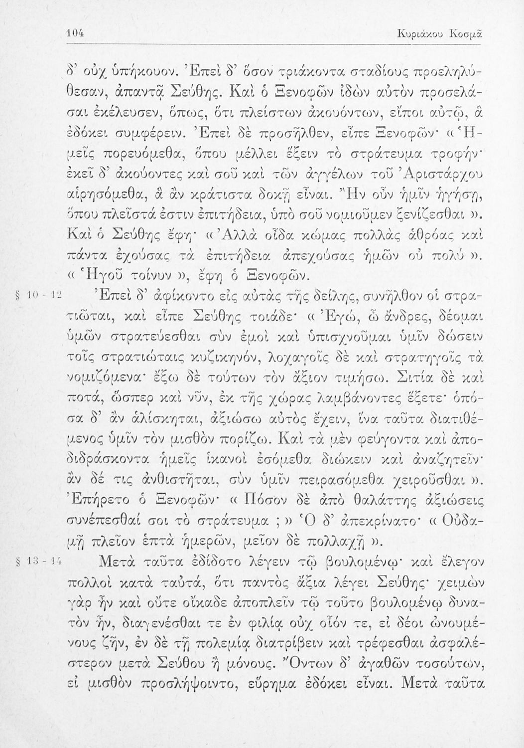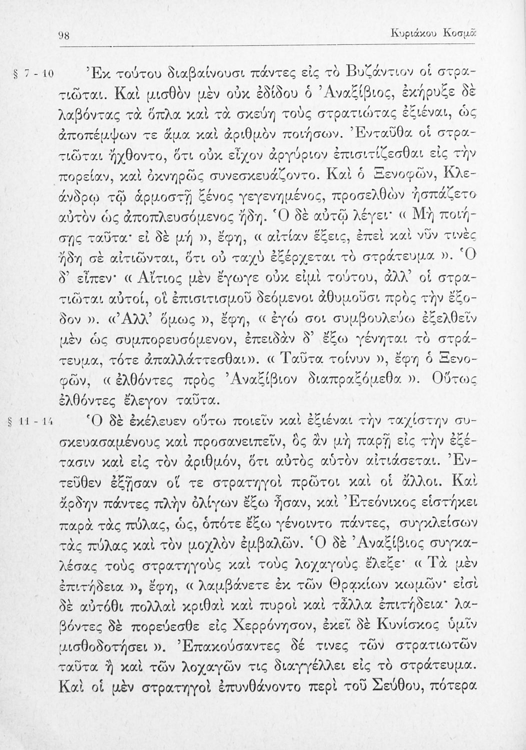Ξενοφών, Κυριάκος Κοσμάς (σχόλια)
