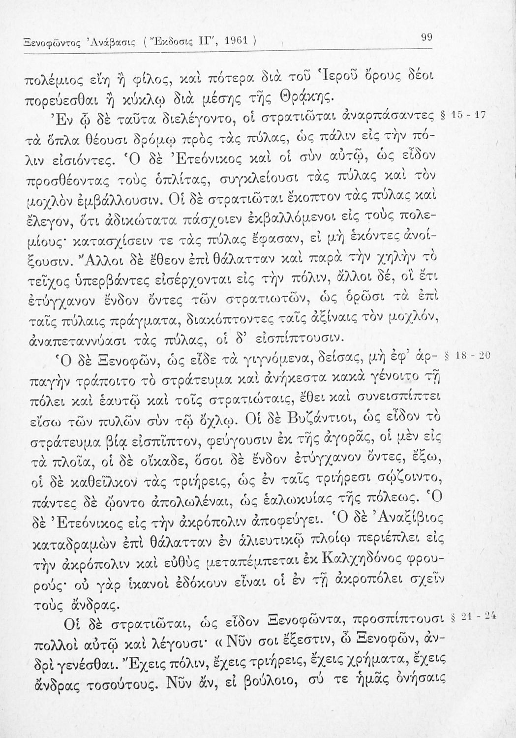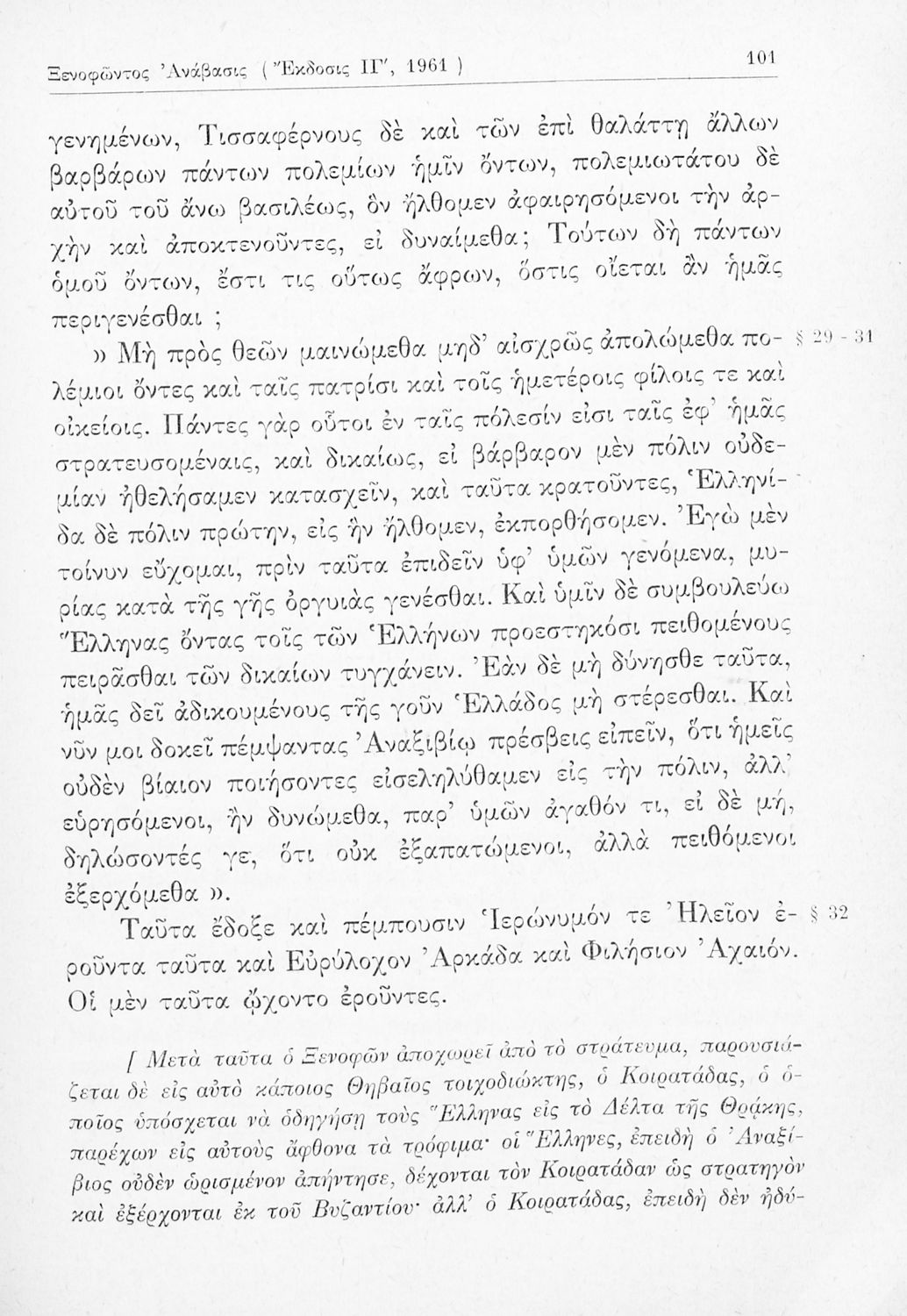 Ξενοφών, Νικόλαος Ι. Ζαφειρίου (σχόλια)
