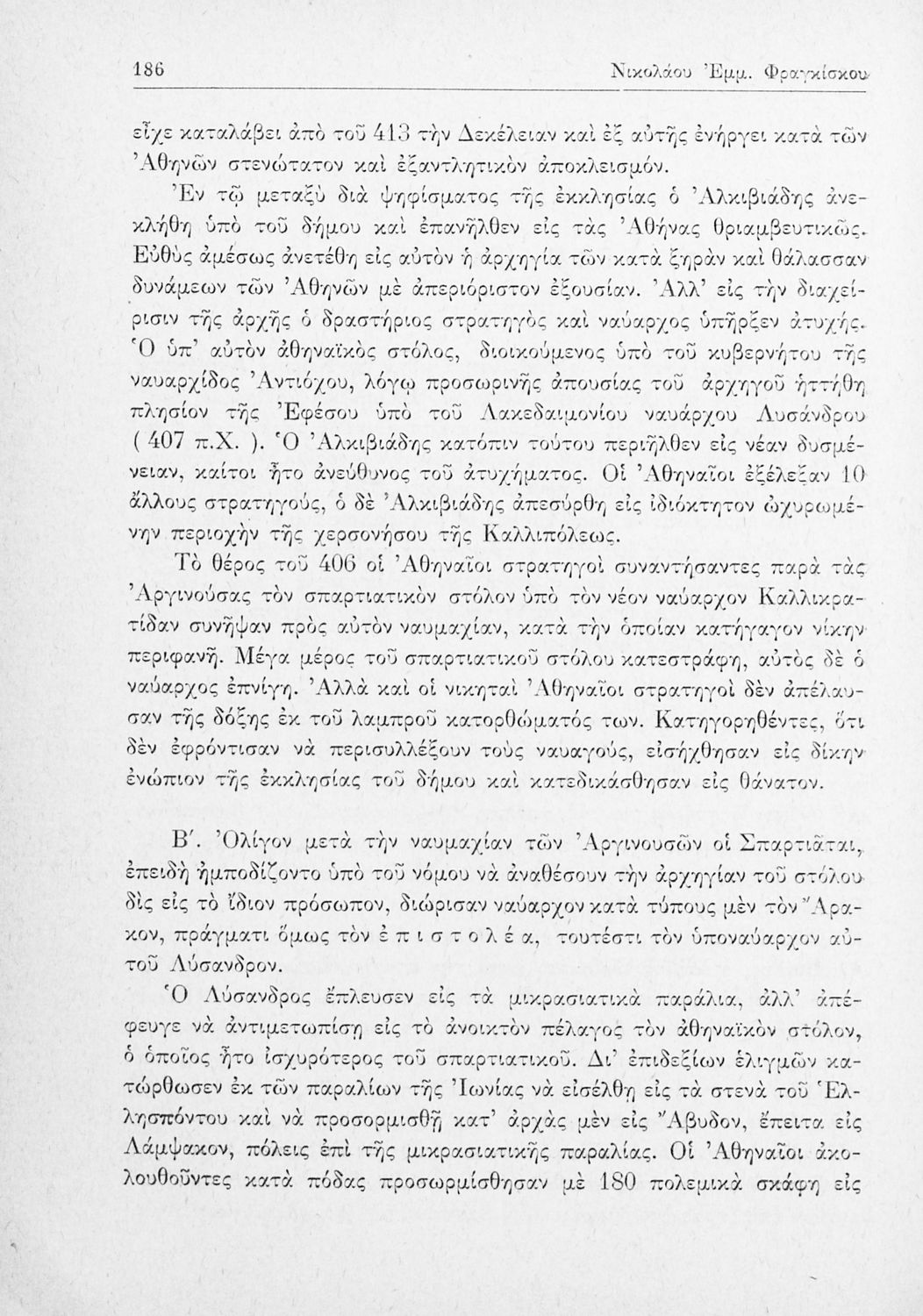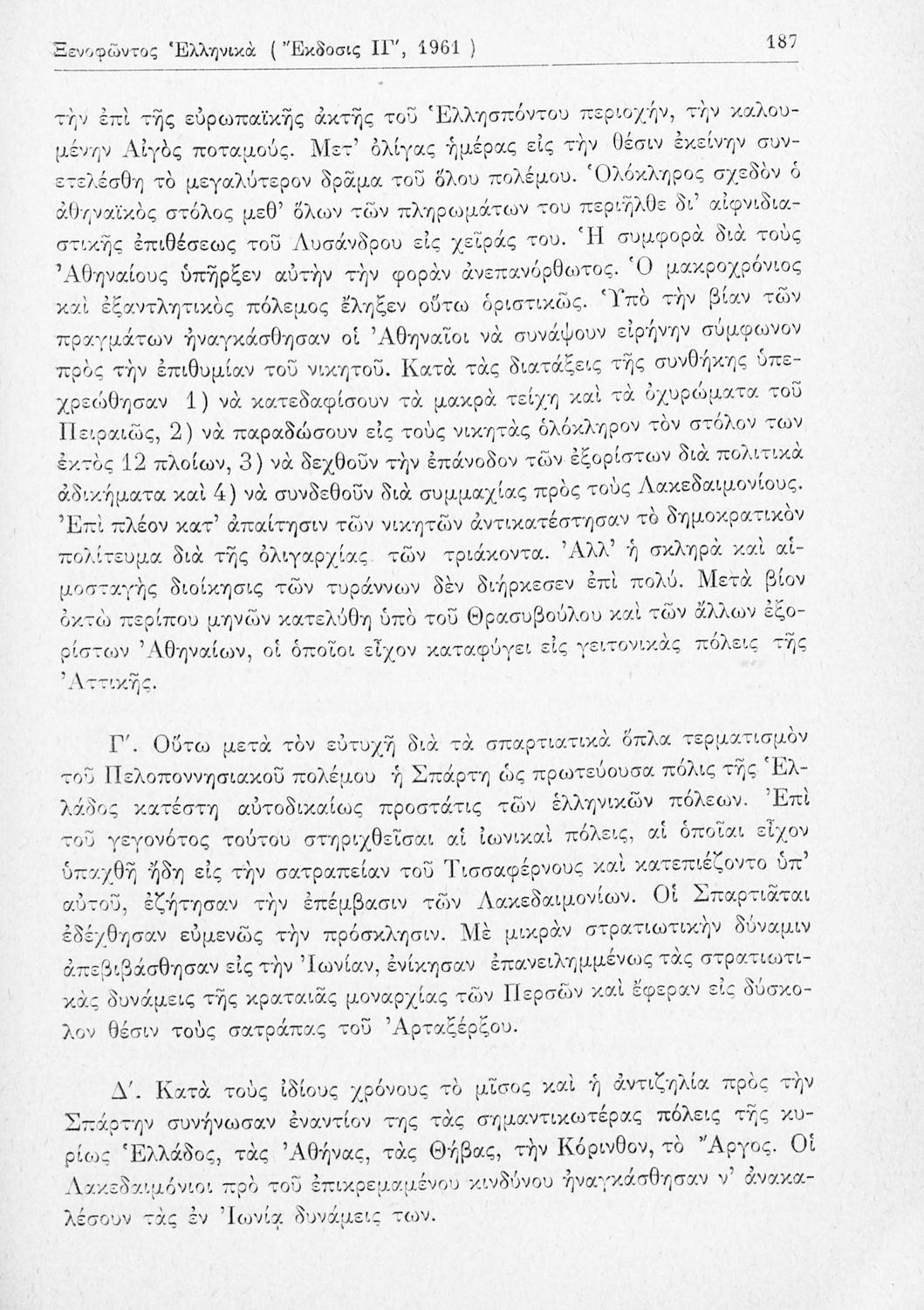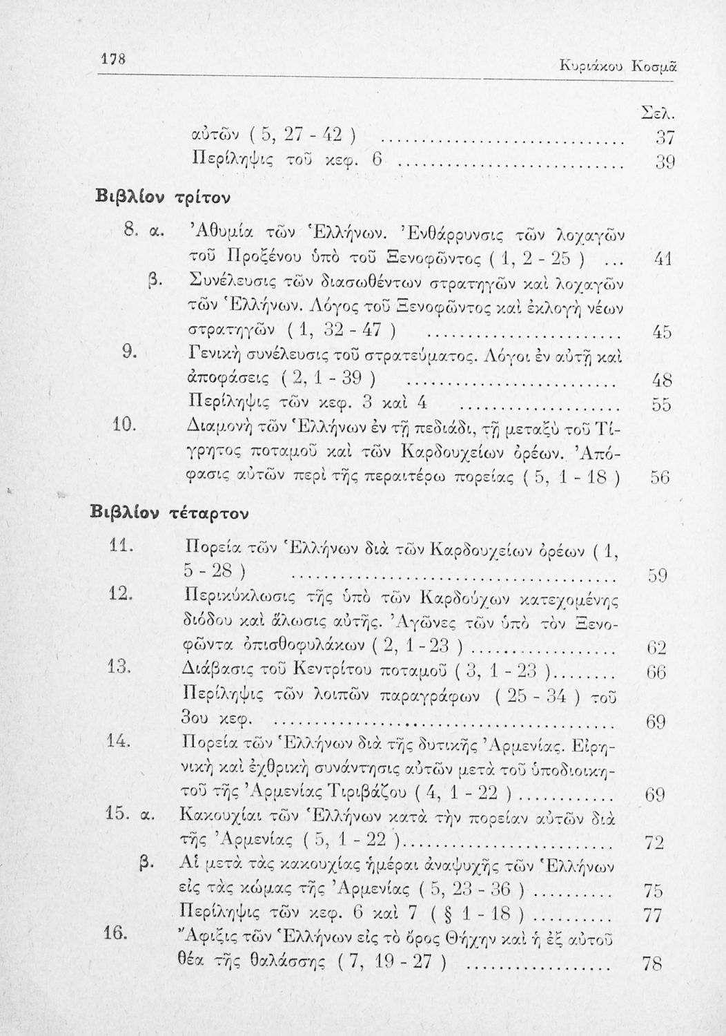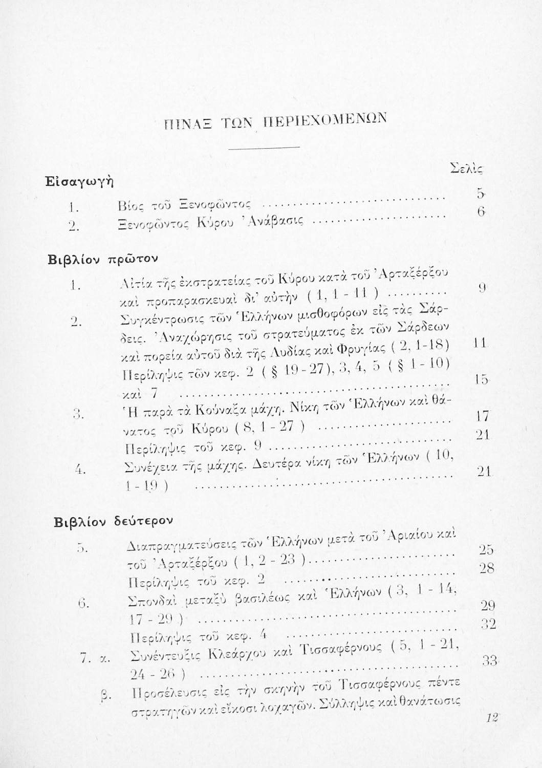 Σχολικό εγχειρίδιο Αρχαίων Ελληνικών της Β΄ Γυμνασίου. Παρουσιάζεται η εκστρατεία του Κύρου κατά του Αρταξέρξη και η κάθοδος των Μυρίων. Το δεύτερο μέρος το βιβλίο περιέχει τα “Ελληνικά” του Ξενοφώντα όπου εξιστορείται η ιστορία των τελευταίων επτά ετών του Πελοποννησιακού πολέμου και τα συμβάντα από το τέλος του Πελοποννησιακού πολέμου μέχρι τη μάχη της Μαντινείας.
