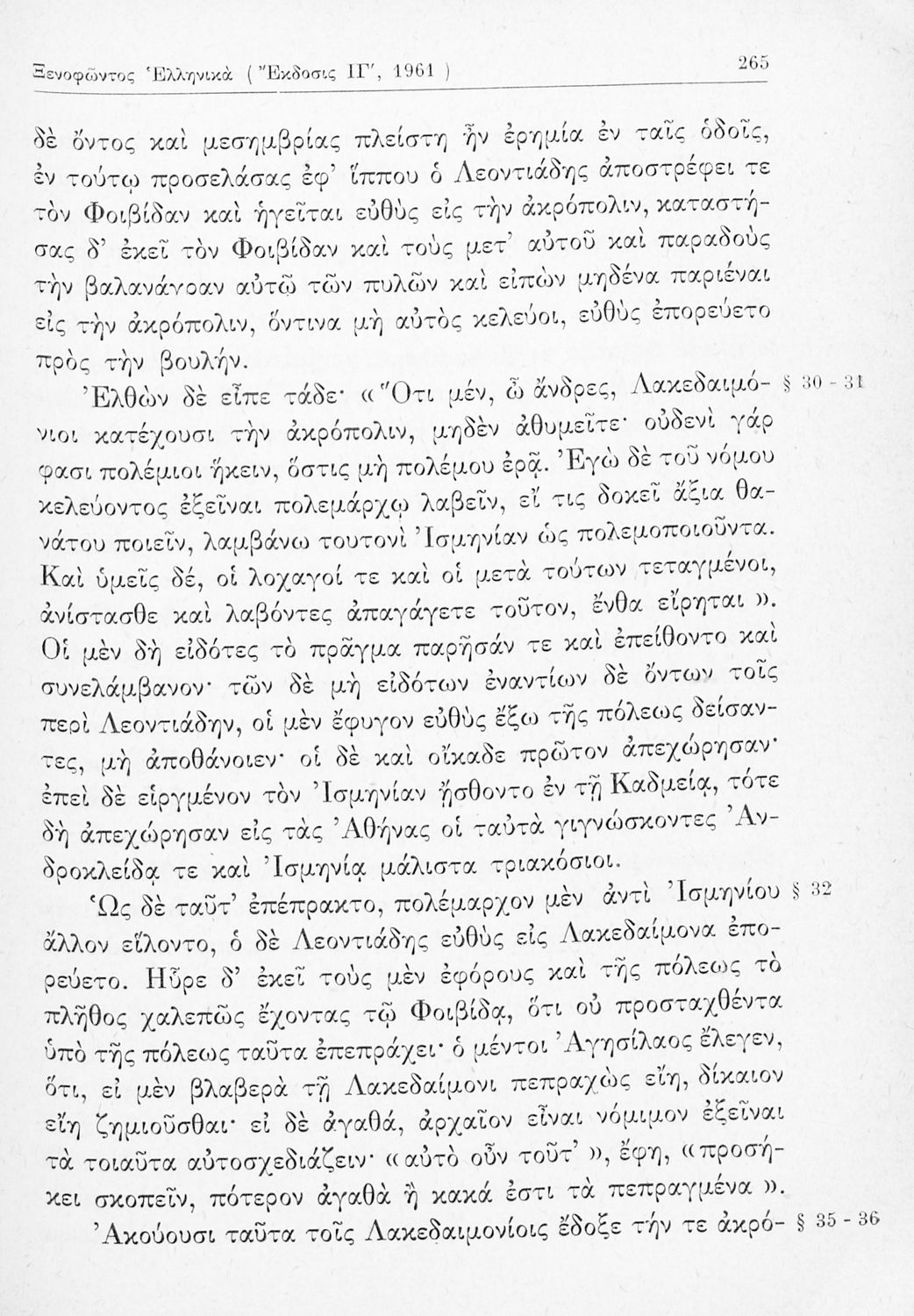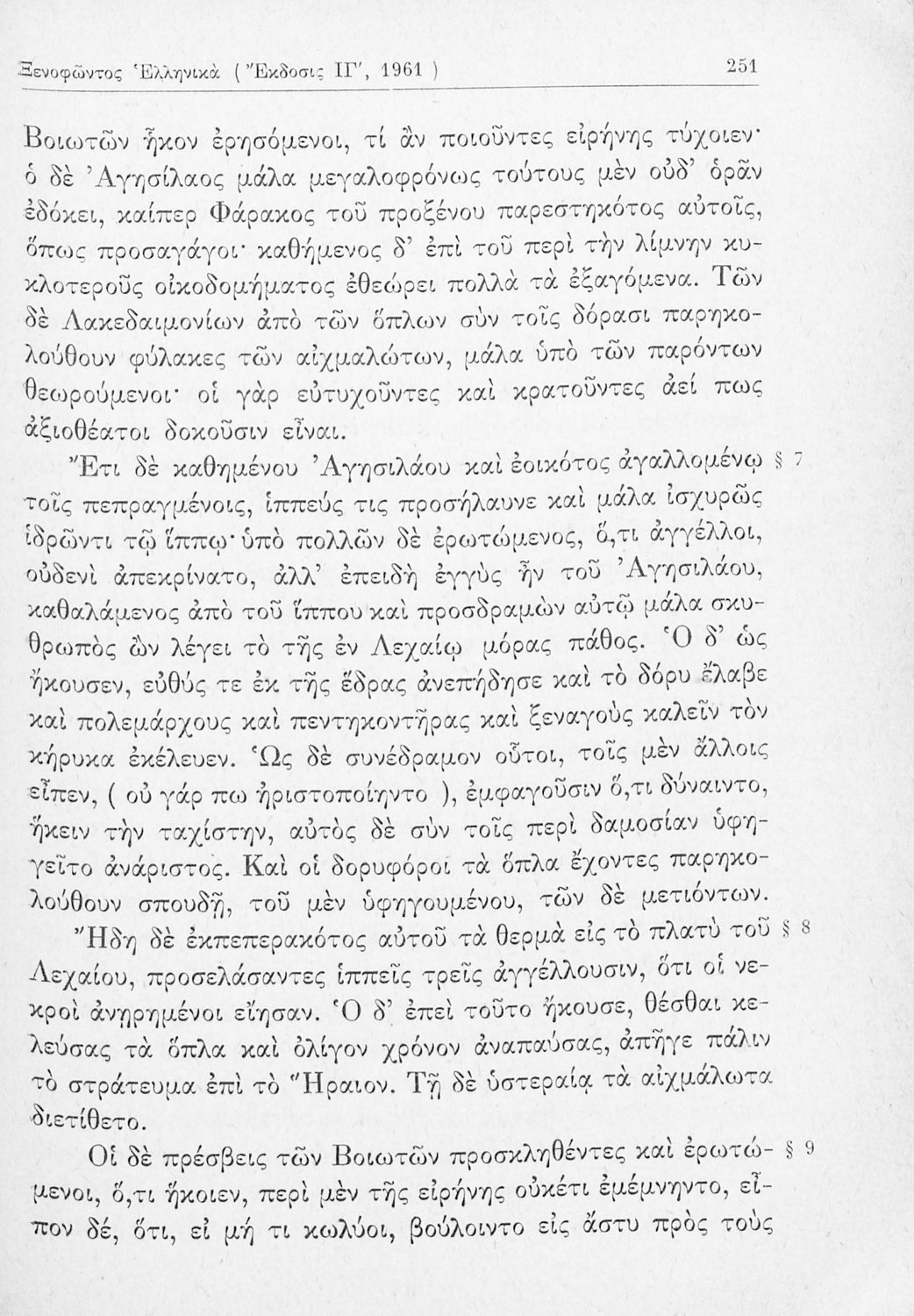 Σχολικό εγχειρίδιο Αρχαίων Ελληνικών Β΄ Γυμνασίου που περιλαμβάνει εισαγωγή στα Ελληνικά του Ξενοφώντα, το 3ο και το 4ο βιβλίο από τα Ελληνικά, ερμηνευτικές σημειώσεις και χωρογραφικό πίνακα της περιοχής.