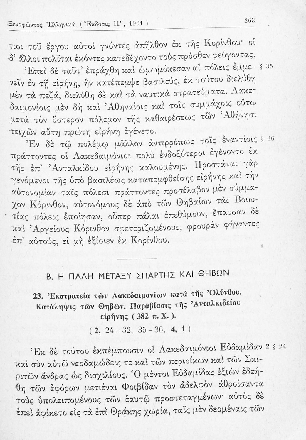 Σχολικό εγχειρίδιο Αρχαίων Ελληνικών της Β΄ Γυμνασίου. Παρουσιάζεται η εκστρατεία του Κύρου κατά του Αρταξέρξη και η κάθοδος των Μυρίων. Το δεύτερο μέρος το βιβλίο περιέχει τα “Ελληνικά” του Ξενοφώντα όπου εξιστορείται η ιστορία των τελευταίων επτά ετών του Πελοποννησιακού πολέμου και τα συμβάντα από το τέλος του Πελοποννησιακού πολέμου μέχρι τη μάχη της Μαντινείας.