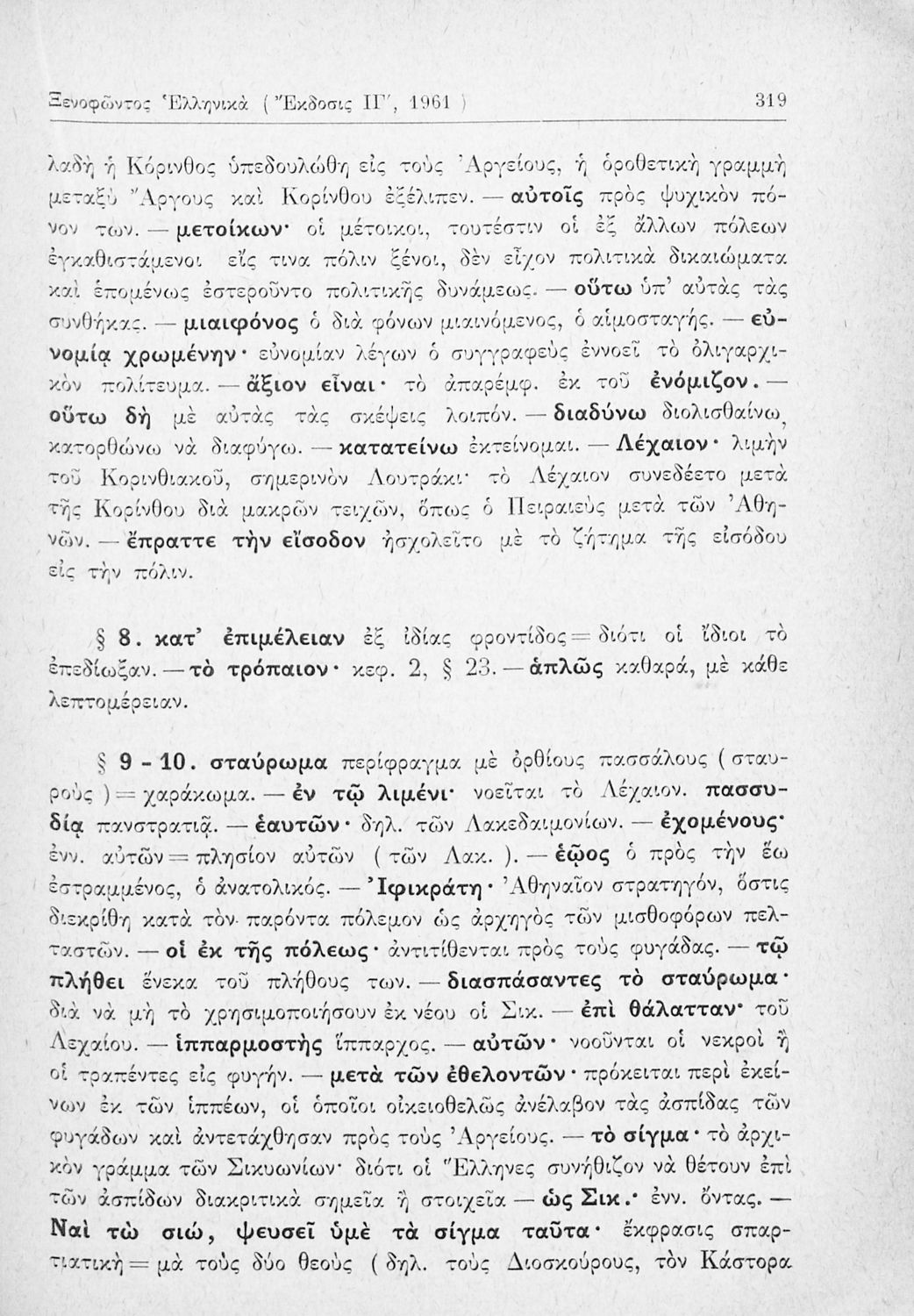 Ξενοφών, Χ. Παπαναστασίου, Γ. Σουμελίδης (σχόλια)