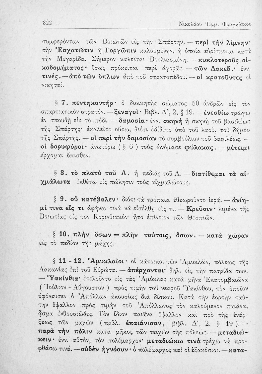 Ξενοφών, Κυριάκος Κοσμάς, Ν. Φραγκίσκος (σχόλια)
