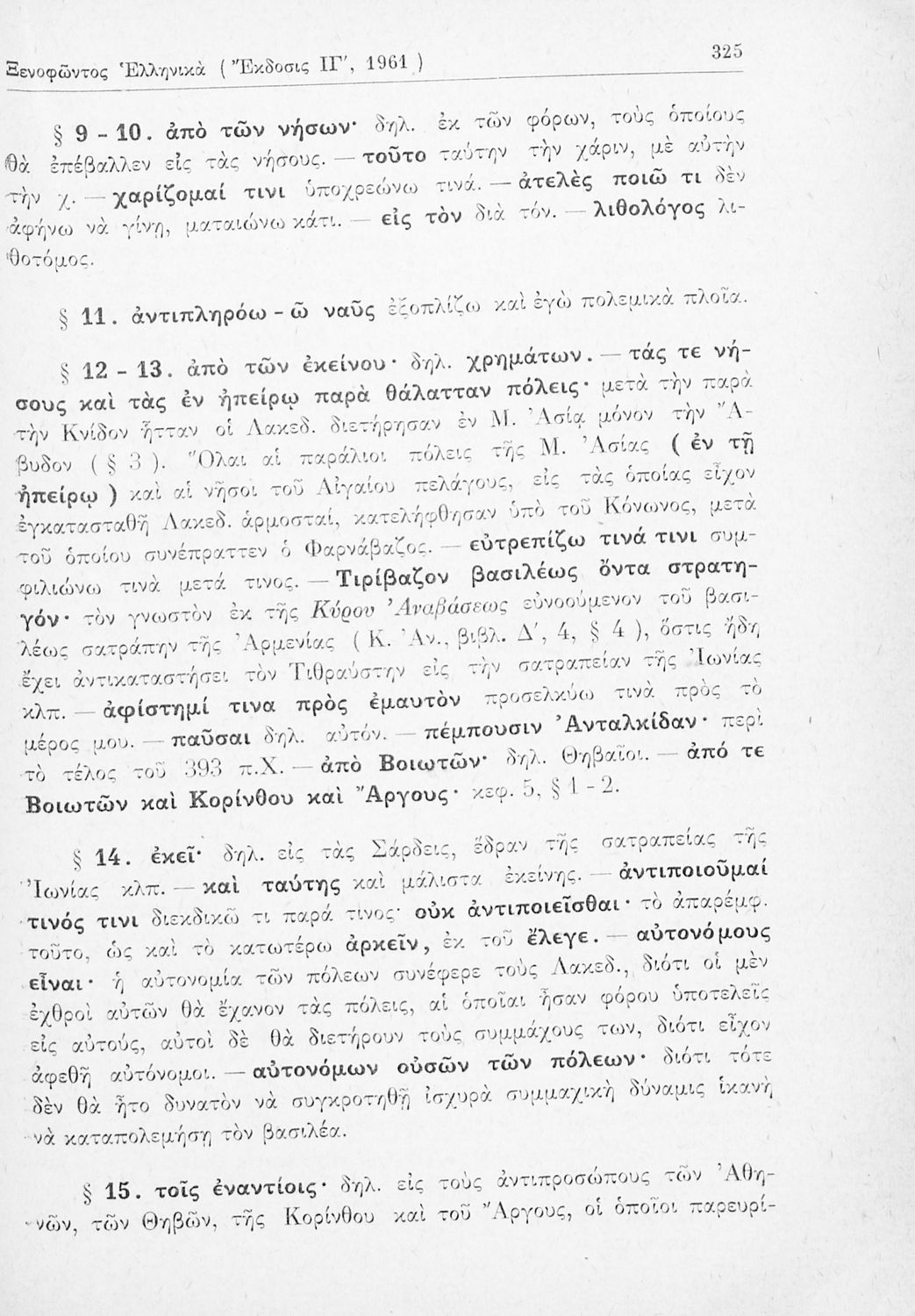 Σχολικό εγχειρίδιο Αρχαίων Ελληνικών της Β΄ Γυμνασίου. Παρουσιάζεται η εκστρατεία του Κύρου κατά του Αρταξέρξη και η κάθοδος των Μυρίων. Το δεύτερο μέρος το βιβλίο περιέχει τα “Ελληνικά” του Ξενοφώντα όπου εξιστορείται η ιστορία των τελευταίων επτά ετών του Πελοποννησιακού πολέμου και τα συμβάντα από το τέλος του Πελοποννησιακού πολέμου μέχρι τη μάχη της Μαντινείας.