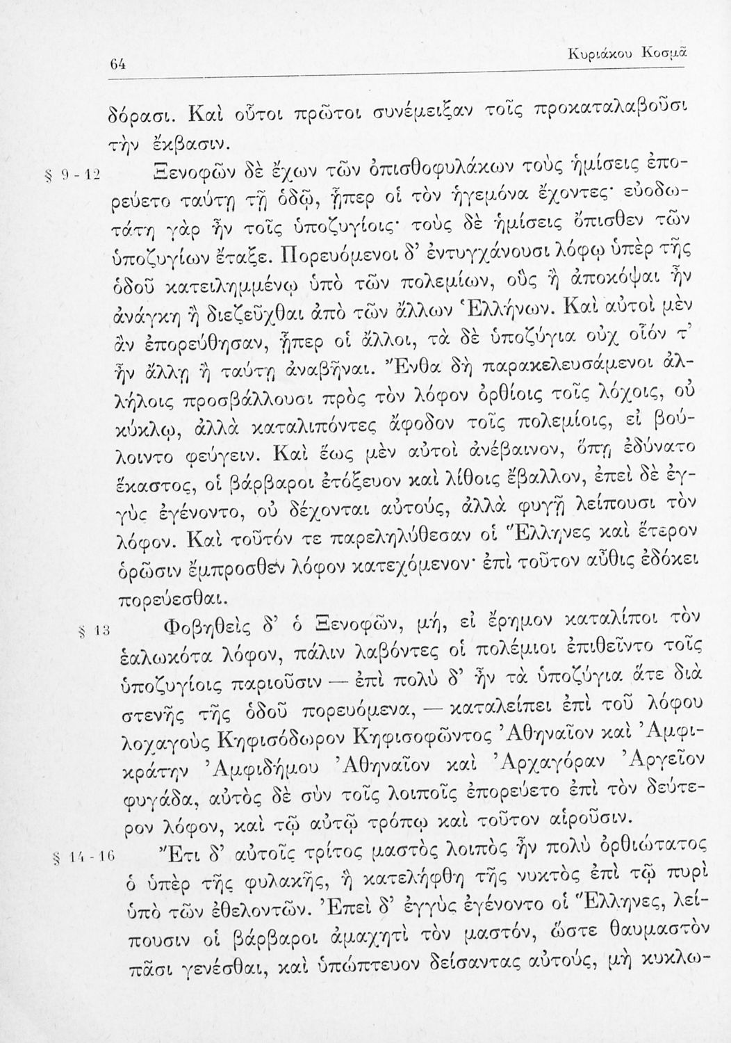 Ξενοφών, Κυριάκος Κοσμάς (σχόλια)