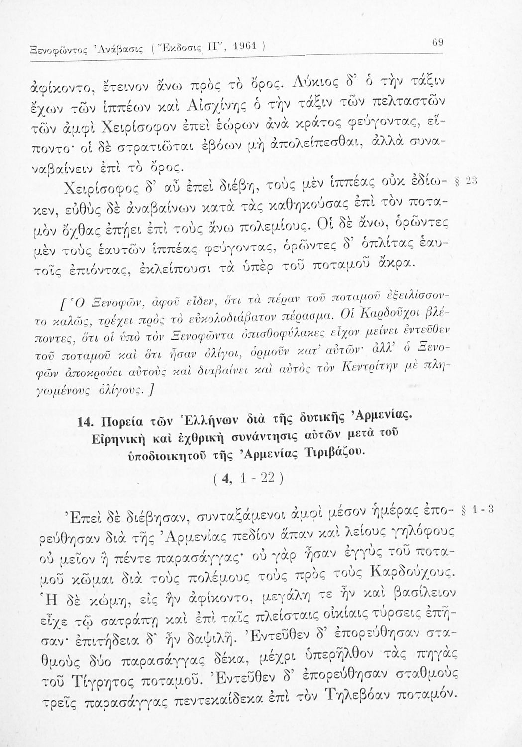 Ξενοφώντος Κύρου Ανάβασις (Εκλογαί), δια την Β΄ τάξιν των εξατάξιων Γυμνασίων