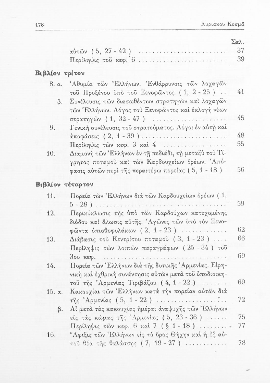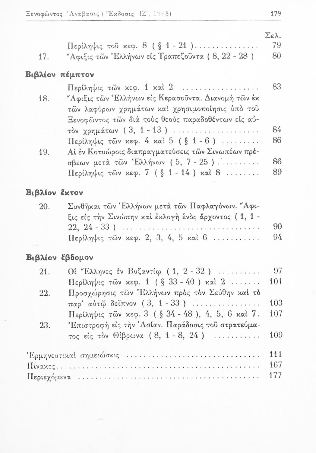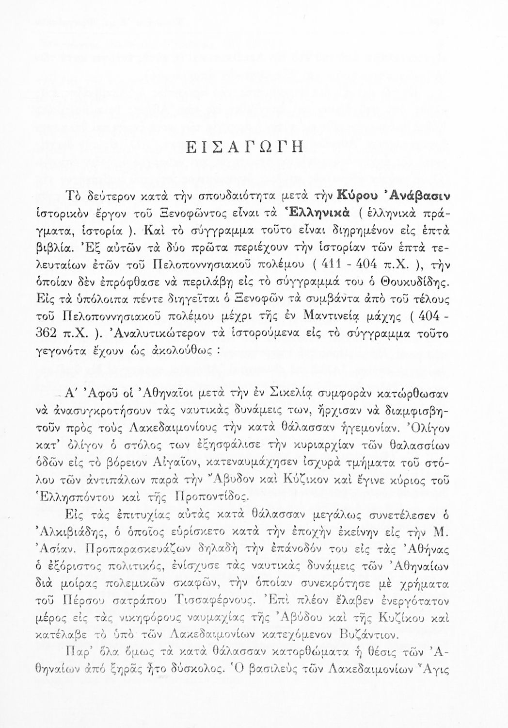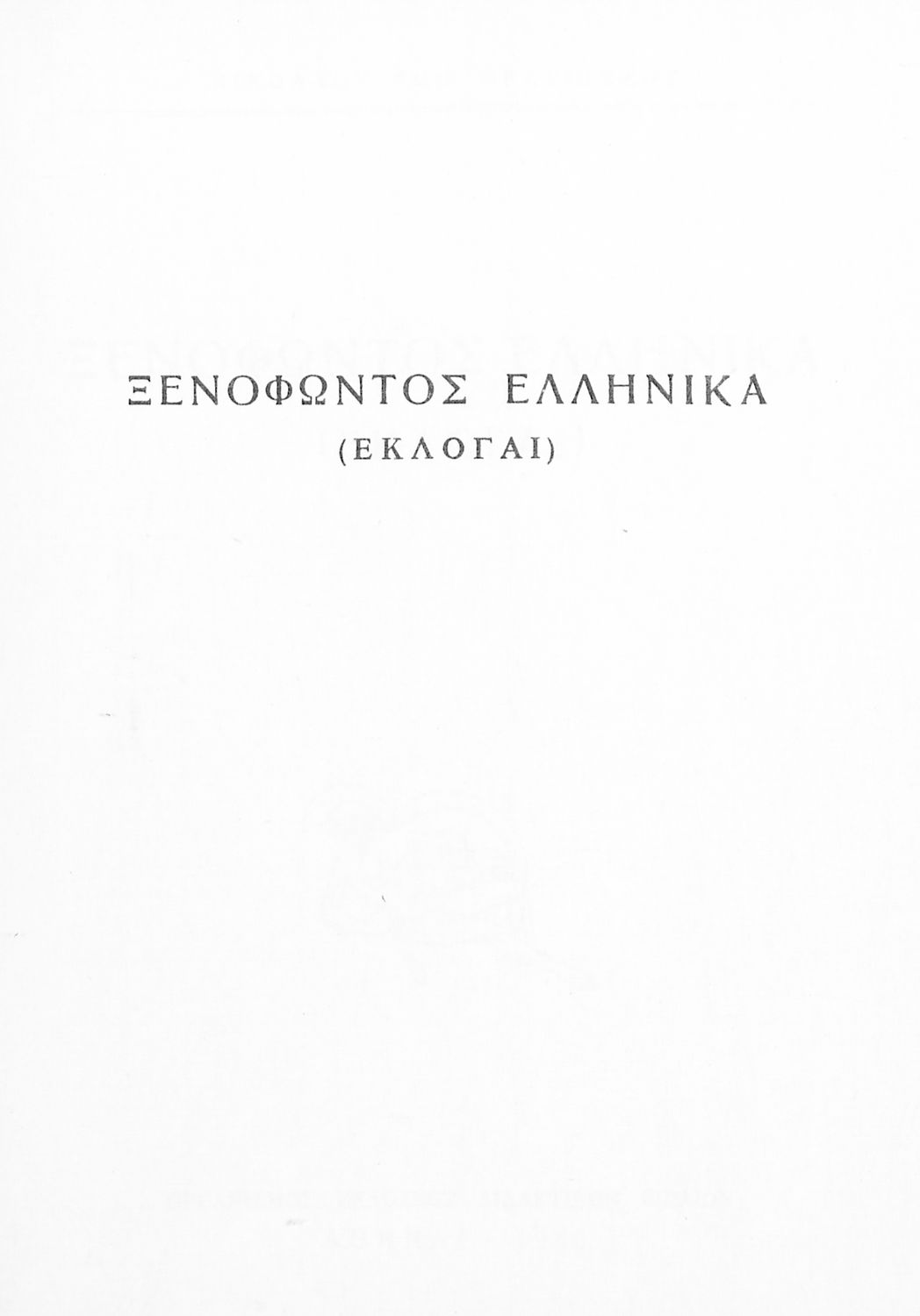 Σχολικό εγχειρίδιο Αρχαίων Ελληνικών του Γυμνασίου. Το βιβλίο αναφέρεται στην ιστορική συγγραφή του Ξενοφώντα για την εκστρατεία του Κύρου κατά του Αρταξέρξη και την κάθοδο των Μυρίων. Στο δεύτερο μέρος το βιβλίο περιέχει τα “Ελληνικά” του Ξενοφώντα που αφορούν την ιστορία των τελευταίων επτά ετών του Πελοποννησιακού πολέμου και τα συμβάντα από το τέλος του Πελοποννησιακού πολέμου μέχρι τη μάχη της Μαντινείας.