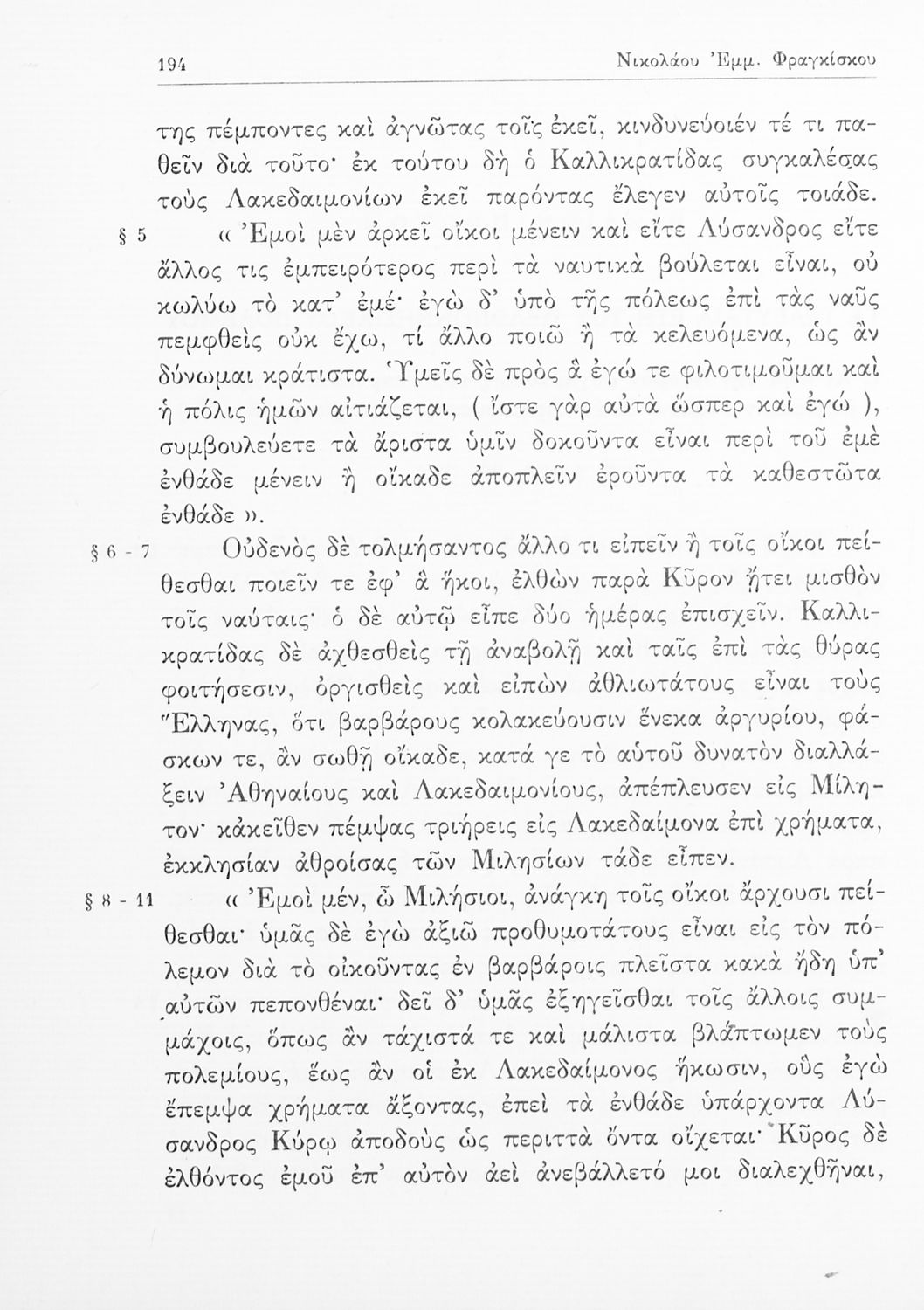Ξενοφών, Κυριάκος Κοσμάς, Νικόλαος Φραγκίσκος (σχόλια)