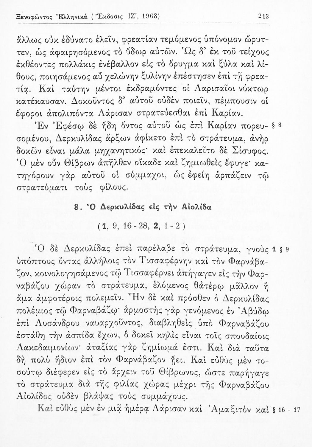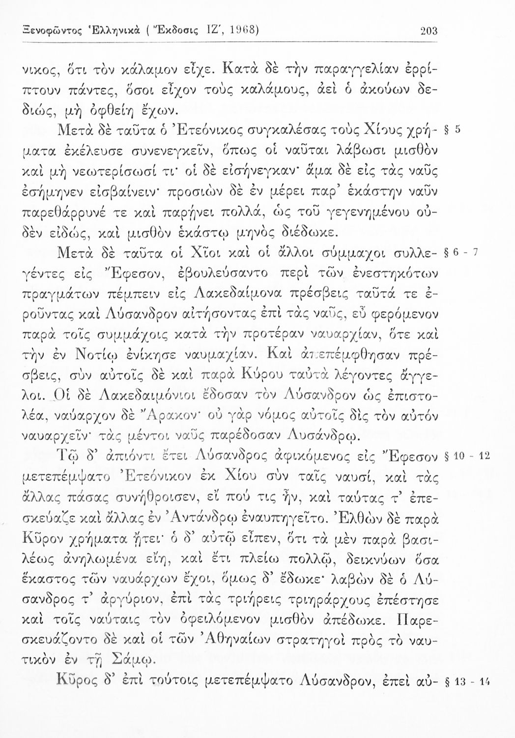 Ξενοφών, Νικόλαος Ι. Ζαφειρίου (σχόλια)