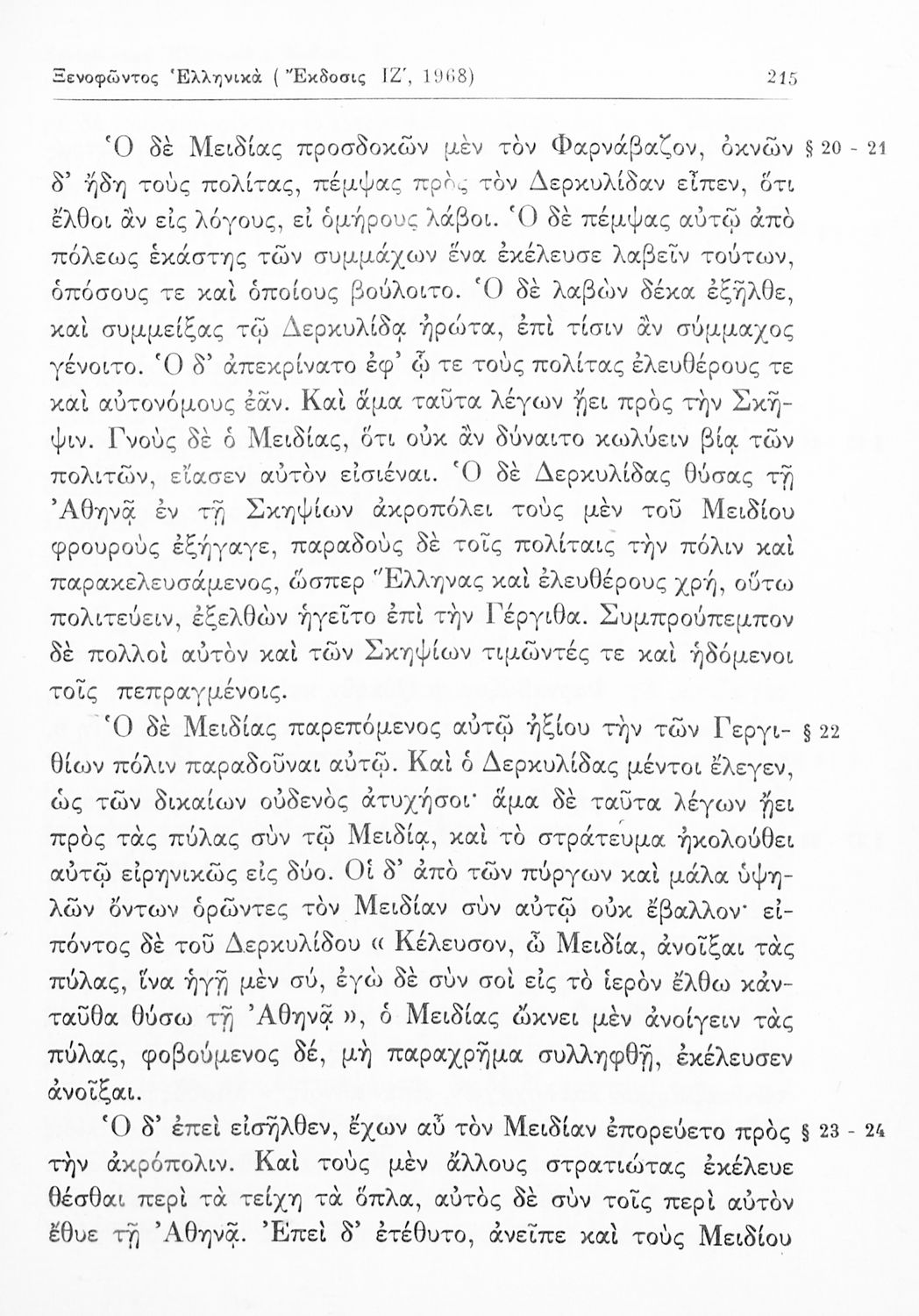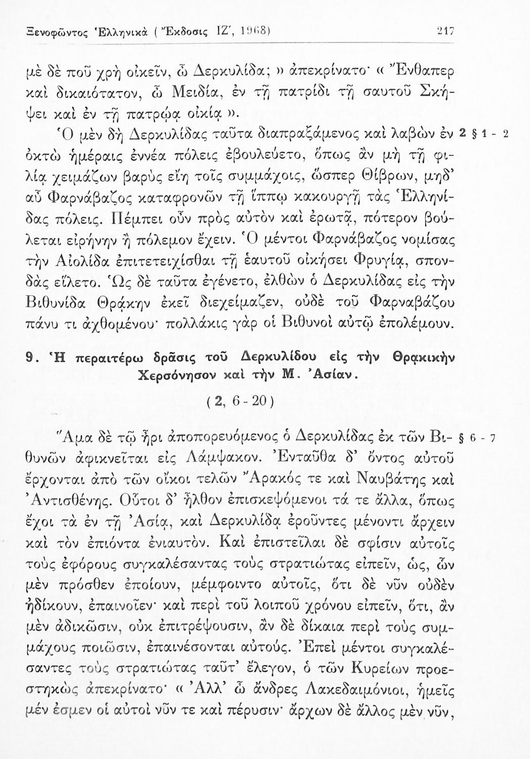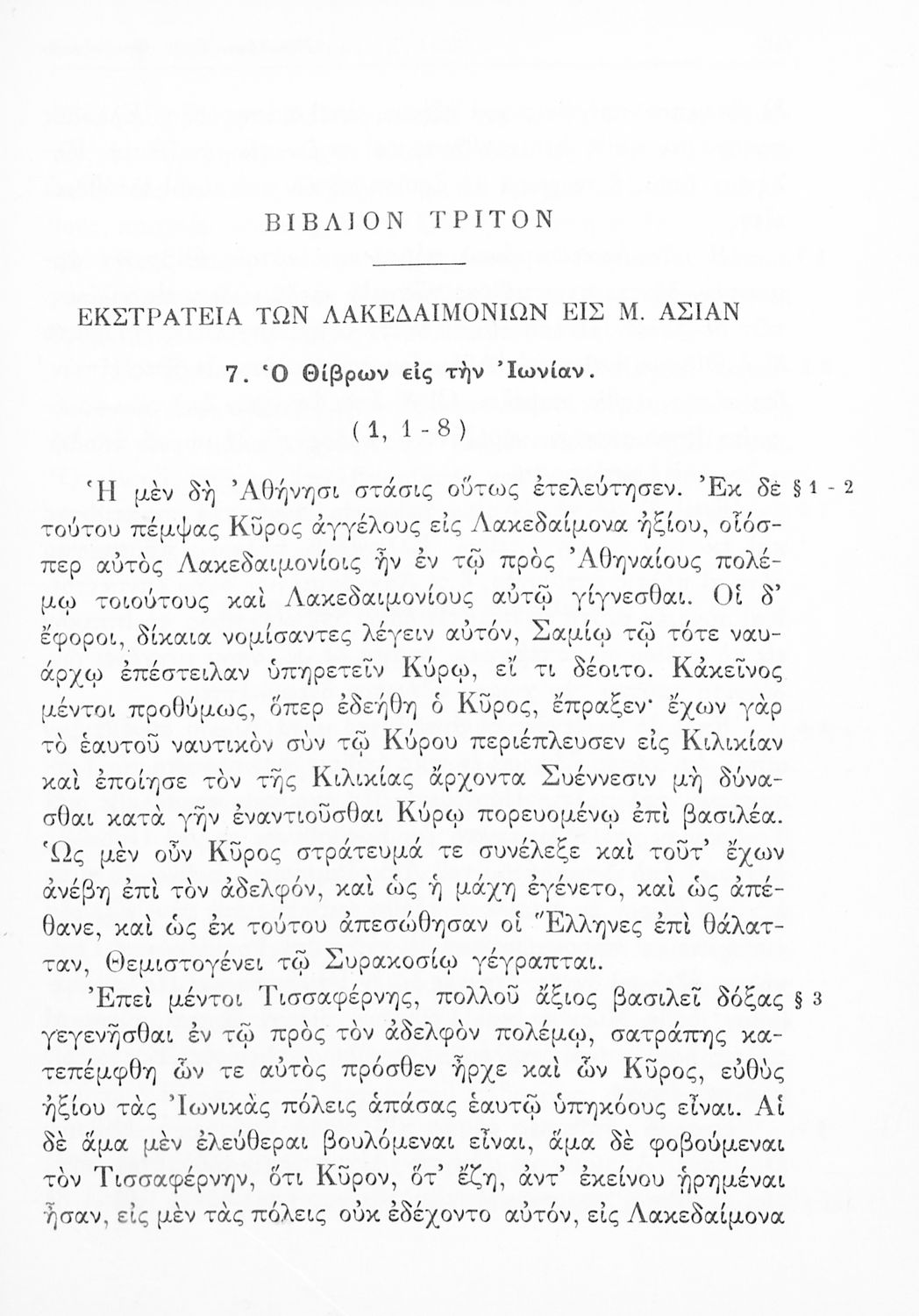 Σχολικό εγχειρίδιο Αρχαίων Ελληνικών του Γυμνασίου. Το βιβλίο αναφέρεται στην ιστορική συγγραφή του Ξενοφώντα για την εκστρατεία του Κύρου κατά του Αρταξέρξη και την κάθοδο των Μυρίων. Στο δεύτερο μέρος το βιβλίο περιέχει τα “Ελληνικά” του Ξενοφώντα που αφορούν την ιστορία των τελευταίων επτά ετών του Πελοποννησιακού πολέμου και τα συμβάντα από το τέλος του Πελοποννησιακού πολέμου μέχρι τη μάχη της Μαντινείας.