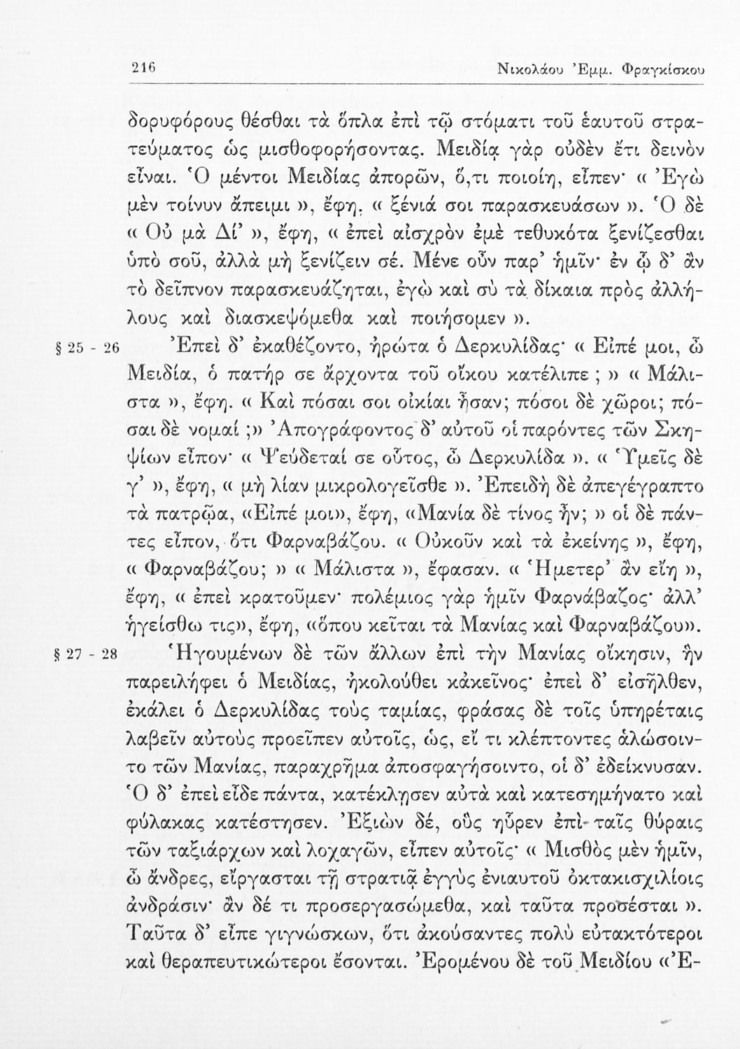Ξενοφών, Κυριάκος Κοσμάς, Νικόλαος Φραγκίσκος (σχόλια)