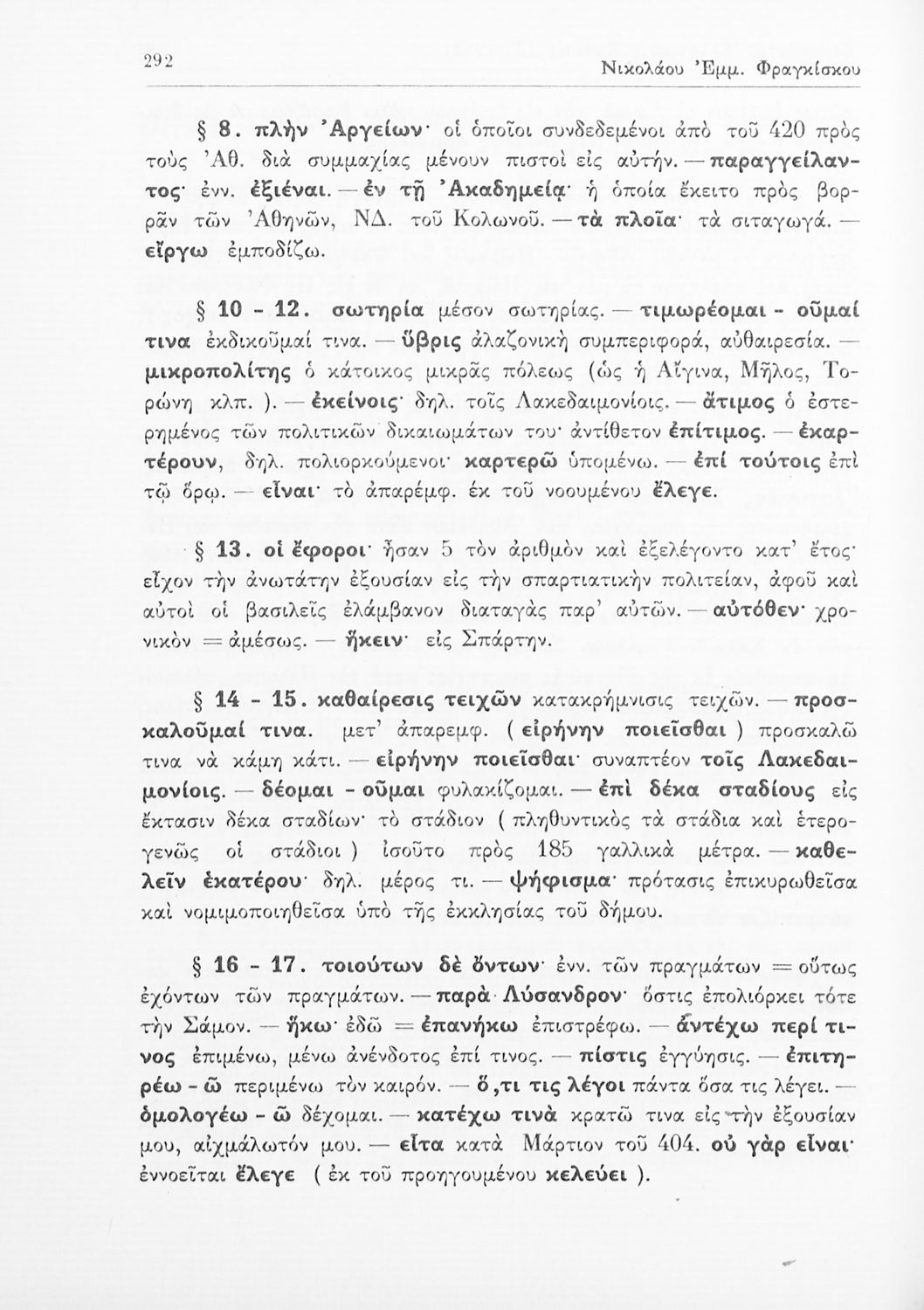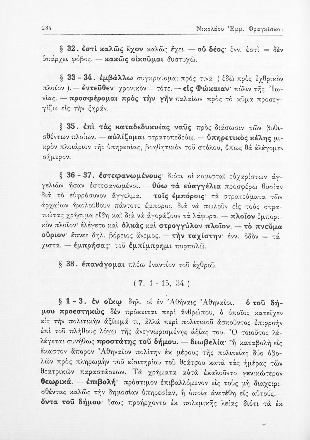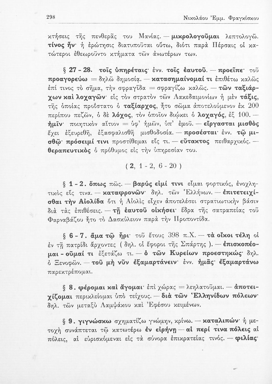 Ξενοφών, Κυριάκος Κοσμάς, Νικόλαος Φραγκίσκος (σχόλια)