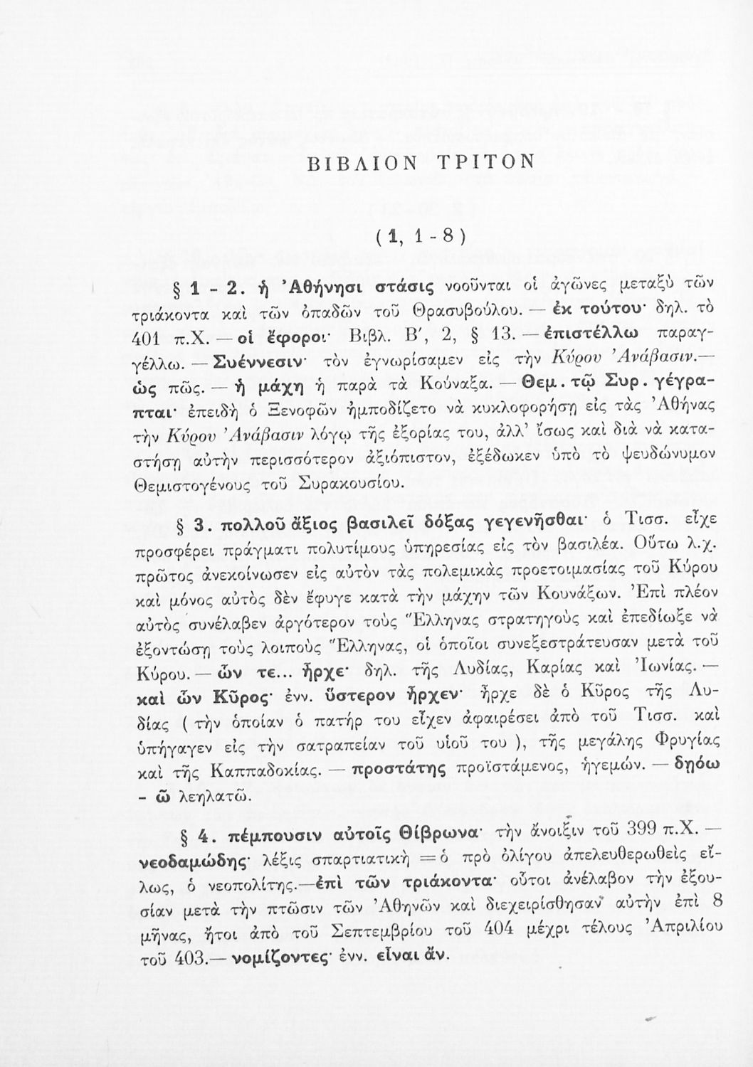 Σχολικό εγχειρίδιο Αρχαίων Ελληνικών του Γυμνασίου. Το βιβλίο αναφέρεται στην ιστορική συγγραφή του Ξενοφώντα για την εκστρατεία του Κύρου κατά του Αρταξέρξη και την κάθοδο των Μυρίων. Στο δεύτερο μέρος το βιβλίο περιέχει τα “Ελληνικά” του Ξενοφώντα που αφορούν την ιστορία των τελευταίων επτά ετών του Πελοποννησιακού πολέμου και τα συμβάντα από το τέλος του Πελοποννησιακού πολέμου μέχρι τη μάχη της Μαντινείας.