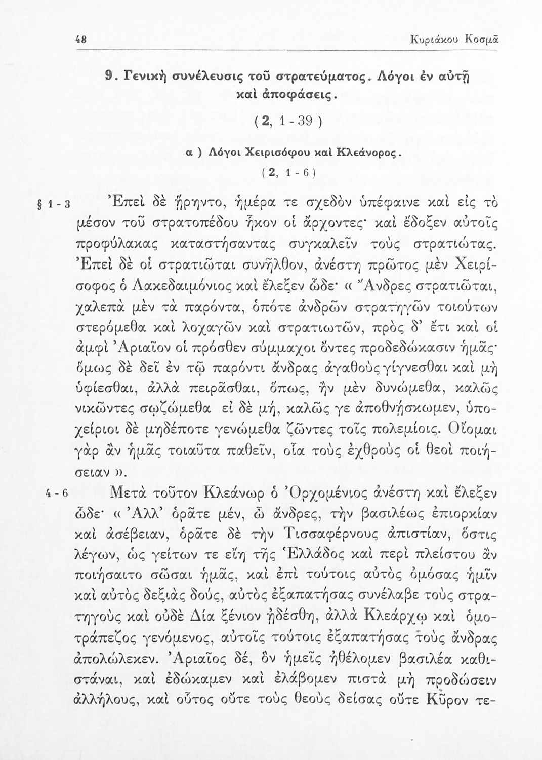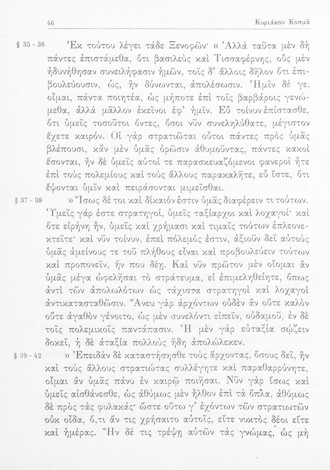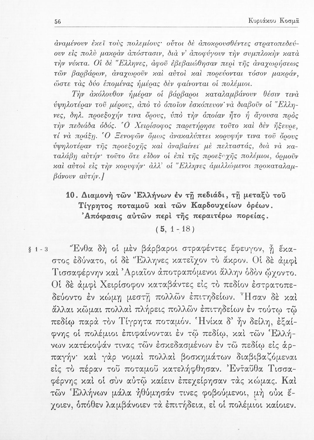 Ξενοφών, Κυριάκος Κοσμάς (σχόλια)