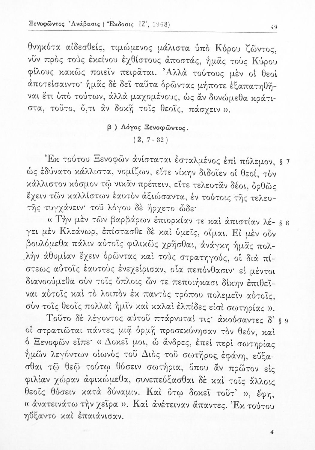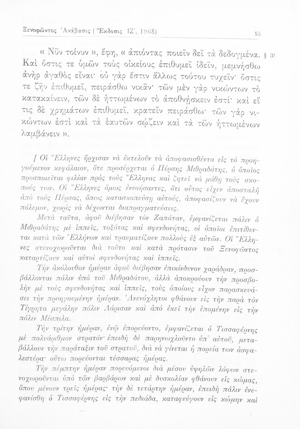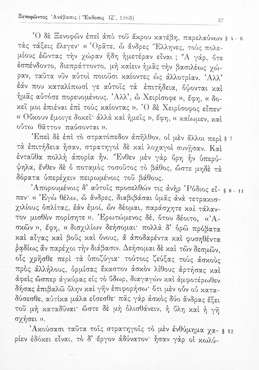 Ξενοφών, Νικόλαος Ι. Ζαφειρίου (σχόλια)