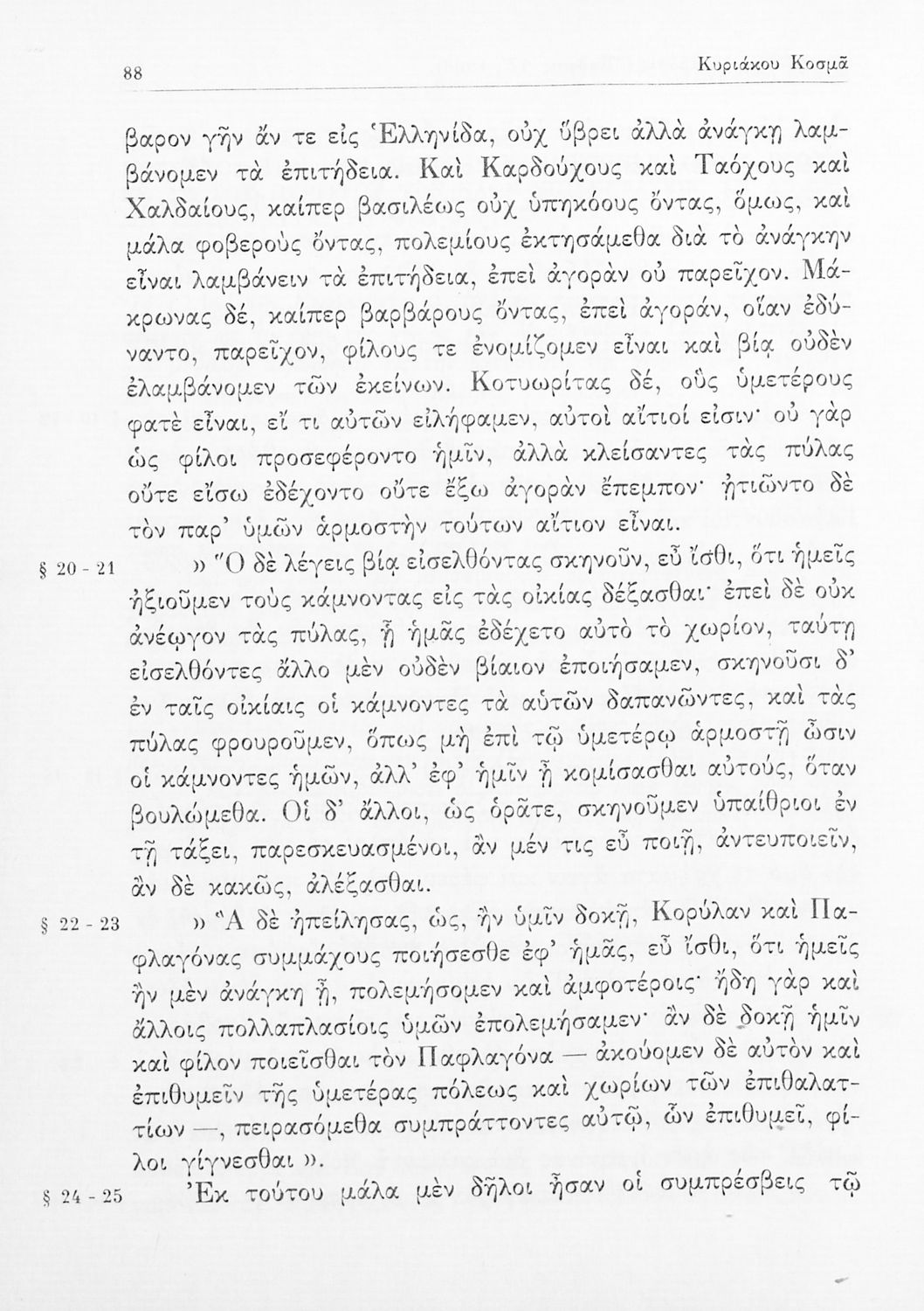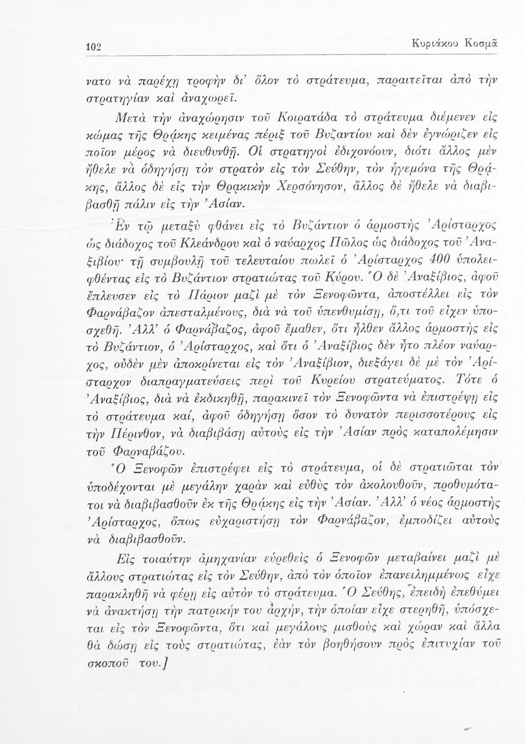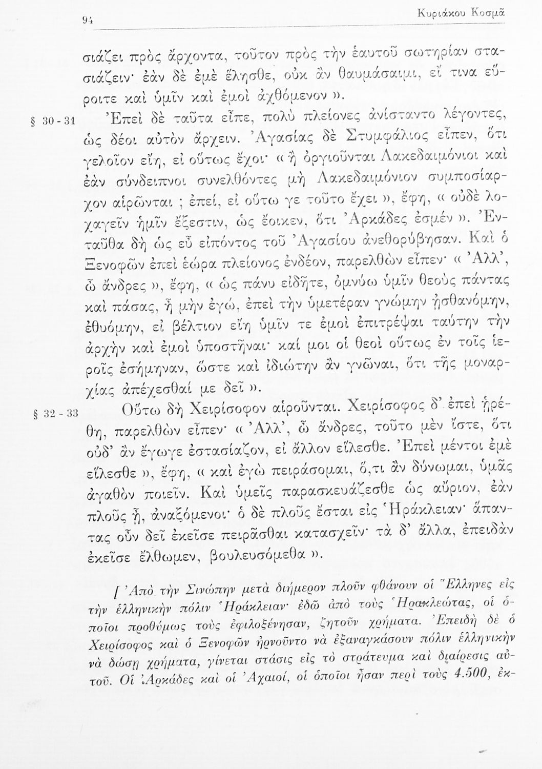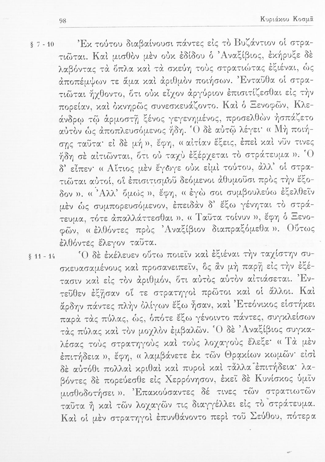 Ξενοφών, Κυριάκος Κοσμάς (σχόλια)