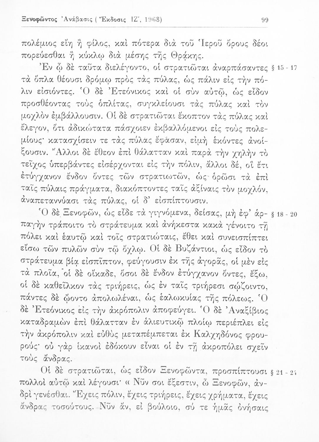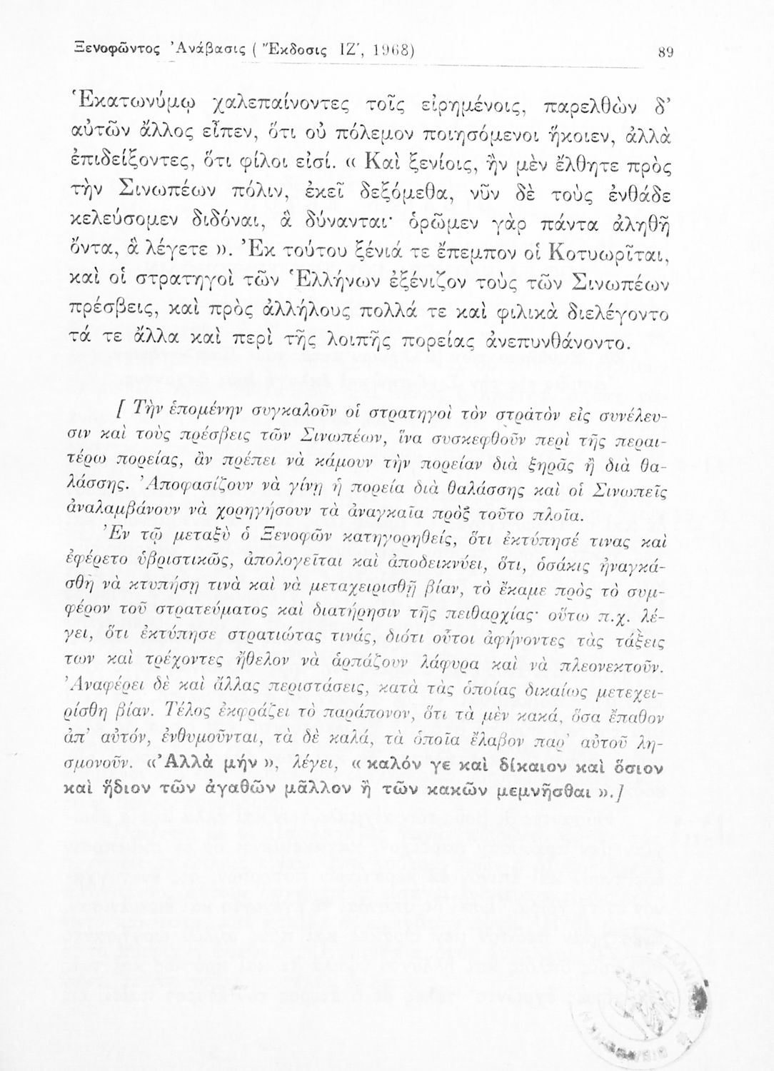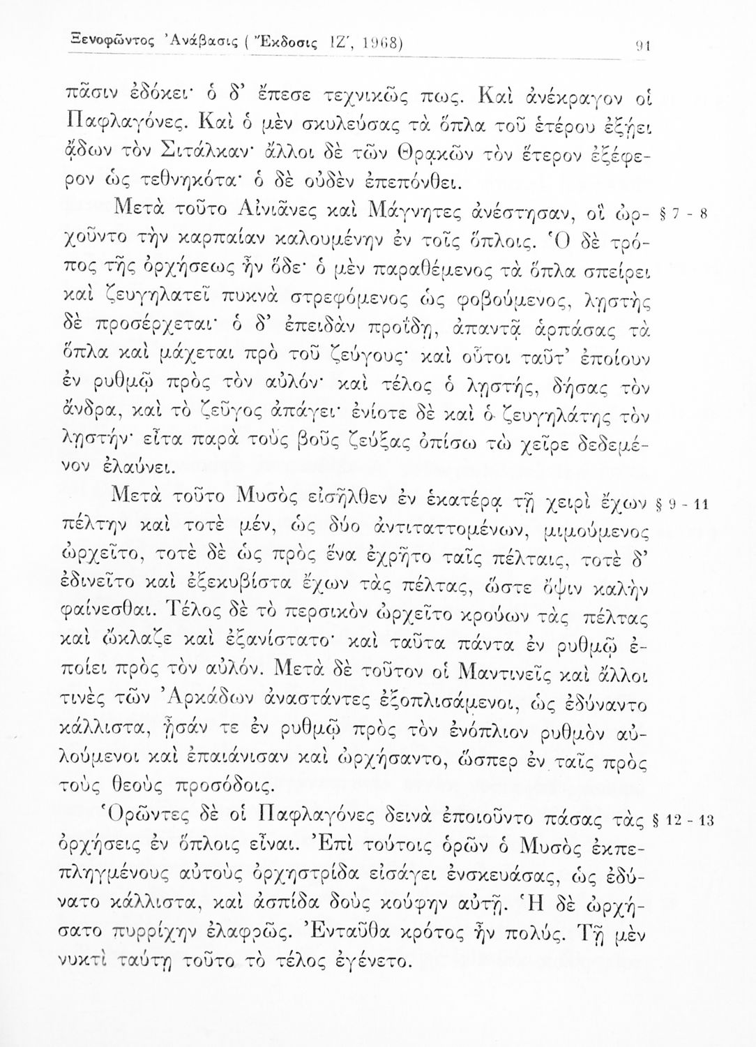 Ξενοφών, Νικόλαος Ι. Ζαφειρίου (σχόλια)