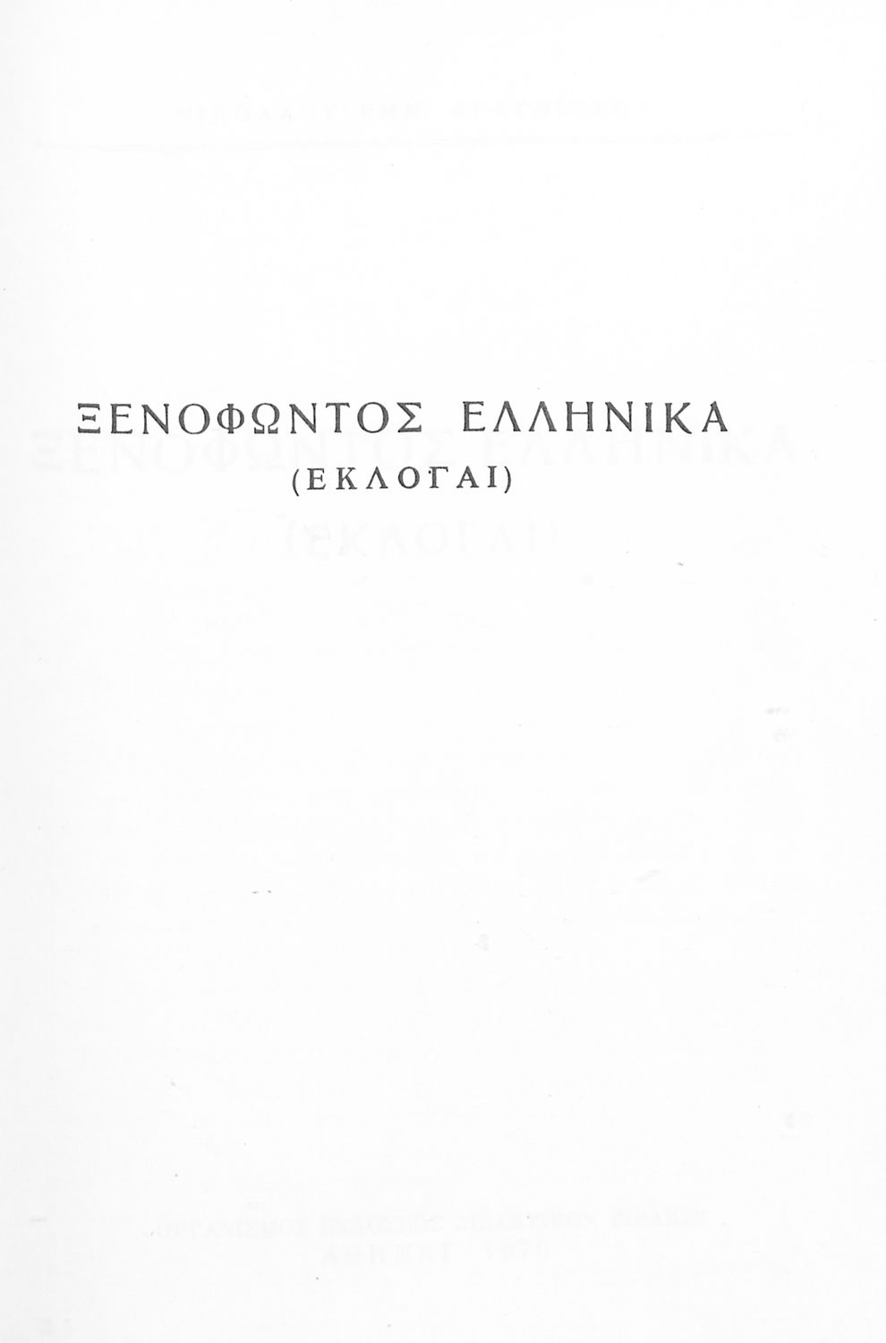 Σχολικό Εγχειρίδιο Αρχαίων Ελληνικών της Β' Γυμνασίου. Το βιβλίο αναφέρεται στην ιστορική συγγραφή του Ξενοφώντα για την εκστρατεία του Κύρου κατά του Αρταξέρξη και κυρίως την κάθοδο ( επιστροφή) των Μυρίων. Στο δεύτερο μέρος το βιβλίο περιέχει τα “Ελληνικά” του Ξενοφώντα που αφορούν την ιστορία των τελευταίων επτά ετών του Πελοποννησιακού πολέμου και τα συμβάντα από το τέλος του Πελοποννησιακού πολέμου μέχρι τη μάχη της Μαντινείας.